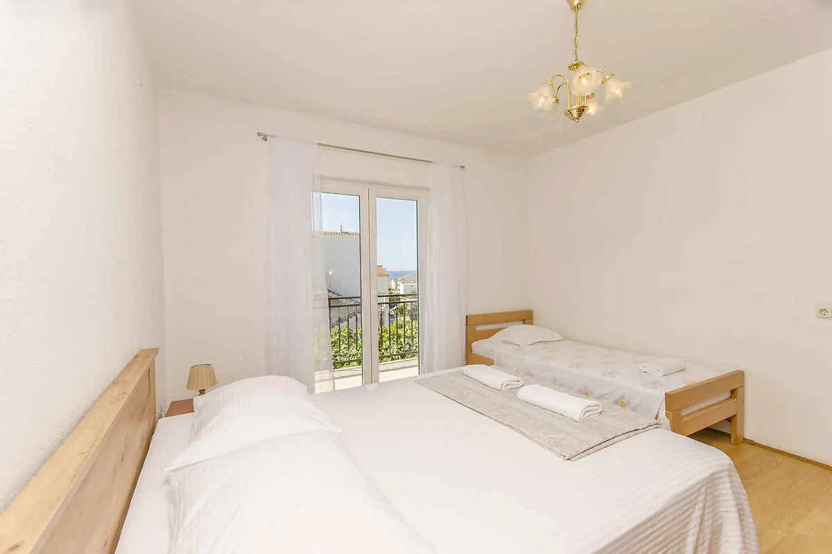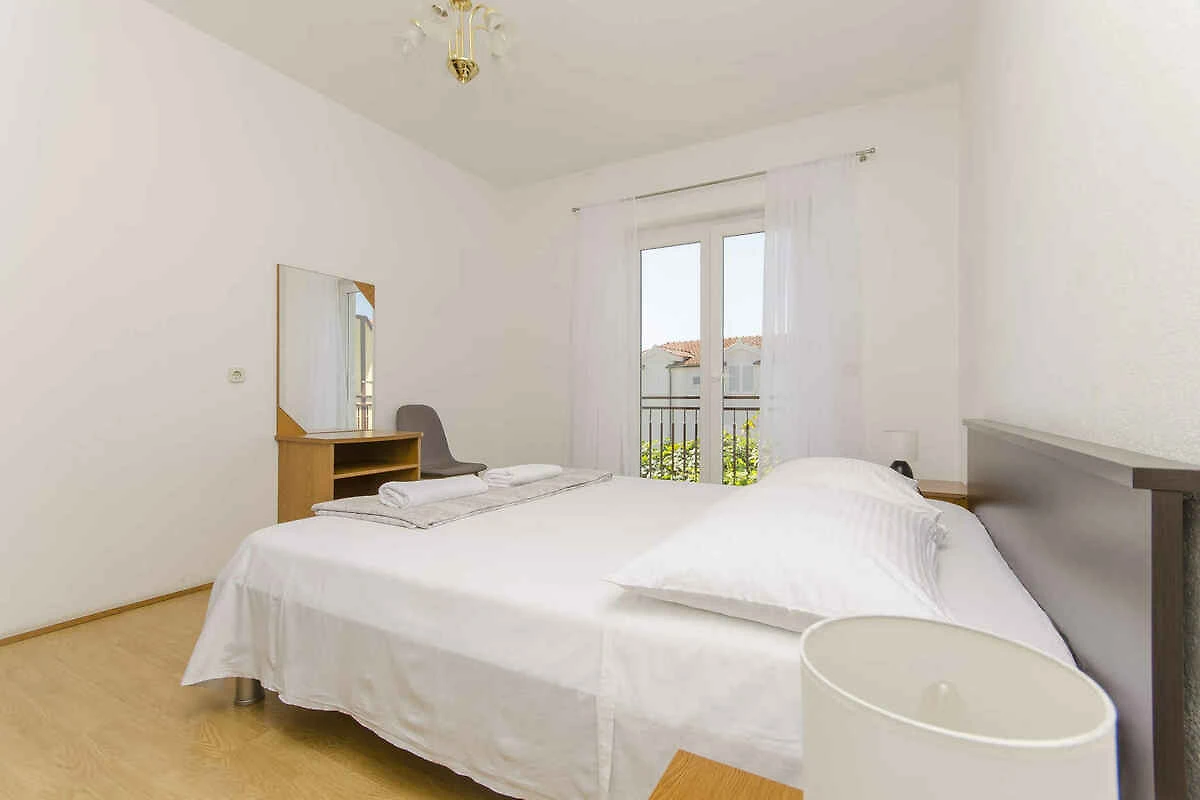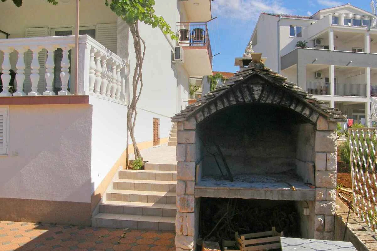 Primošten. Die Ferienwohnung befindet sich auf einem geschlossenen Gartengrundstück mit Blumen und Bäumen, von einer Mauer begrenzt. Der Vermieter wohnt ständig im Haus. Die Zufahrt erfolgt über eine Nebenstrasse (asphaltiert). Parkplatz auf dem Grundstück.