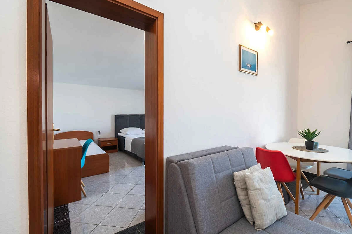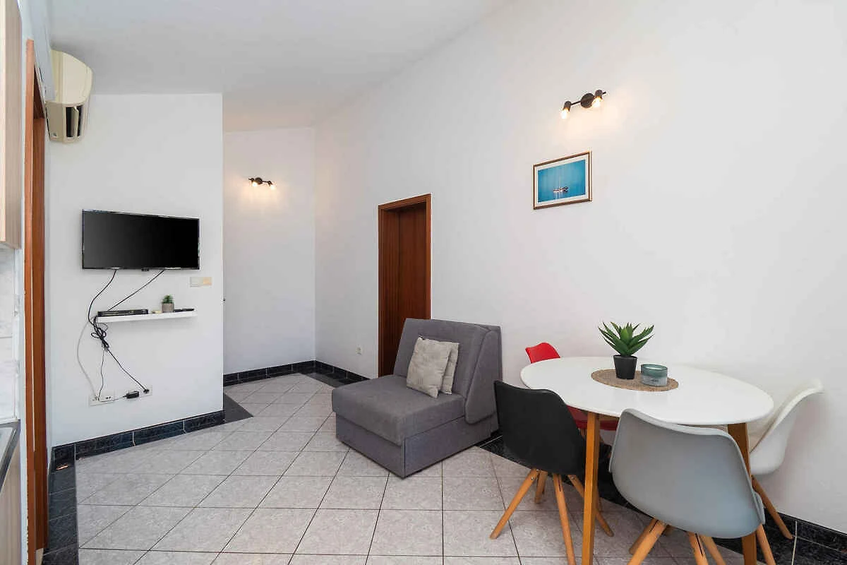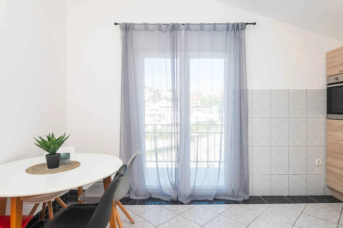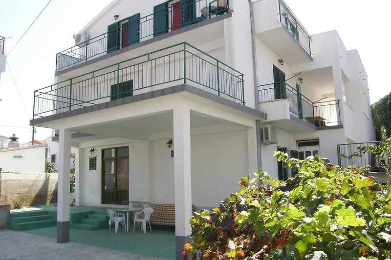 Primošten. Die Ferienwohnung befindet sich auf einem geschlossenen Gartengrundstück mit Blumen und Bäumen, von einem Zaun begrenzt. Der Vermieter wohnt ständig im Haus. Die Zufahrt erfolgt über eine Nebenstrasse (asphaltiert). Parkplatz auf dem Grundstück.