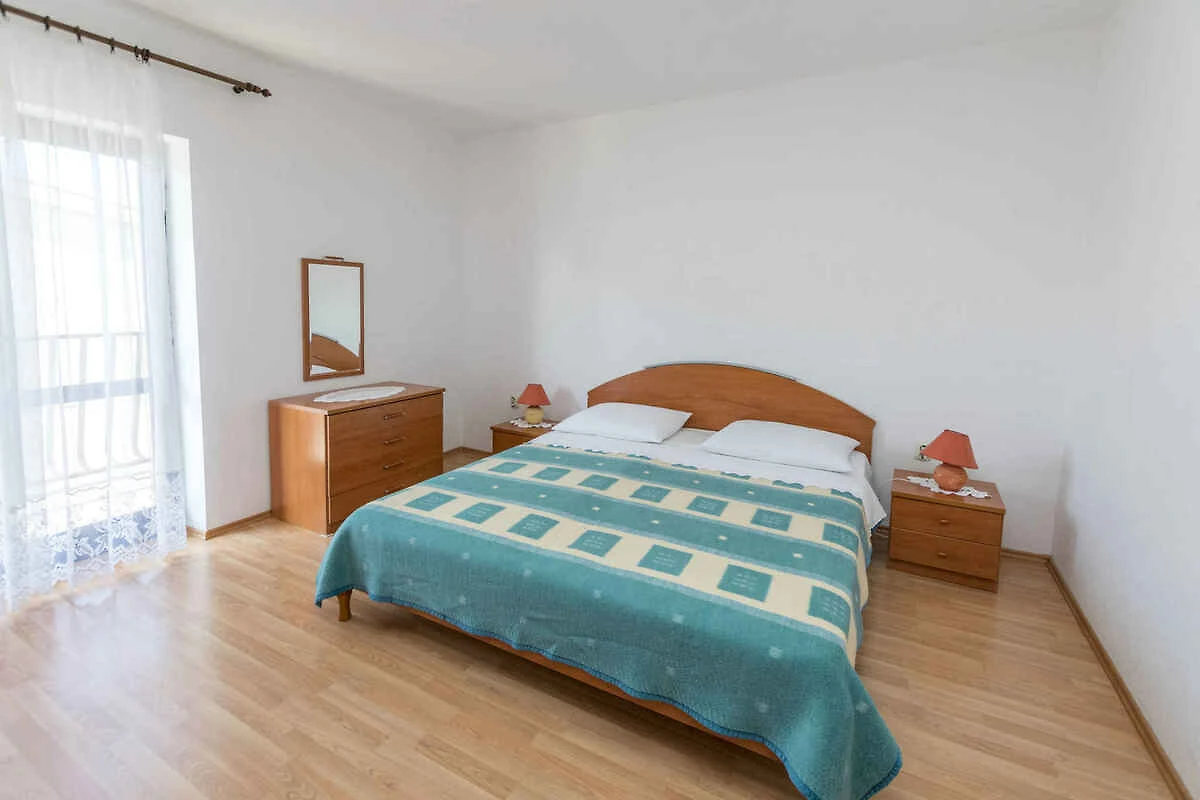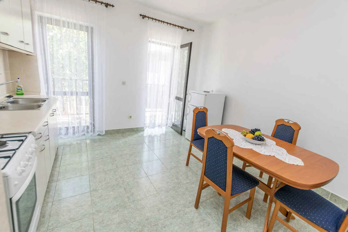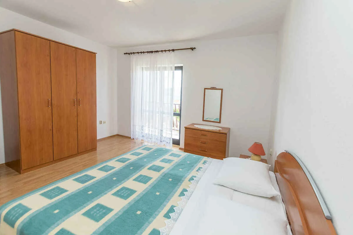Primošten. Die Ferienwohnung befindet sich auf einem geschlossenen Gartengrundstück, von einem Zaun begrenzt. Der Vermieter wohnt nur zeitweise im Haus, nutzt jedoch einen separaten Eingang. Die Zufahrt erfolgt über eine Nebenstrasse (asphaltiert). Parkplatz auf der Strasse vor dem Haus.