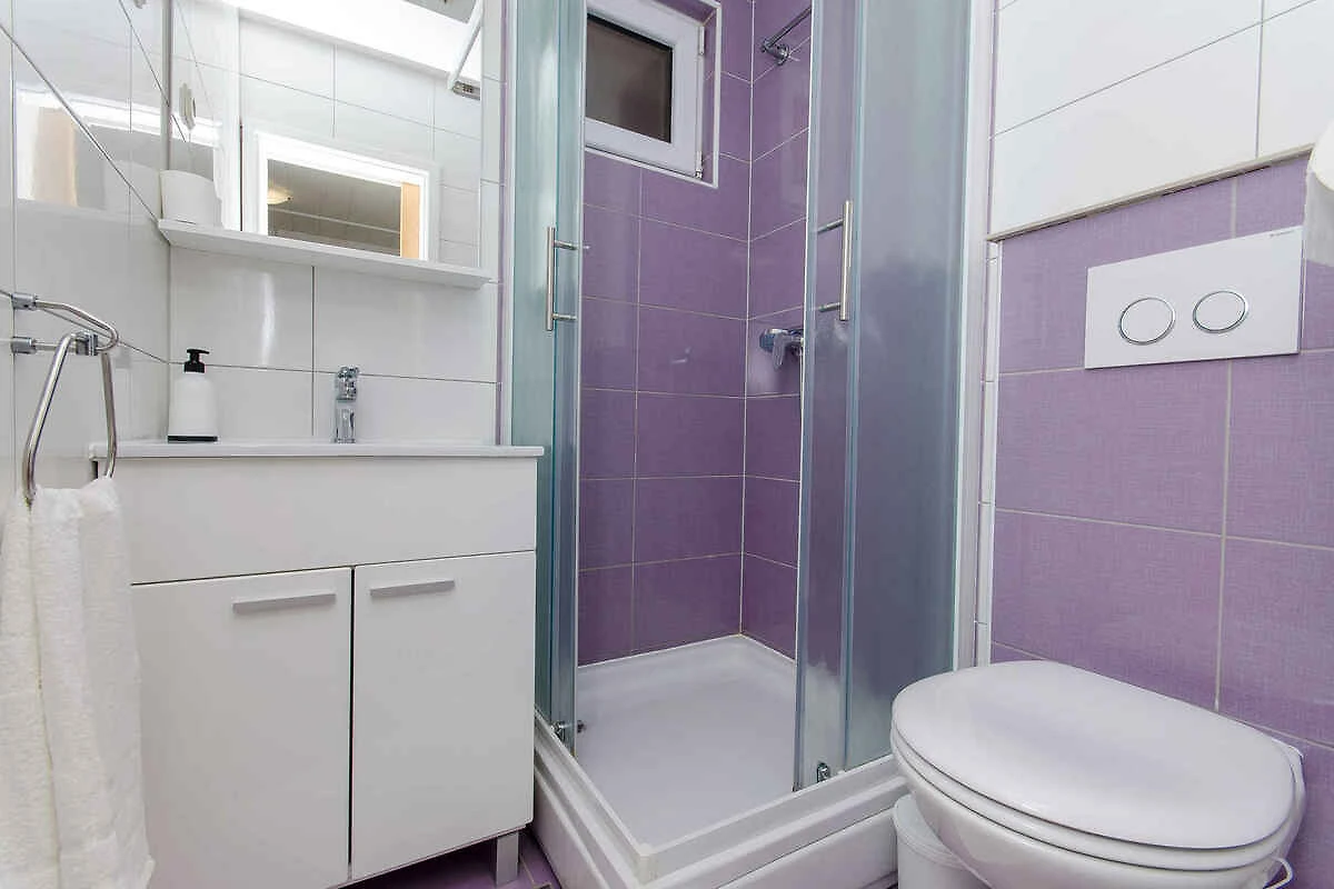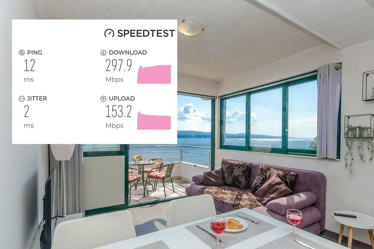 Einkauf 800 m, Restaurant 500 m, Ortszentrum 500 m. Die nächste Haltestelle für den öffentlichen Nahverkehr ist 700 m entfernt. Arzt, Apotheke, Bank jeweils 12 km in Omiš. Flughafen in Splitska 60 km. Hauptstrasse 50 m. Im Sommer: Adriatisches Meer 50 m in Mimice (Strand 50 m in Mimice mit Steinen).