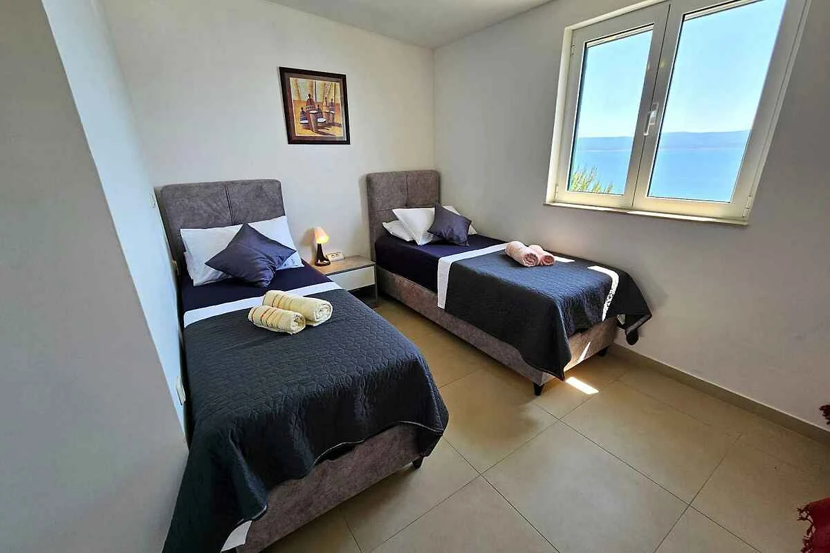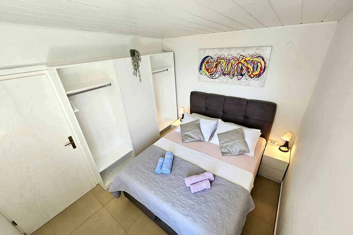 Die Ferienwohnung befindet sich in einem Apartementhaus und ist modern eingerichtet. Das Grundstück liegt in einer FerienHaus-Siedlung, am Ortsrand. Auch wegen des Ausblicks vom Grundstück auf das Meer und der ruhigen und sonnigen Hanglage am Wasser ist das Domizil beliebt. Zur gemeinsamen Nutzung stehen zur Verfügung: Gartendusche und Terrasse.