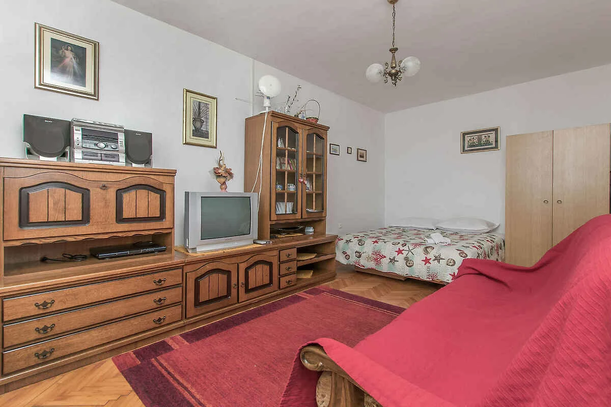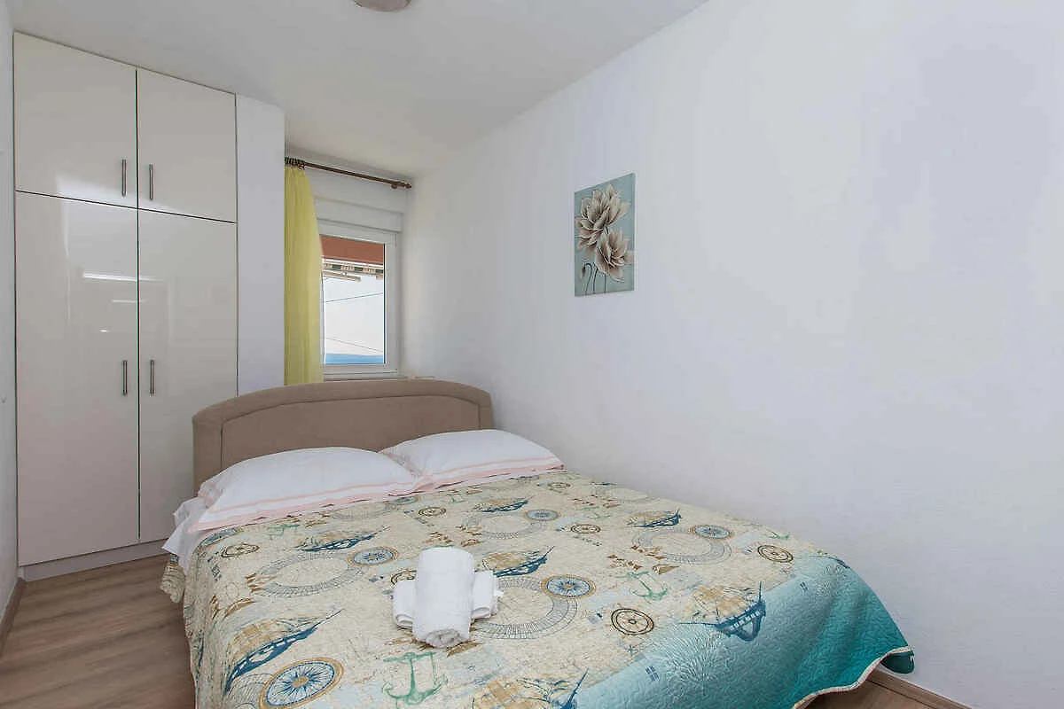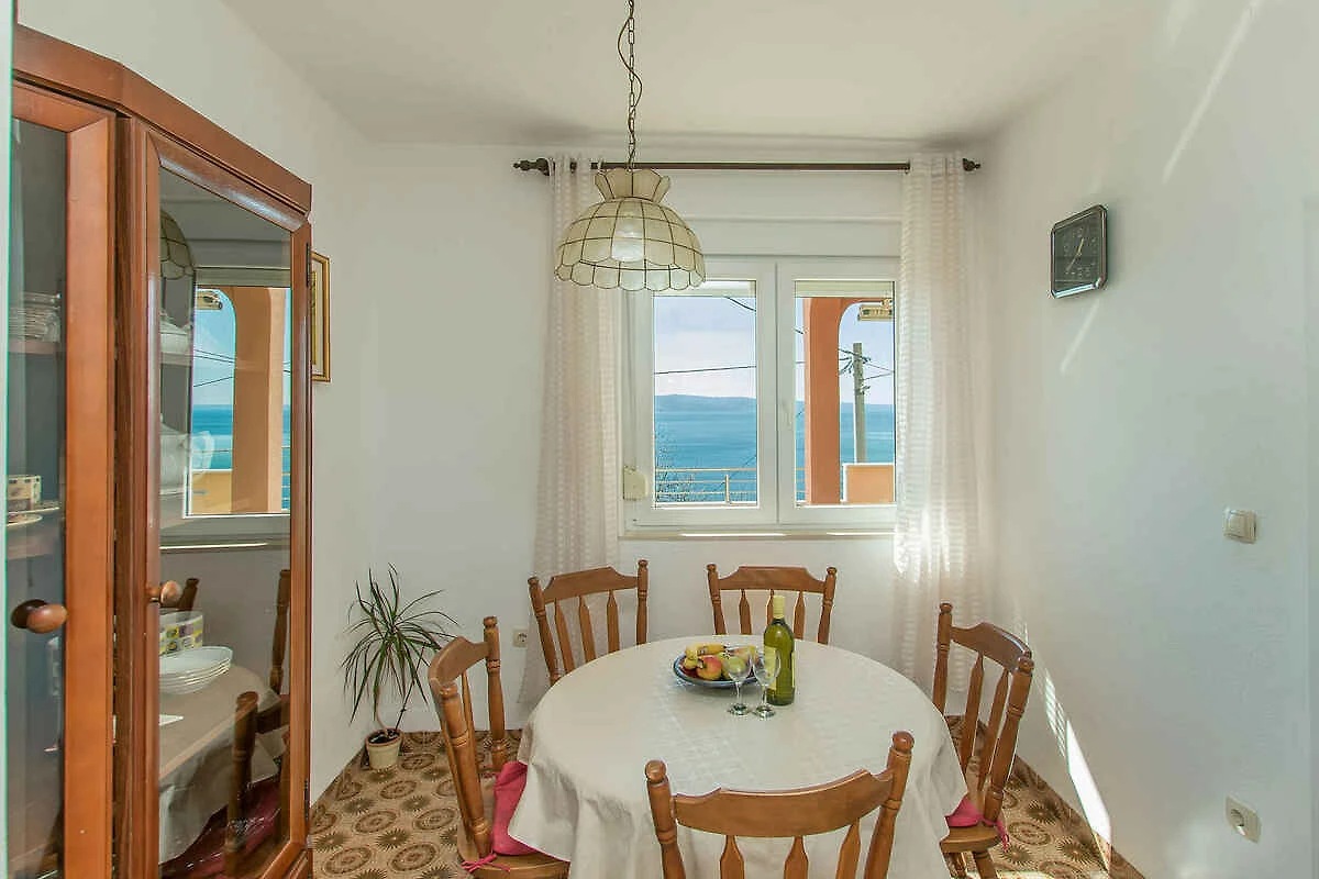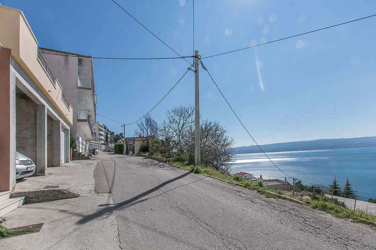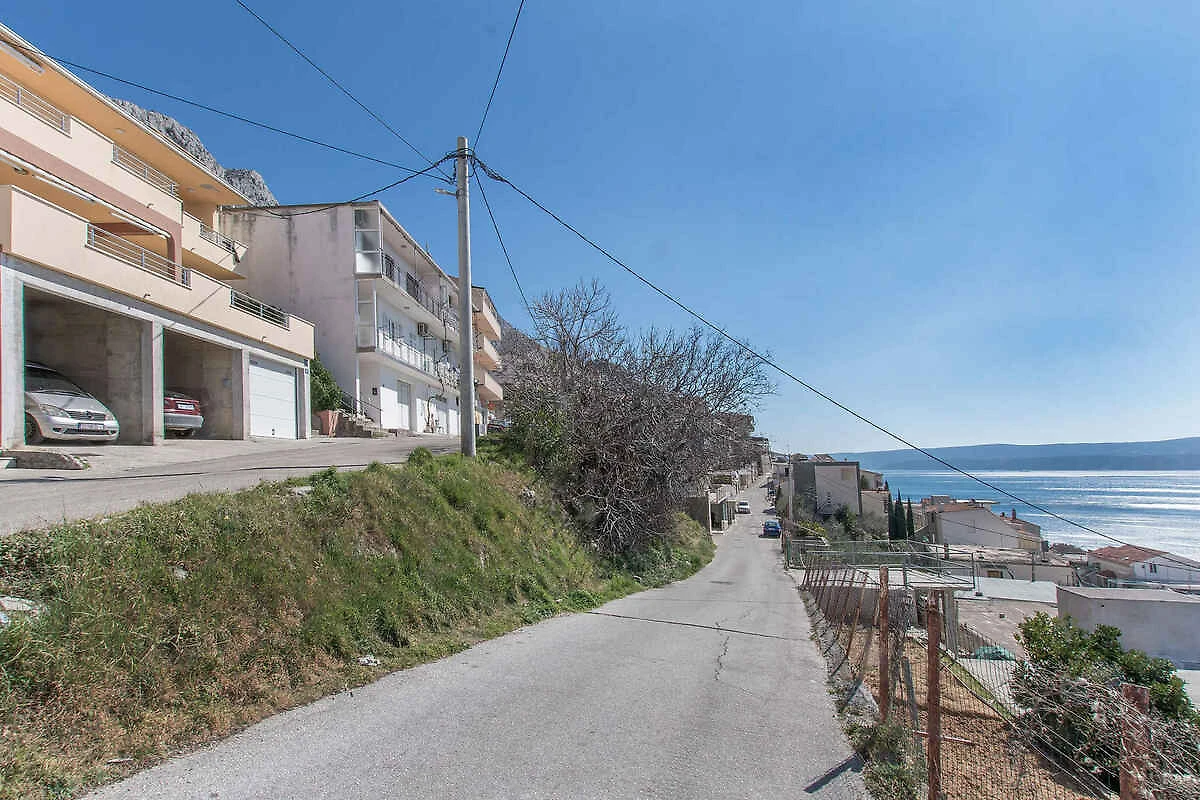 Omiš. Die Ferienwohnung befindet sich auf einem offenen Grundstück. Die Zufahrt erfolgt über eine Nebenstrasse (asphaltiert). Parkplatz (für 1 Pkw) in Garage und auf dem Grundstück.