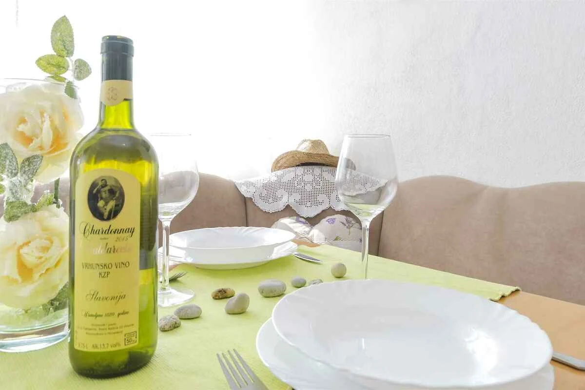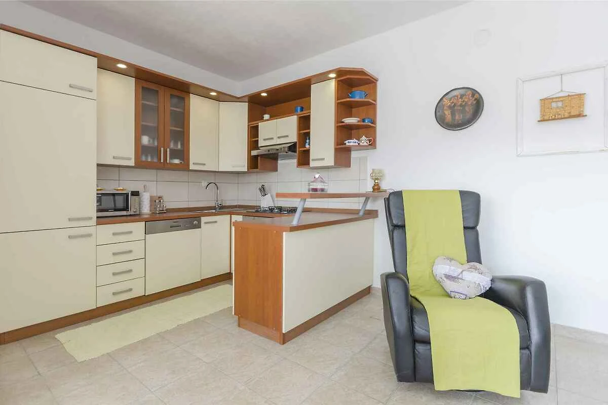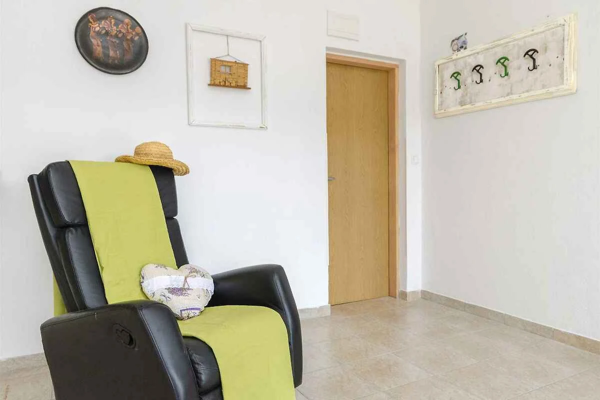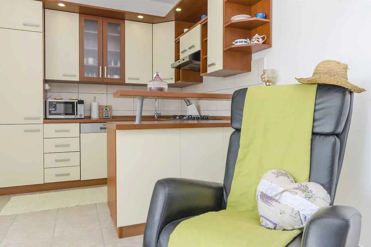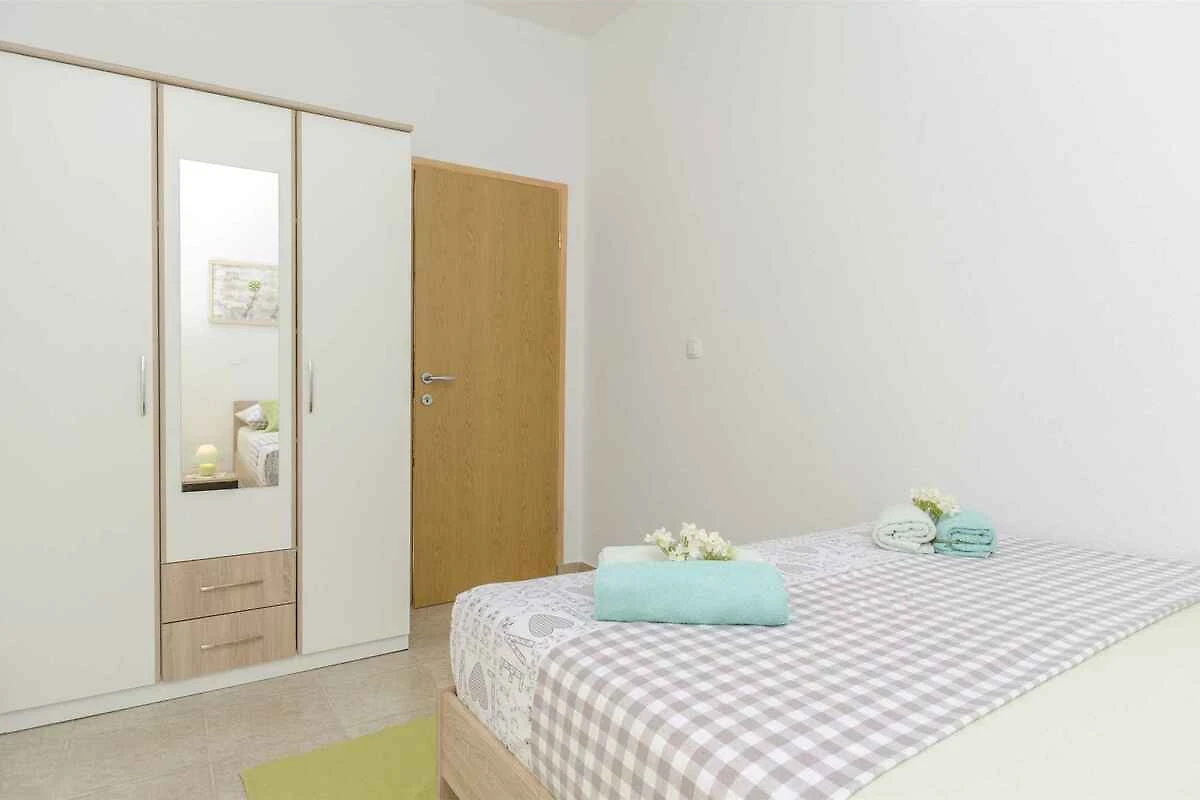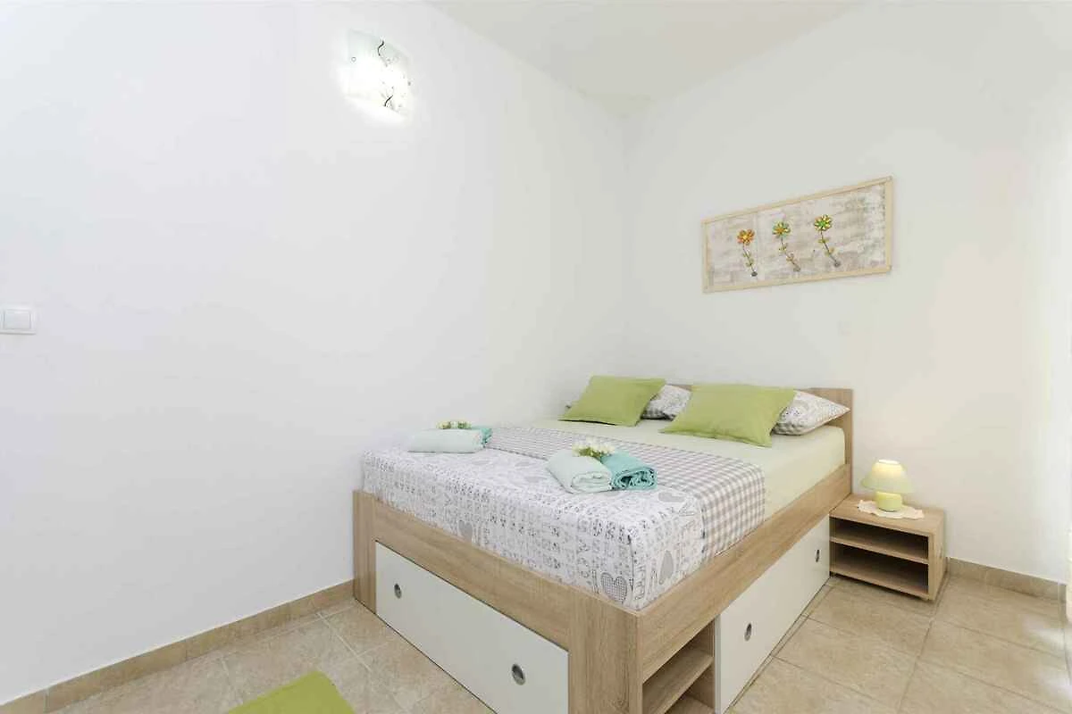 Tribunj. Die Villa befindet sich auf einem 350 qm grossen, geschlossenen Gartengrundstück mit Blumen und Bäumen, von einem Zaun begrenzt. Der Vermieter wohnt ständig im Haus, nutzt jedoch einen separaten Eingang. Parkplatz auf dem Grundstück.