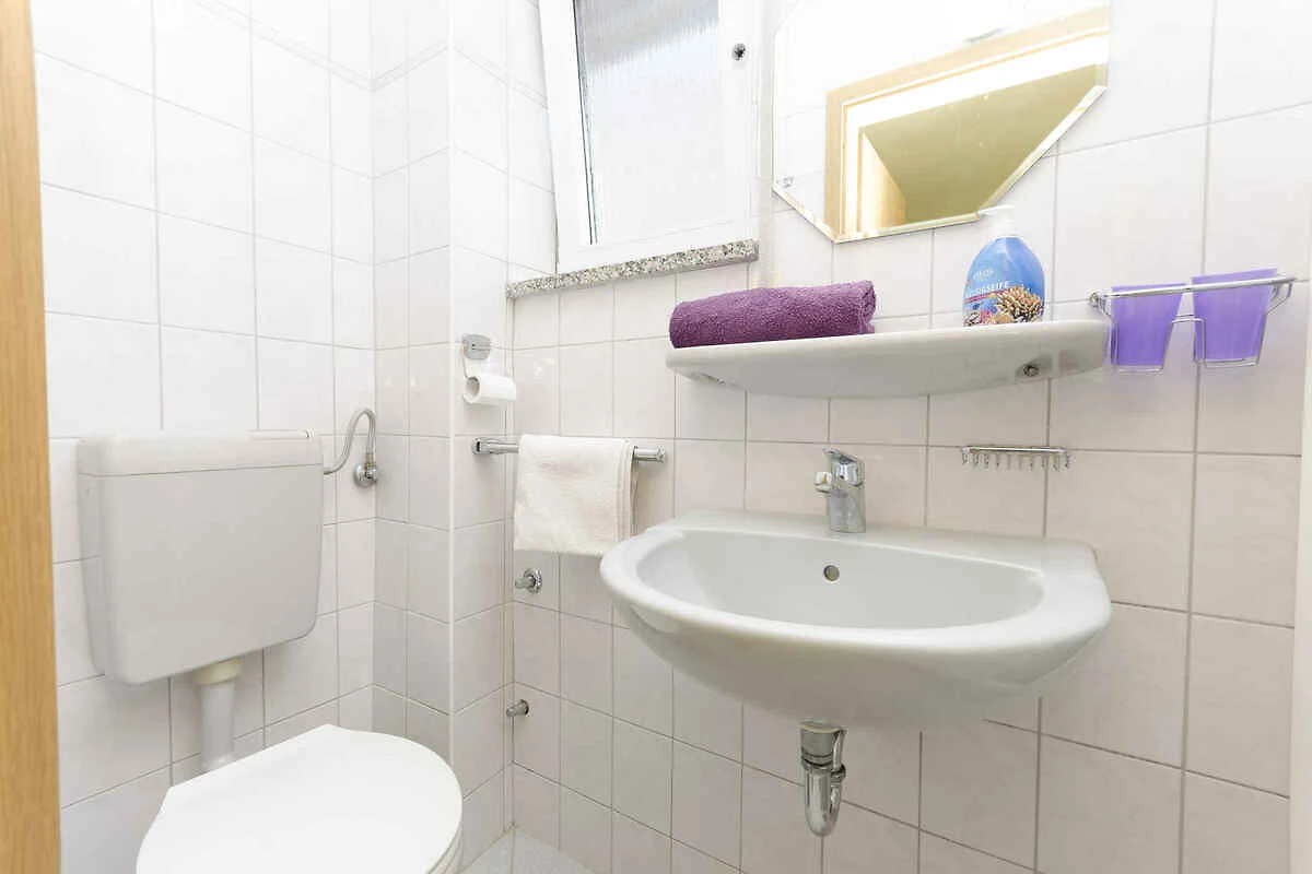 Die Ferienwohnung befindet sich in einem Apartementhaus und ist modern und zweckmässig eingerichtet. Das Grundstück liegt am Ende einer Sackgasse, am Ortsrand. Auch wegen des Ausblicks vom Grundstück auf das Meer und der sonnigen Lage am Wasser ist das Domizil beliebt. Zur gemeinsamen Nutzung stehen zur Verfügung: