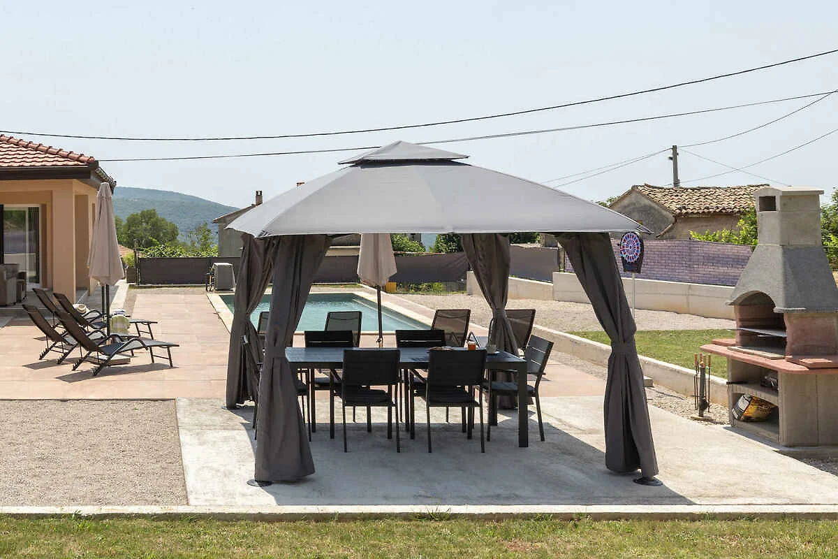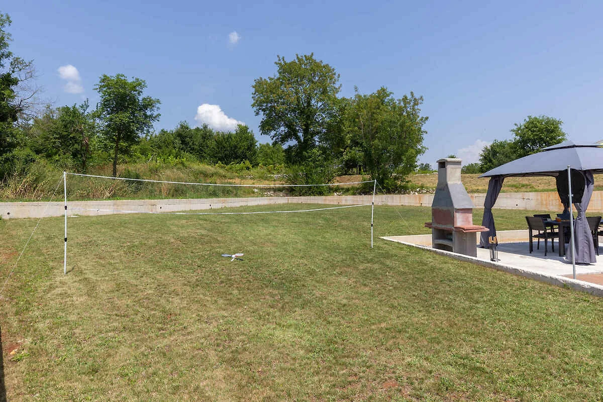 Labin. Die Villa befindet sich auf einem 900 qm grossen, geschlossenen Gartengrundstück mit Wiese, Blumen und Bäumen, von einem Zaun begrenzt. Der Vermieter wohnt nicht im Haus oder auf dem Grundstück. Die Zufahrt erfolgt über eine Nebenstrasse (asphaltiert). Parkplatz (für 1 Pkw) auf dem Grundstück.