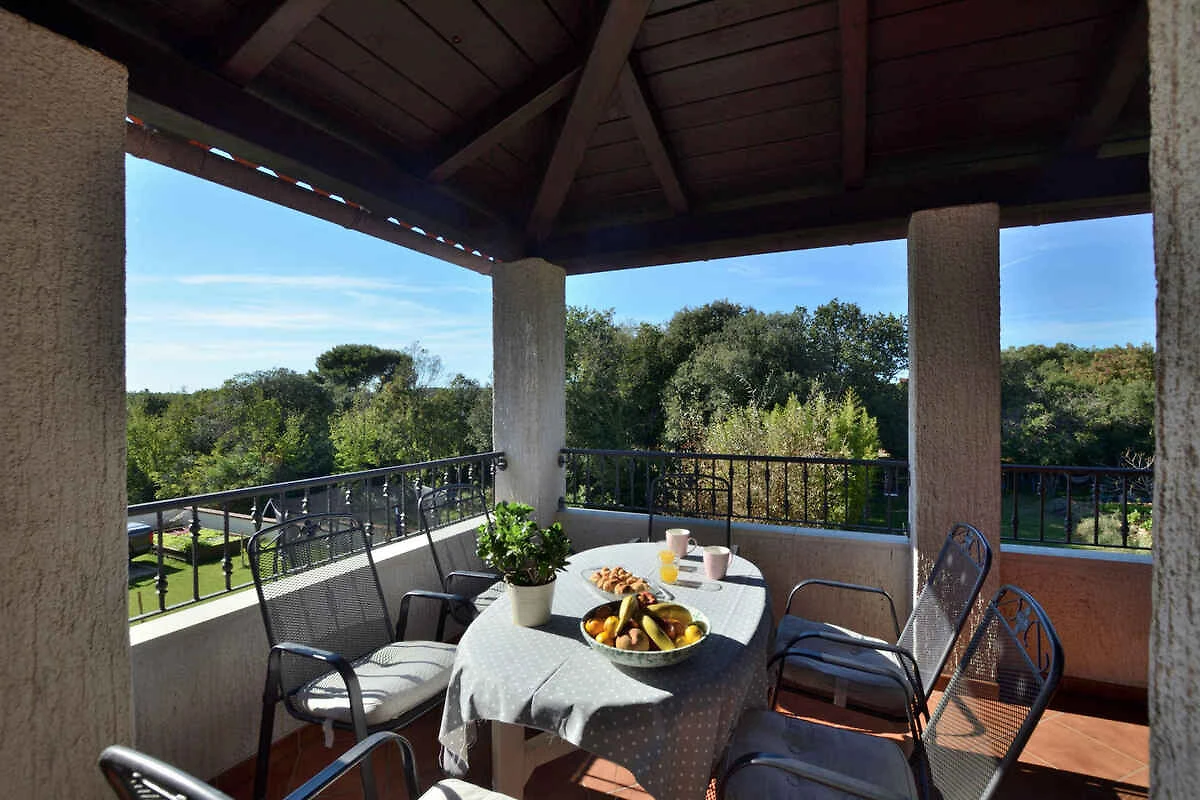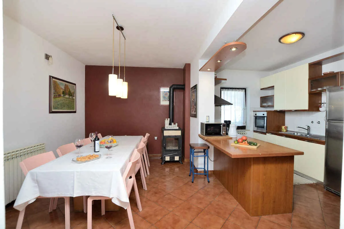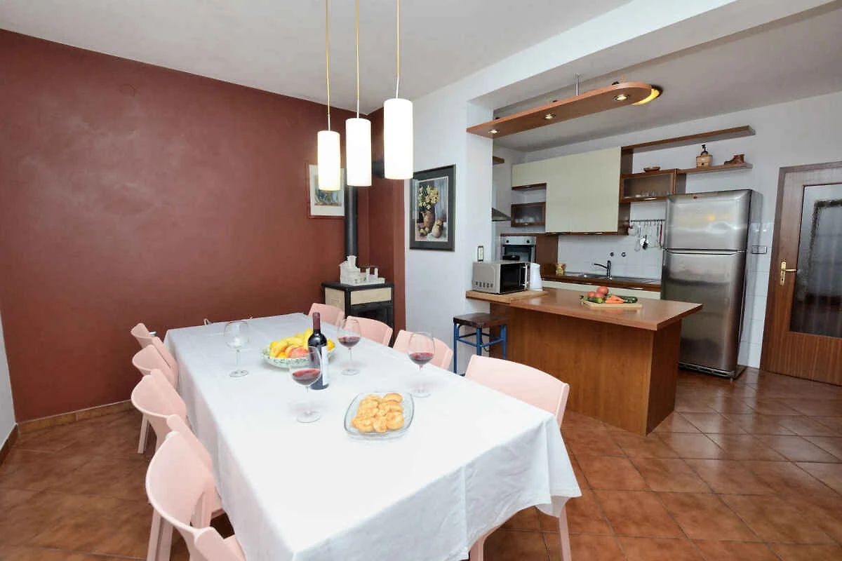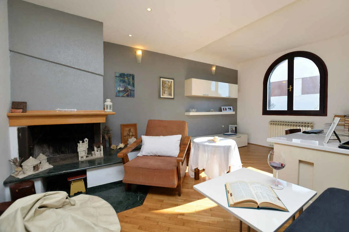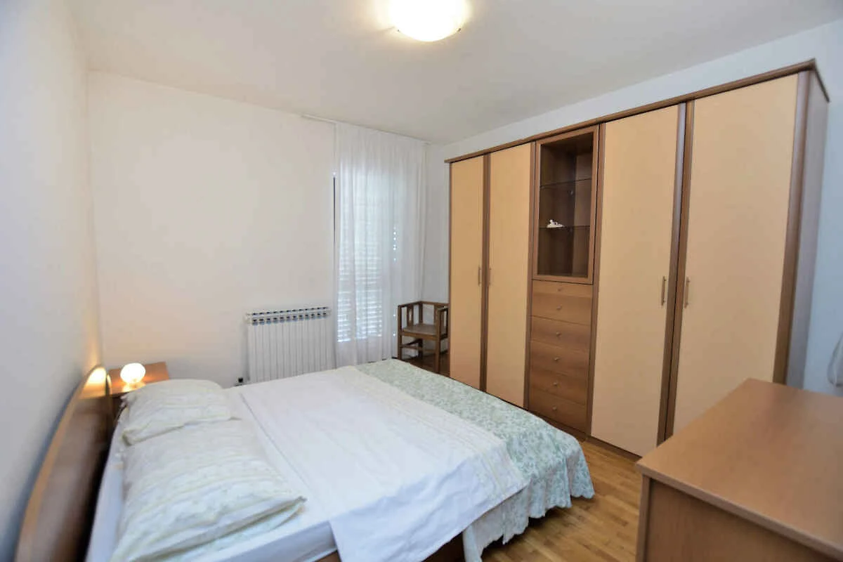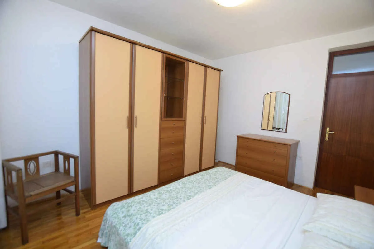 Pula. Die Ferienwohnung befindet sich auf einem Gartengrundstück. Rauchen erlaubt. Aussicht auf die Grünfläche, den Hof und eine stille Strasse. Die Zufahrt erfolgt über eine Nebenstrasse. Parkplatz auf der Strasse vor dem Haus.