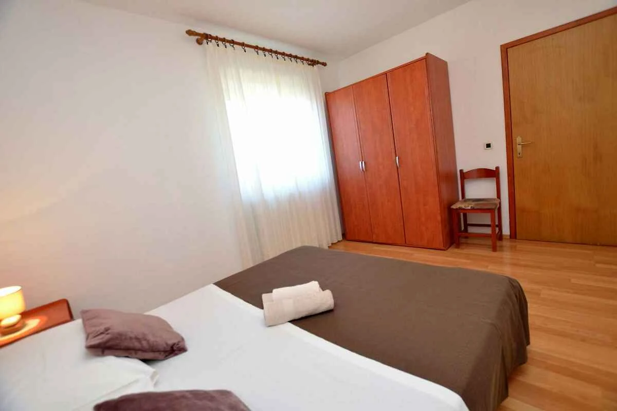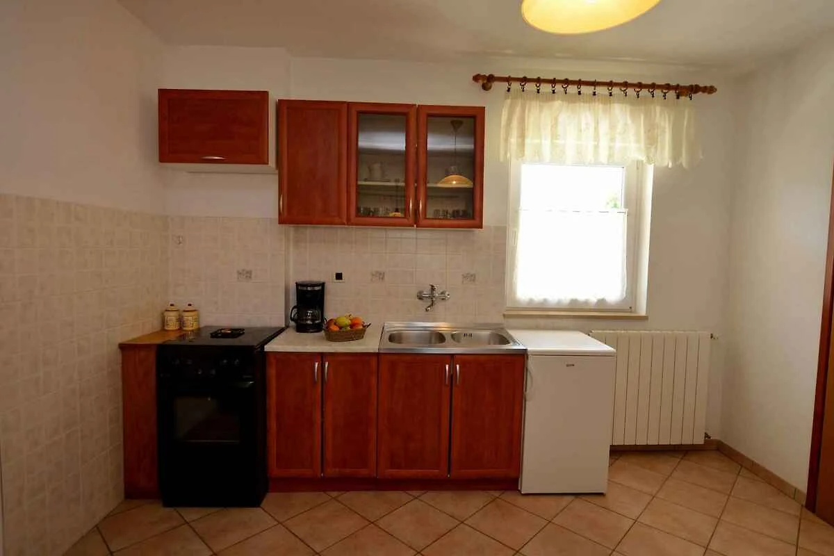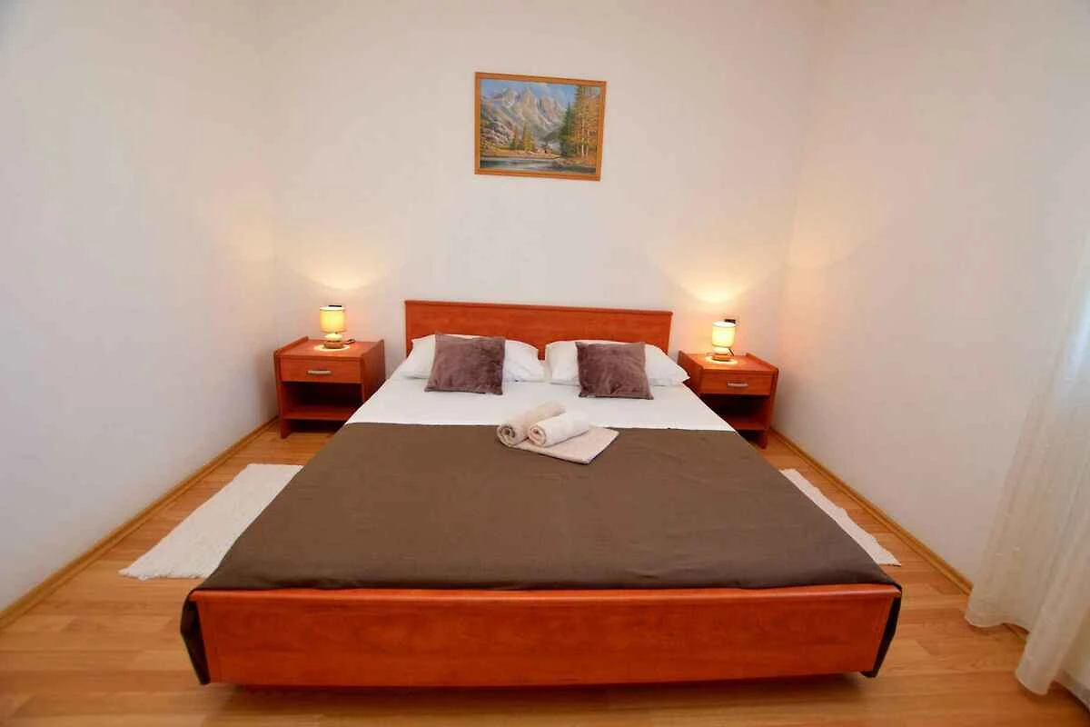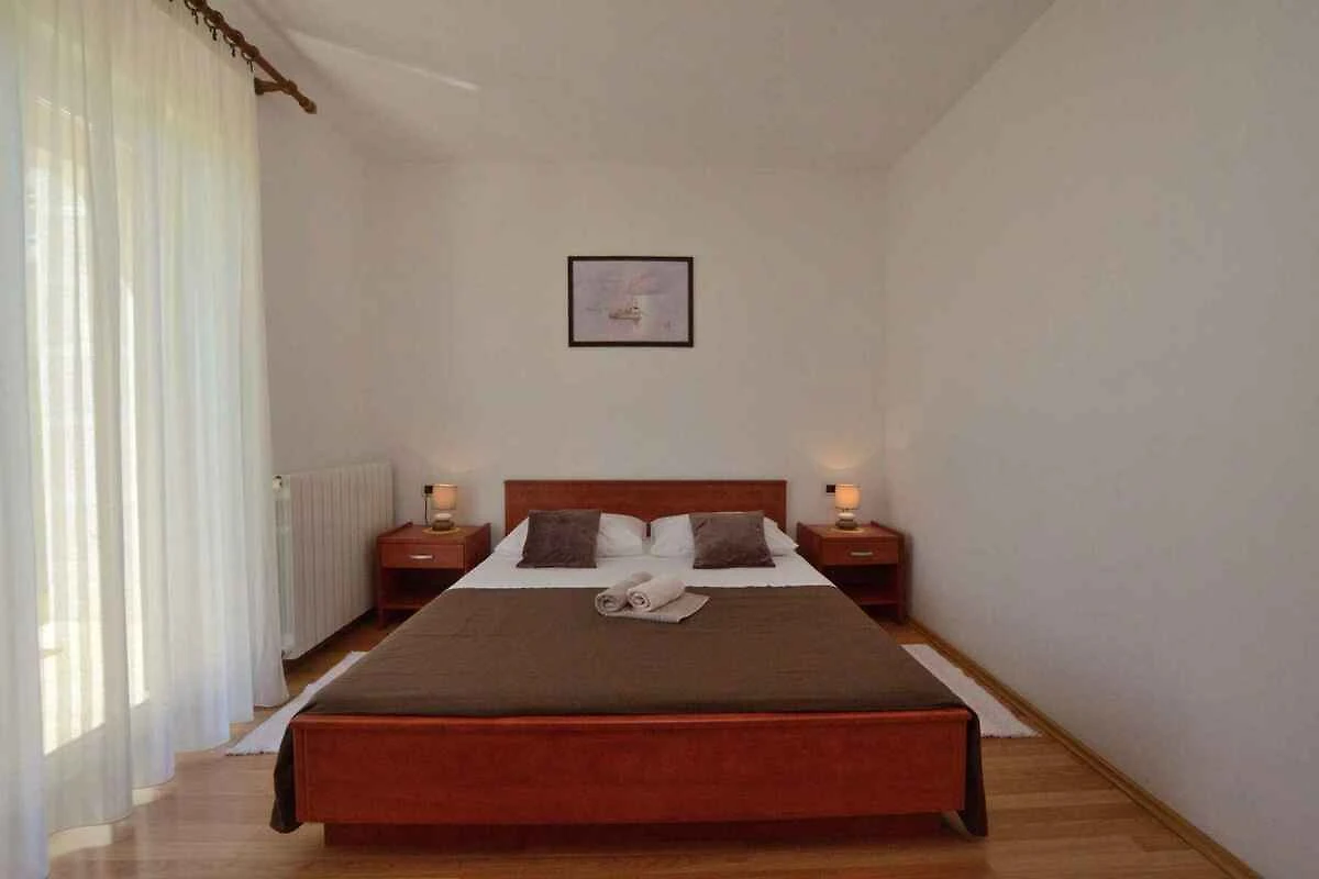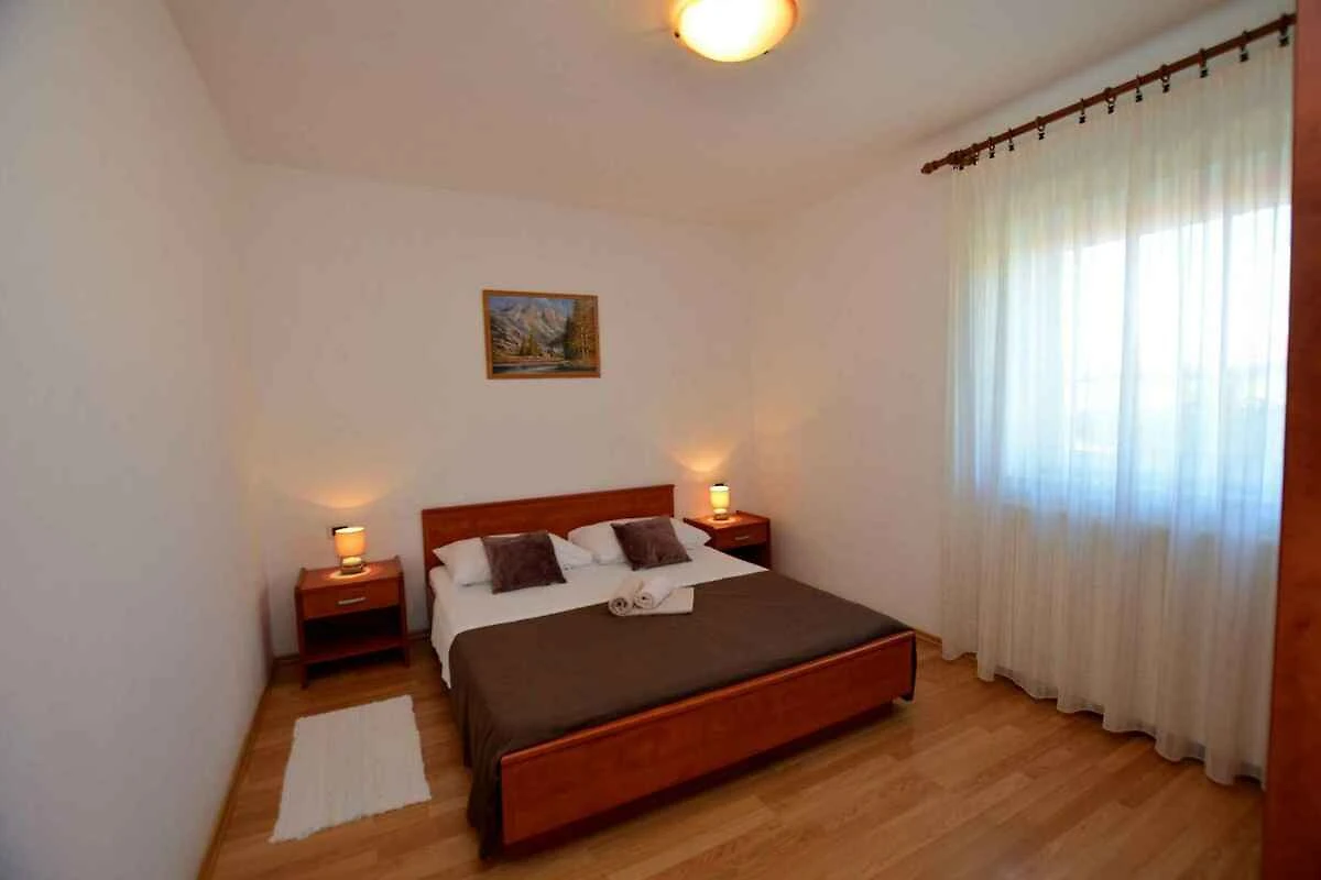Lasici. Die Ferienwohnung befindet sich in einer Ferienanlage, auf einem geschlossenen Gartengrundstück mit Blumen, Sträuchern und Bäumen, von einem Zaun begrenzt. Die Zufahrt erfolgt über eine Nebenstrasse (asphaltiert). Parkplatz auf dem Grundstück.