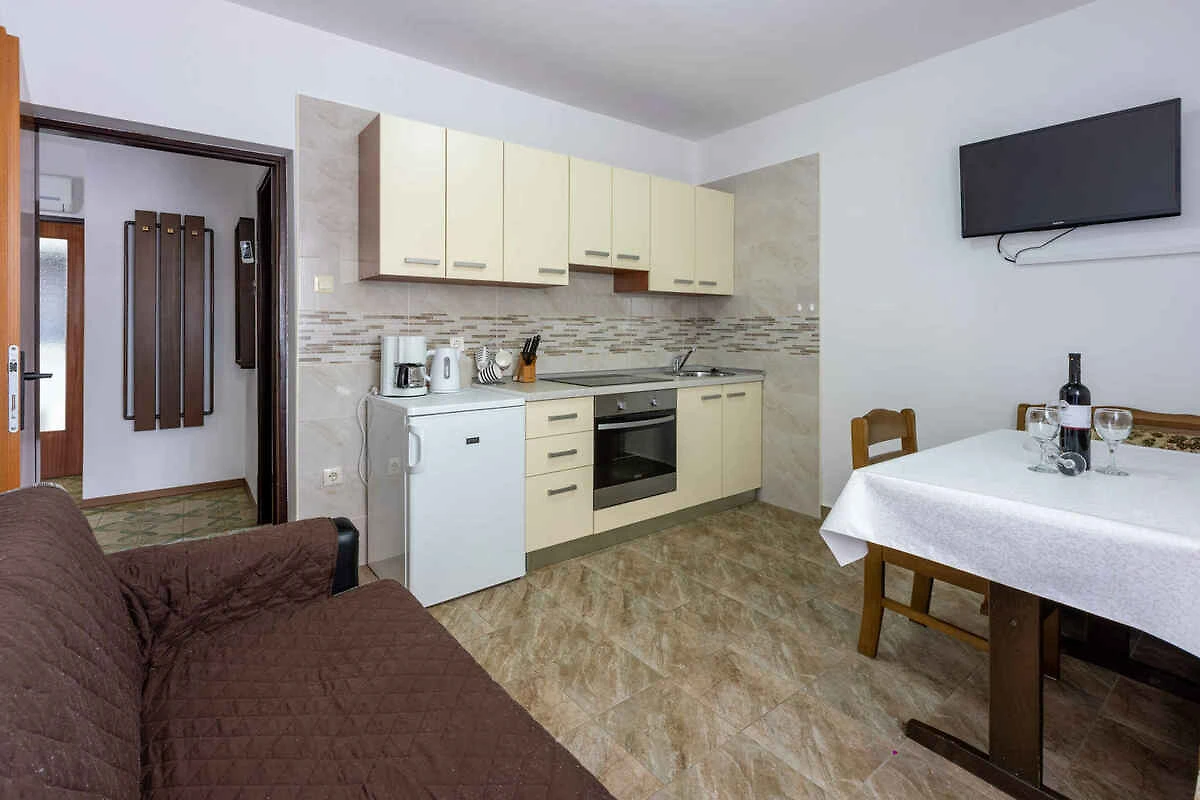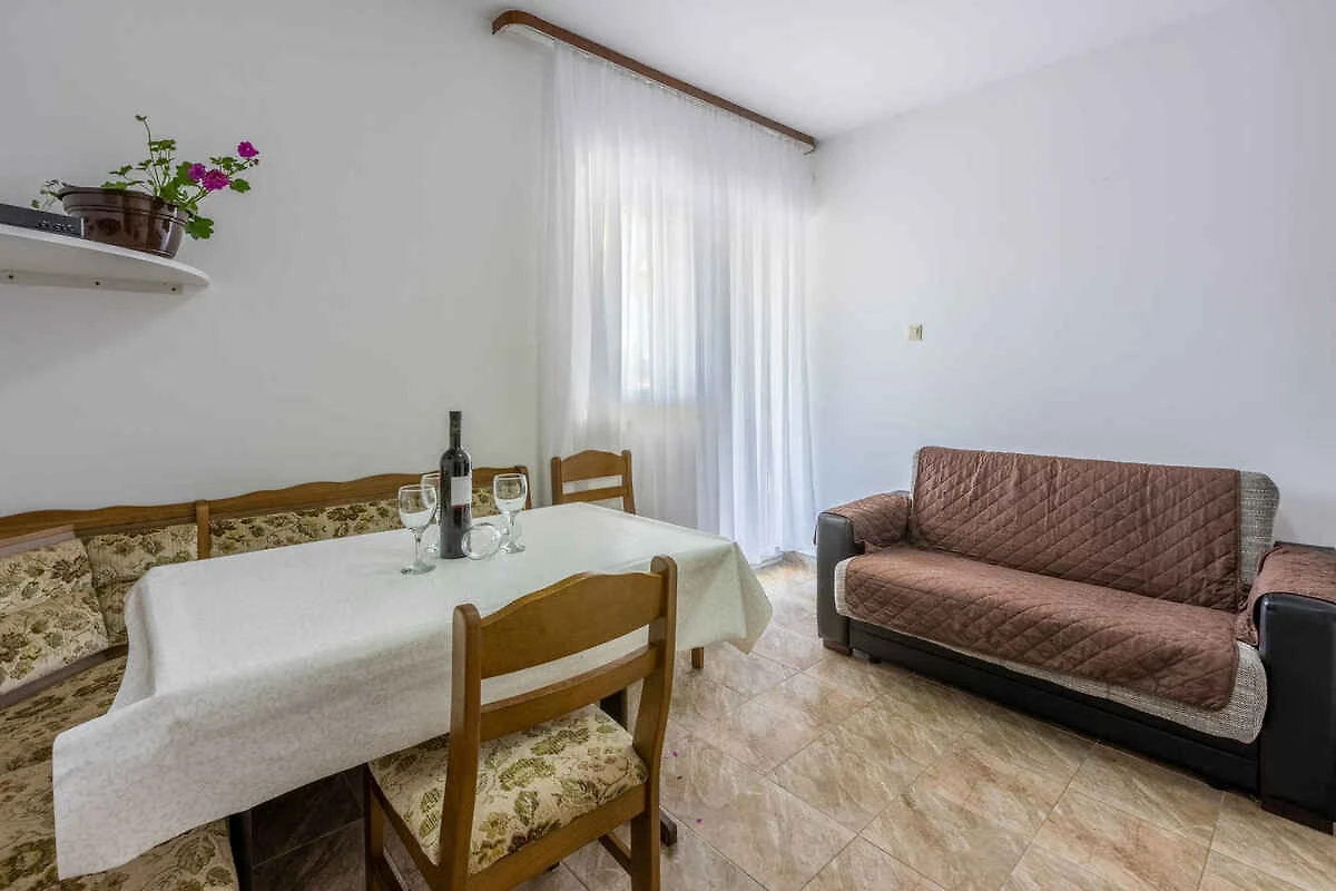 Punat. Der Vermieter wohnt nur zeitweise im Haus, nutzt jedoch einen separaten Eingang. Aussicht: Grünfläche. Parkplatz auf dem Grundstück.