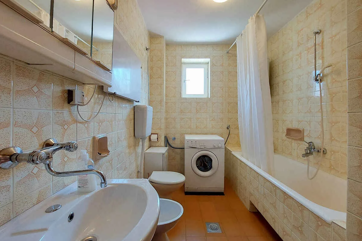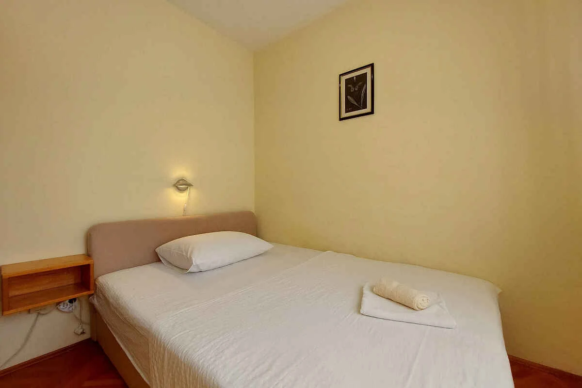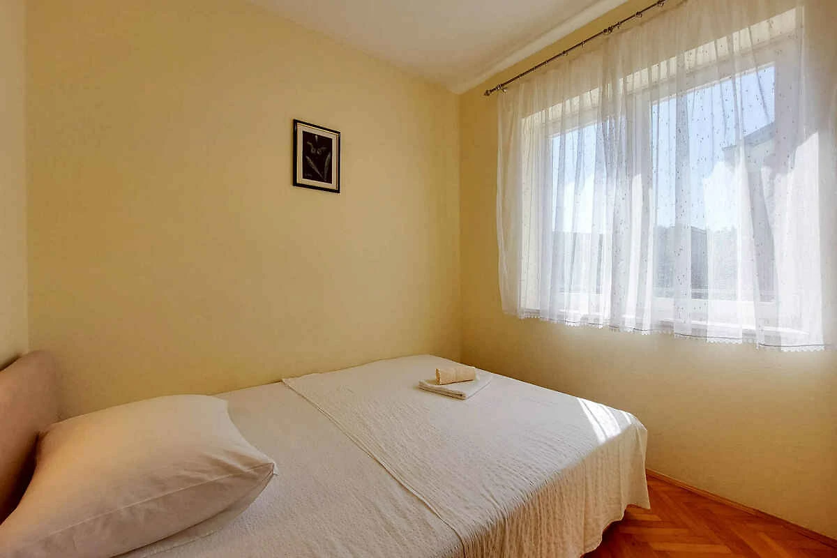 Punat. Der Vermieter wohnt nur zeitweise im Haus, nutzt jedoch einen separaten Eingang. Aussicht: Grünfläche und ruhige Lage. Parkplatz auf der Strasse vor dem Haus.