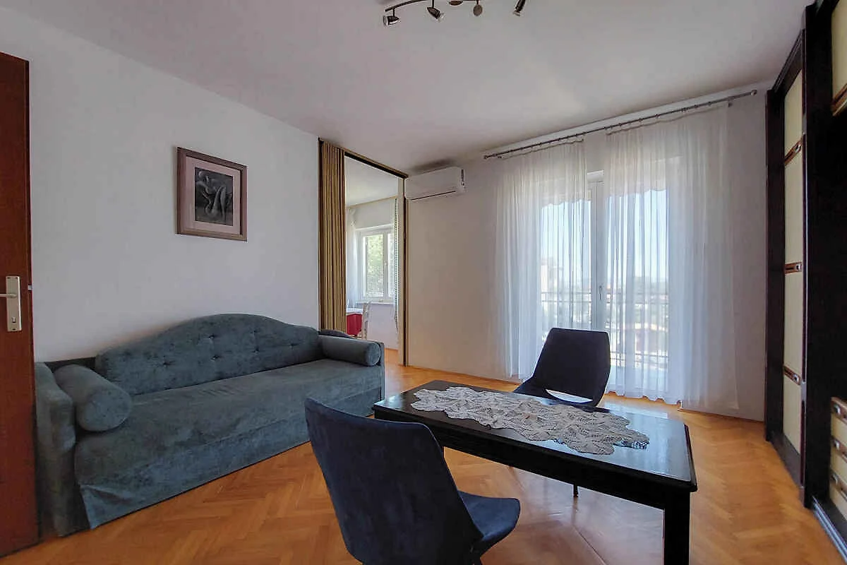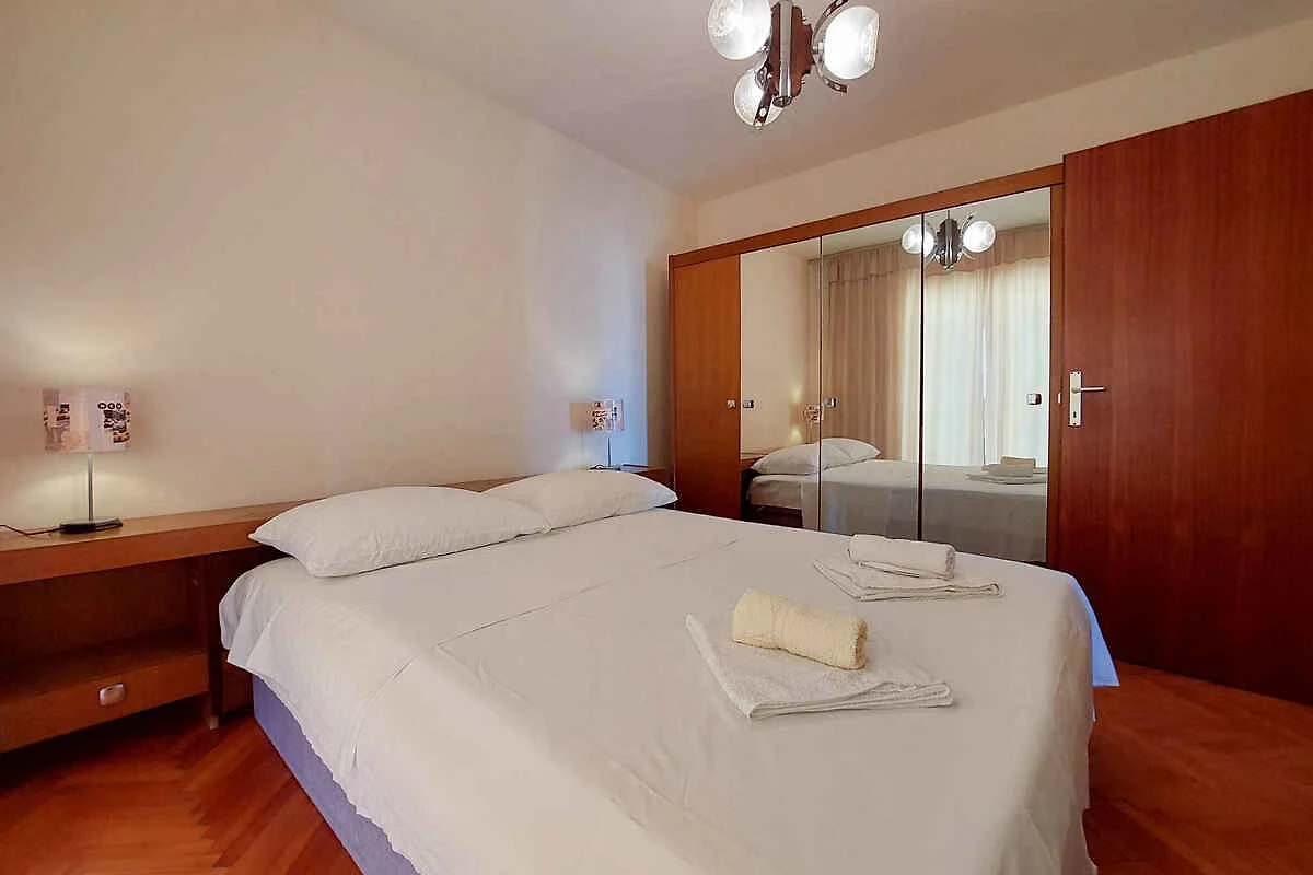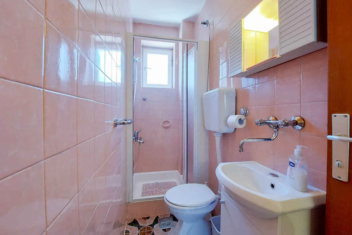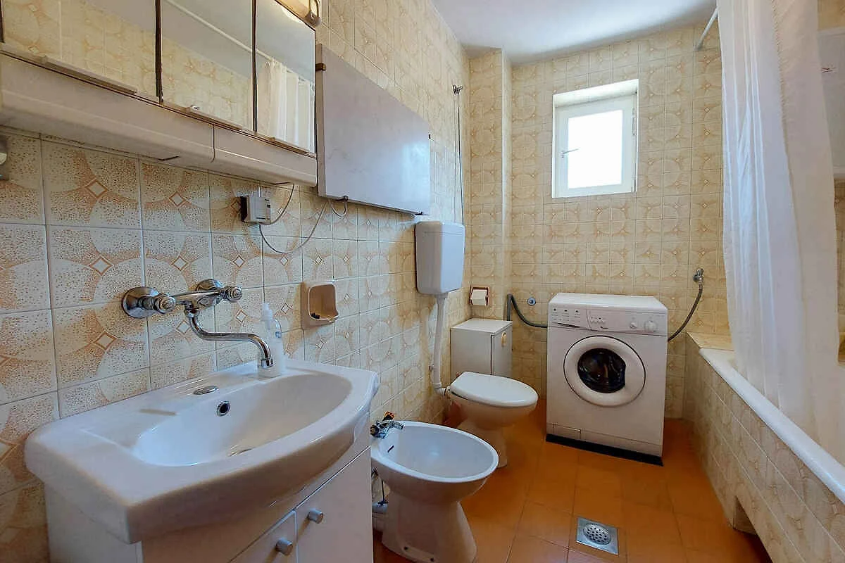 Punat. Der Vermieter wohnt nur zeitweise im Haus, nutzt jedoch einen separaten Eingang. Aussicht: Grünfläche und ruhige Lage. Parkplatz auf der Strasse vor dem Haus.