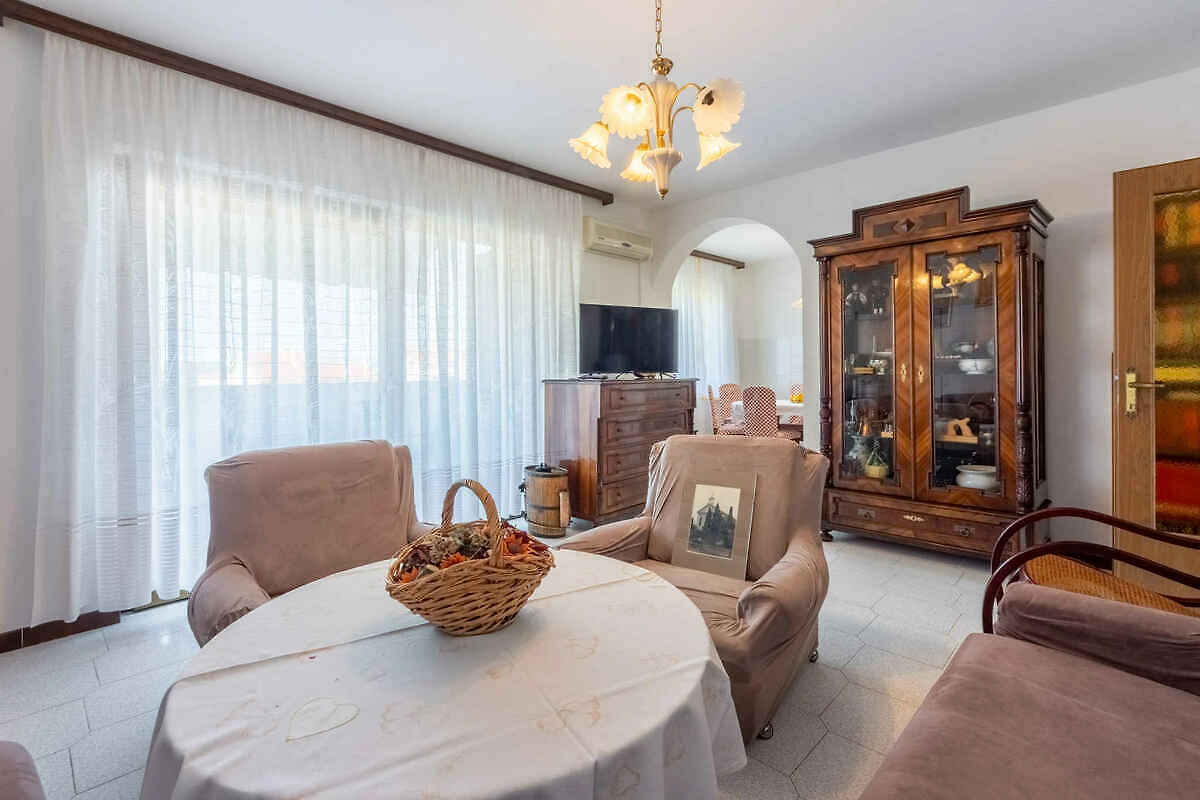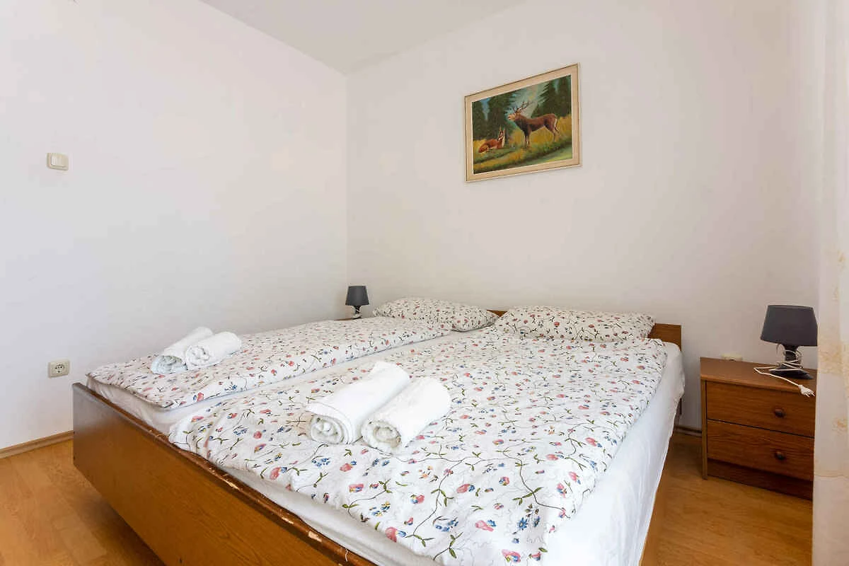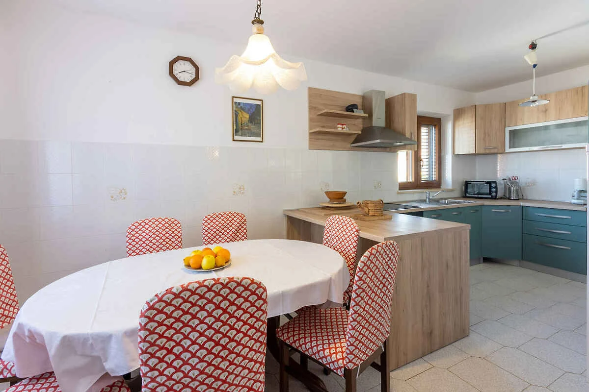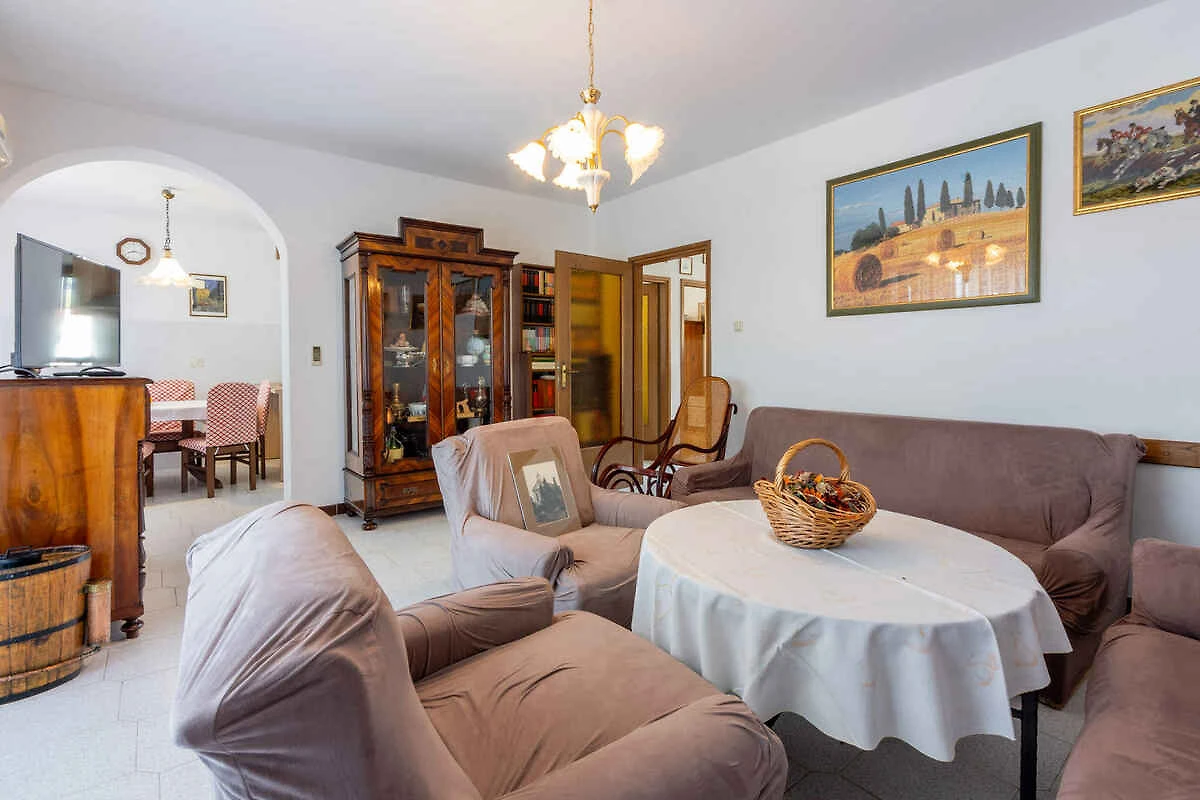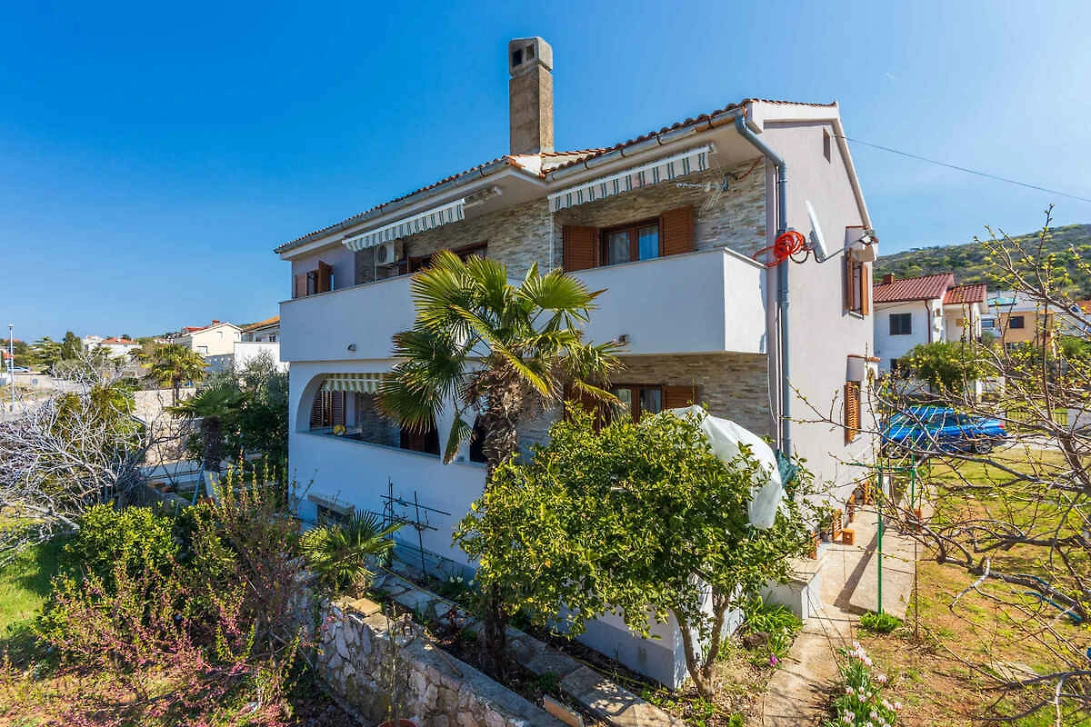 Punat. Die Ferienwohnung befindet sich auf einem offenen Gartengrundstück mit Wiese, Blumen, Sträuchern und Bäumen. Der Vermieter wohnt nur zeitweise im Haus, nutzt jedoch einen separaten Eingang. Aussicht: Grünfläche und Garten. Die Zufahrt erfolgt über eine Nebenstrasse (asphaltiert). Parkplatz auf dem Grundstück und der Strasse vor dem Haus.