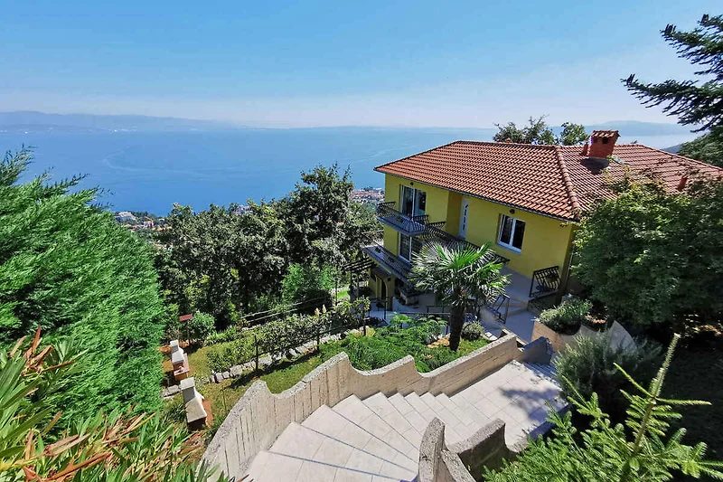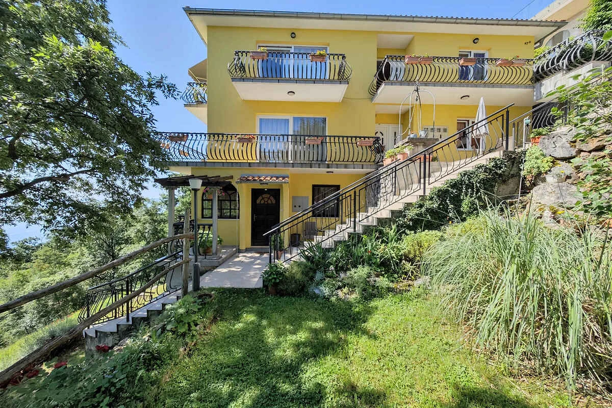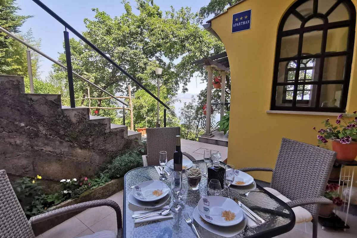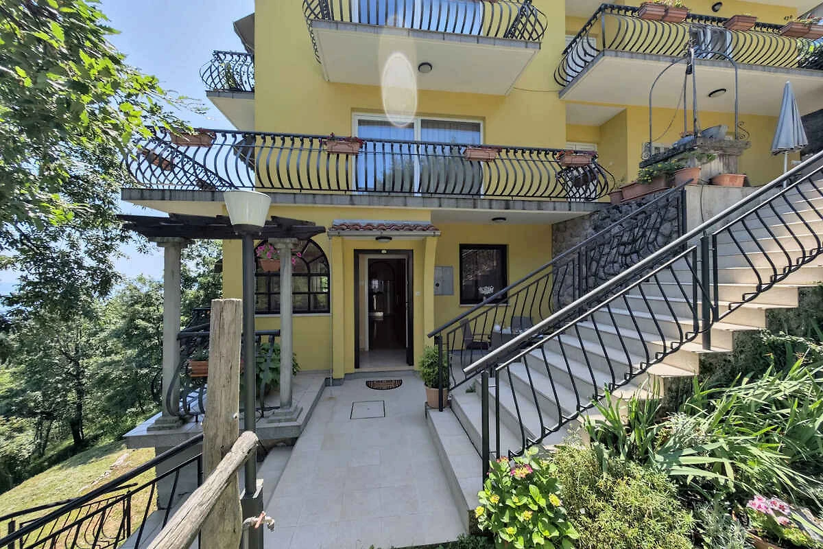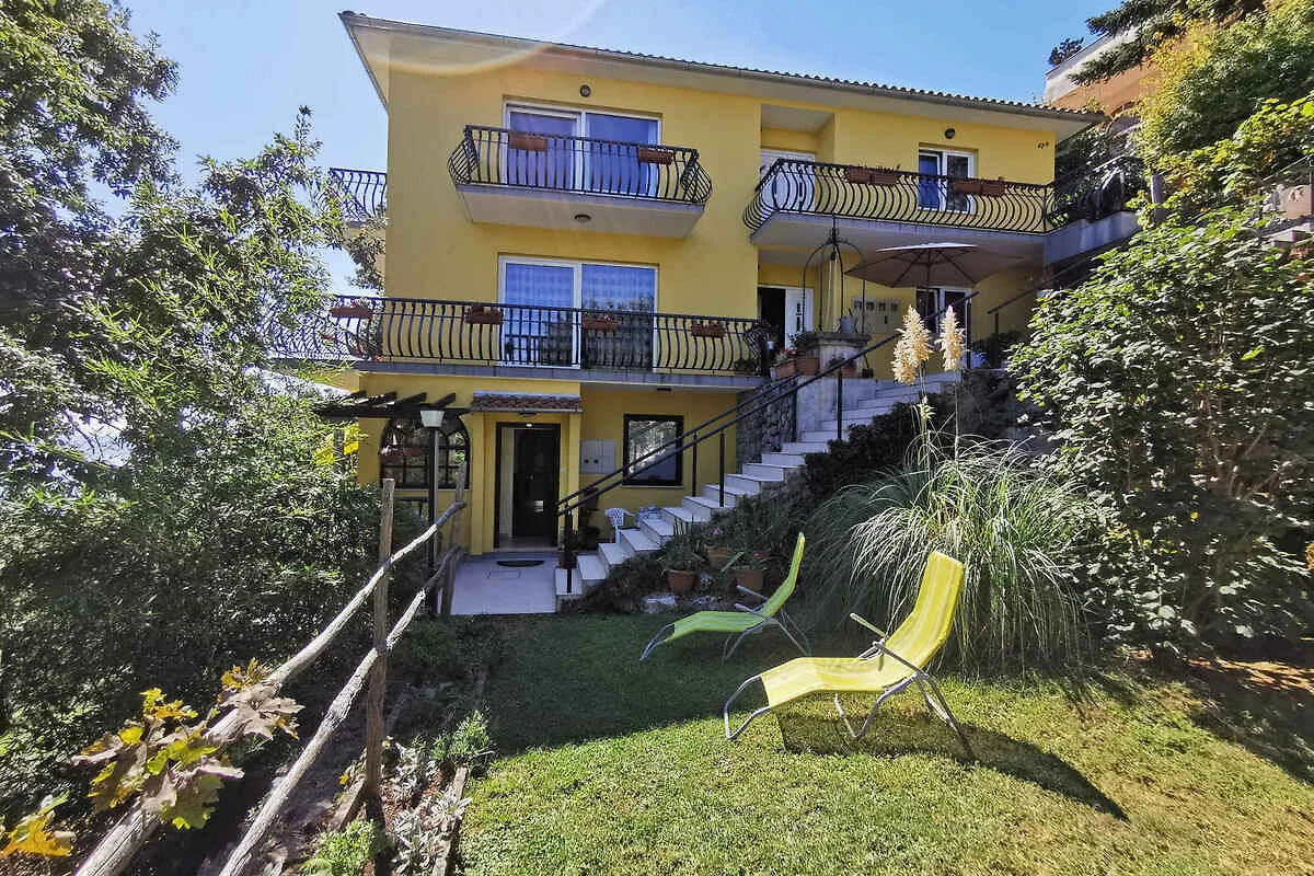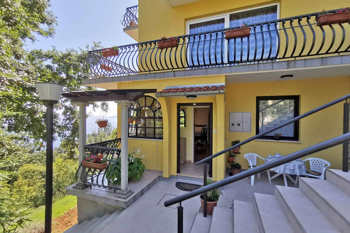 Lovran. Die Ferienwohnung befindet sich auf einem geschlossenen Gartengrundstück mit Blumen und Bäumen, von einem Zaun begrenzt. Der Vermieter wohnt nur zeitweise im Haus, nutzt jedoch einen separaten Eingang. schöne Aussicht auf Kvarner. Die Zufahrt erfolgt über eine Nebenstrasse (asphaltiert). Parkplatz auf dem Grundstück. Parkplatz Entfernung: 50m - 150 m vom Haus entfernt.