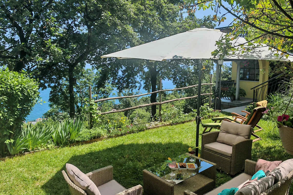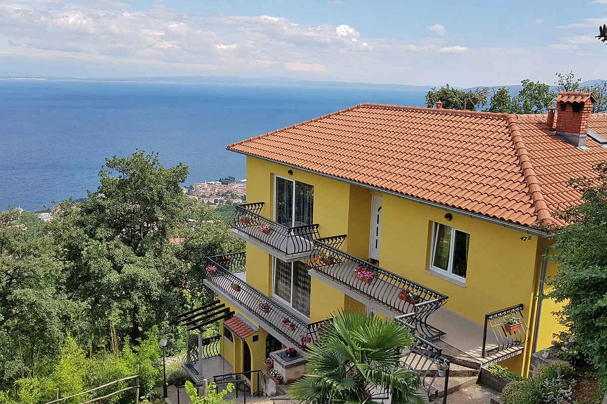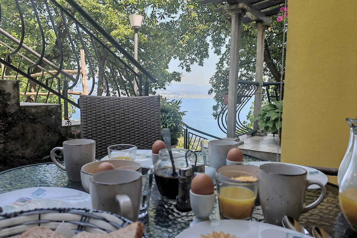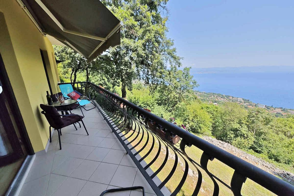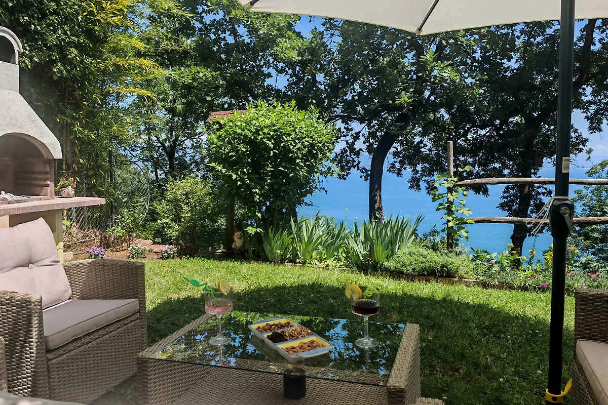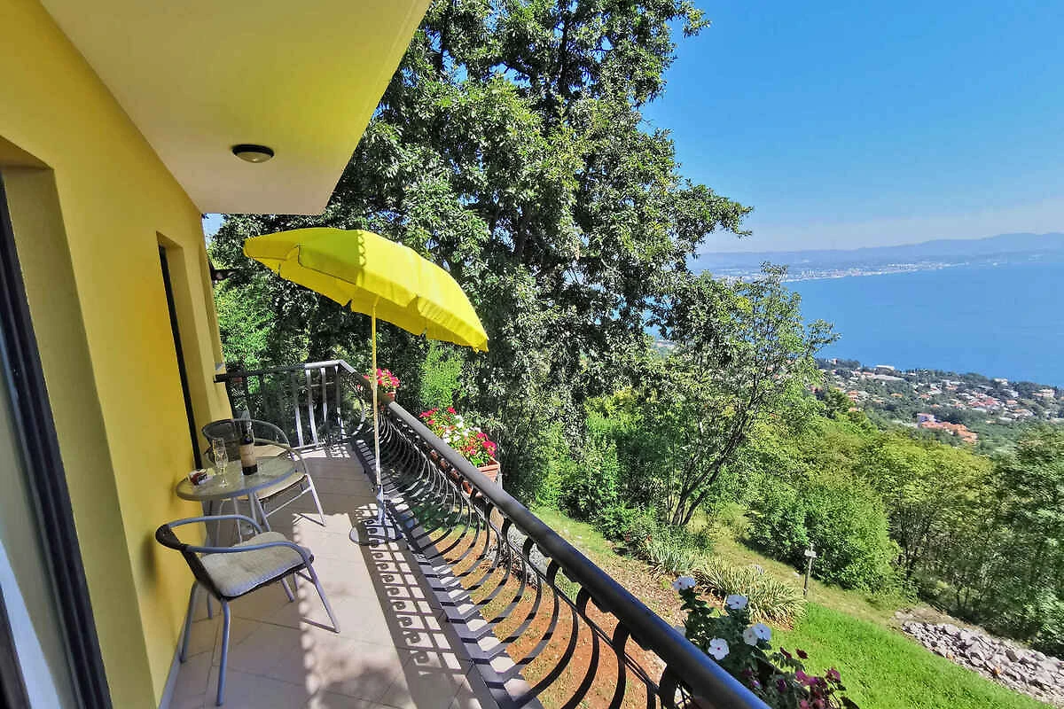 Lovran. Die Ferienwohnung befindet sich auf einem geschlossenen Gartengrundstück mit Blumen und Bäumen, von einem Zaun begrenzt. Der Vermieter wohnt nur zeitweise im Haus, nutzt jedoch einen separaten Eingang. schöne Aussicht auf Kvarner. Die Zufahrt erfolgt über eine Nebenstrasse (asphaltiert). Parkplatz auf dem Grundstück. Parkplatz Entfernung: 50m - 150 m vom Haus entfernt.