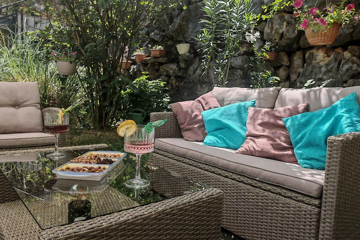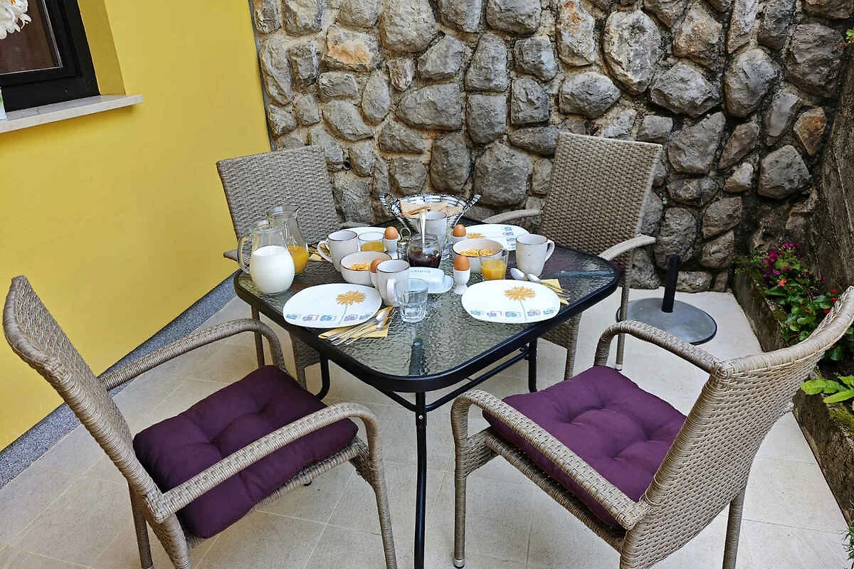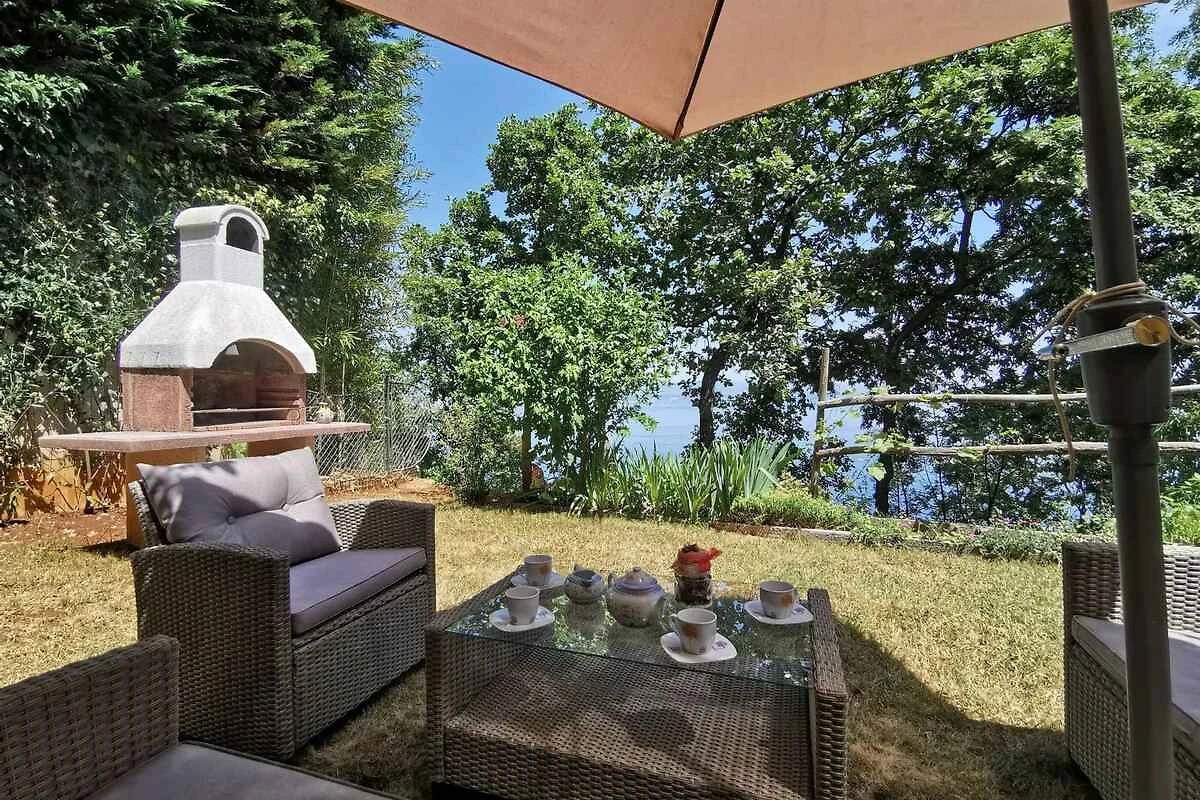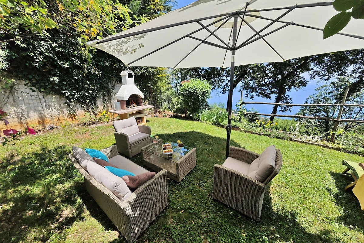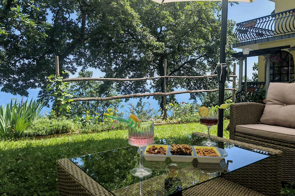 Lovran. Die Ferienwohnung befindet sich auf einem geschlossenen Gartengrundstück mit Blumen und Bäumen, von einem Zaun begrenzt. Der Vermieter wohnt nur zeitweise im Haus, nutzt jedoch einen separaten Eingang. schöne Aussicht auf Kvarner. Die Zufahrt erfolgt über eine Nebenstrasse (asphaltiert). Parkplatz auf dem Grundstück. Parkplatz Entfernung: 50m - 150 m vom Haus entfernt.