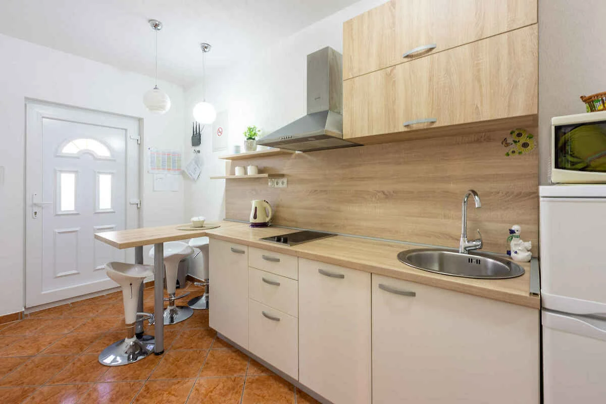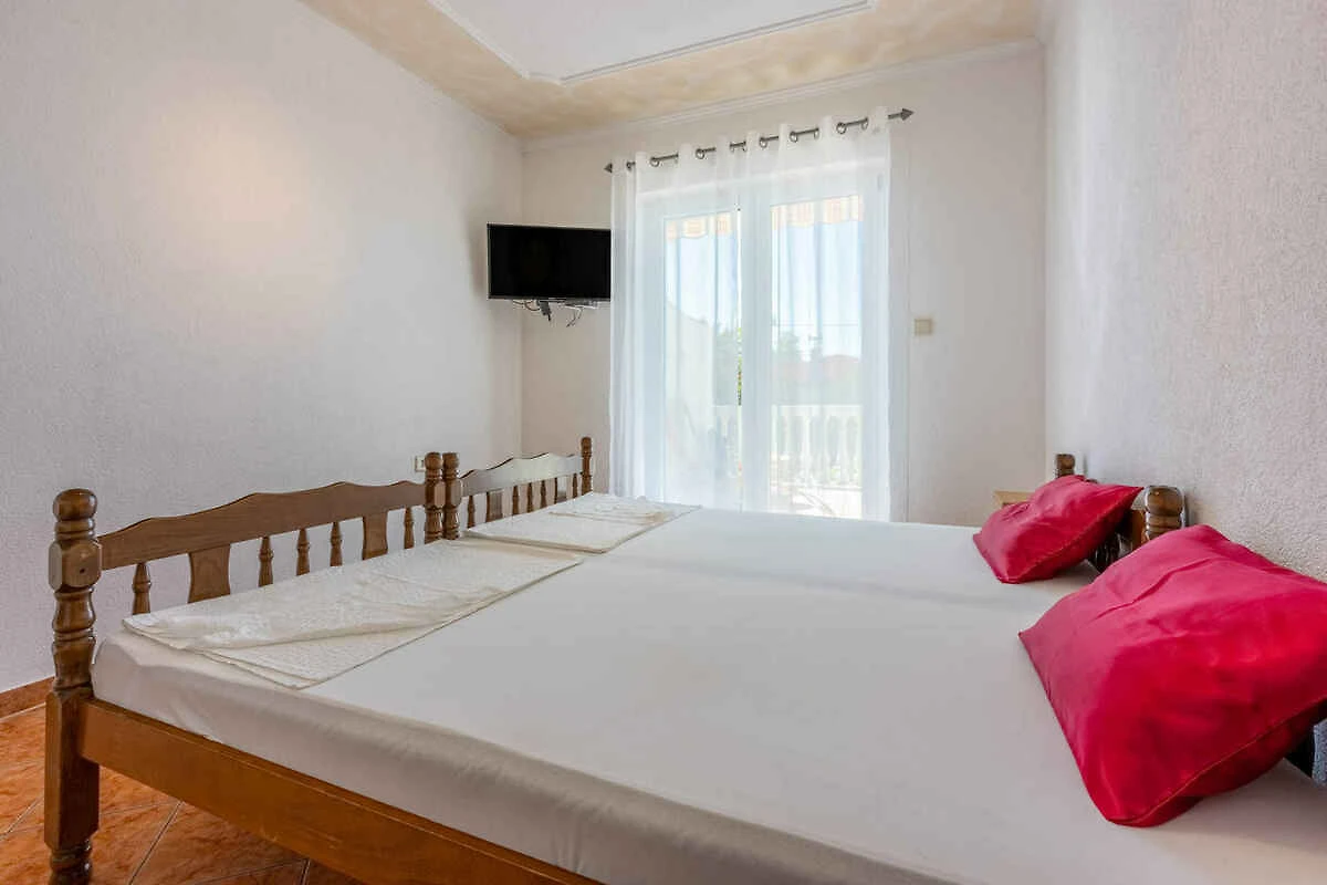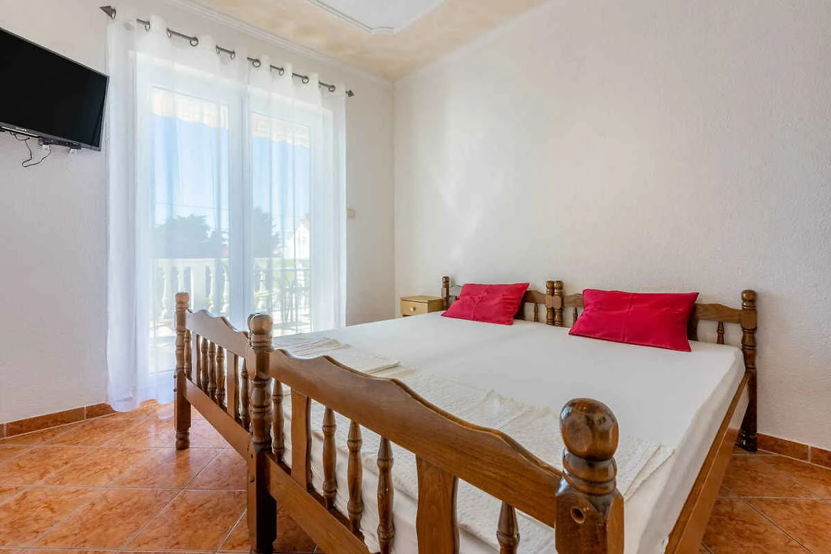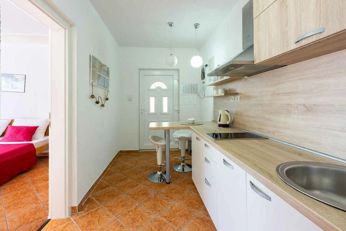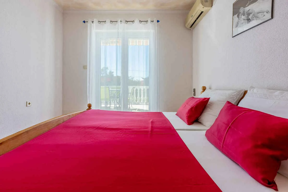 Selce. Die Ferienwohnung befindet sich auf einem offenen Grundstück. Der Vermieter wohnt im Haus. Die Zufahrt erfolgt über eine Nebenstrasse. Parkplatz auf dem Grundstück.