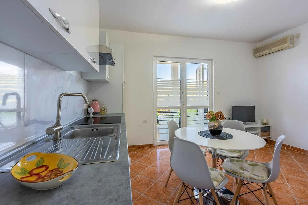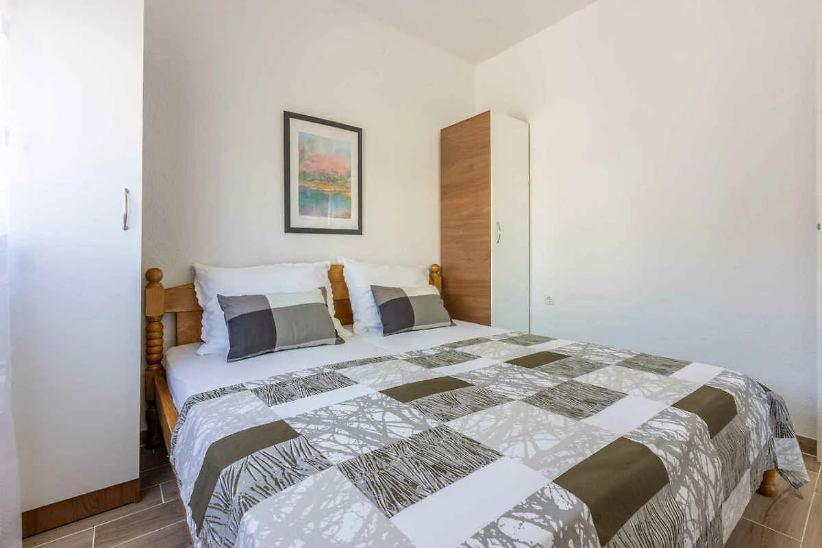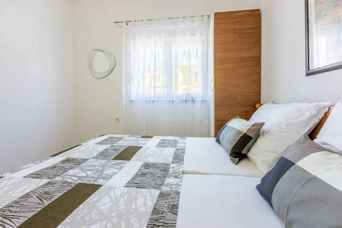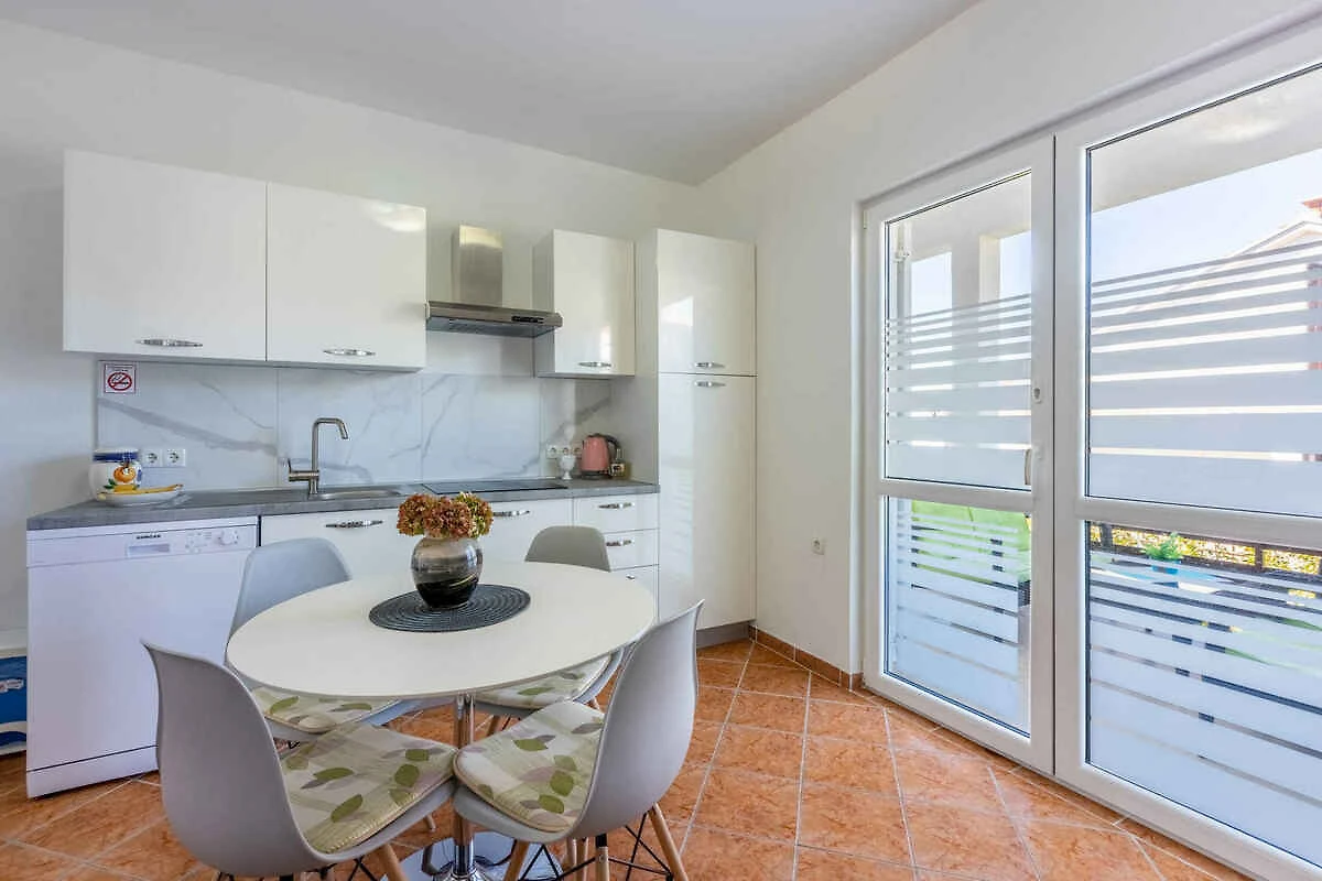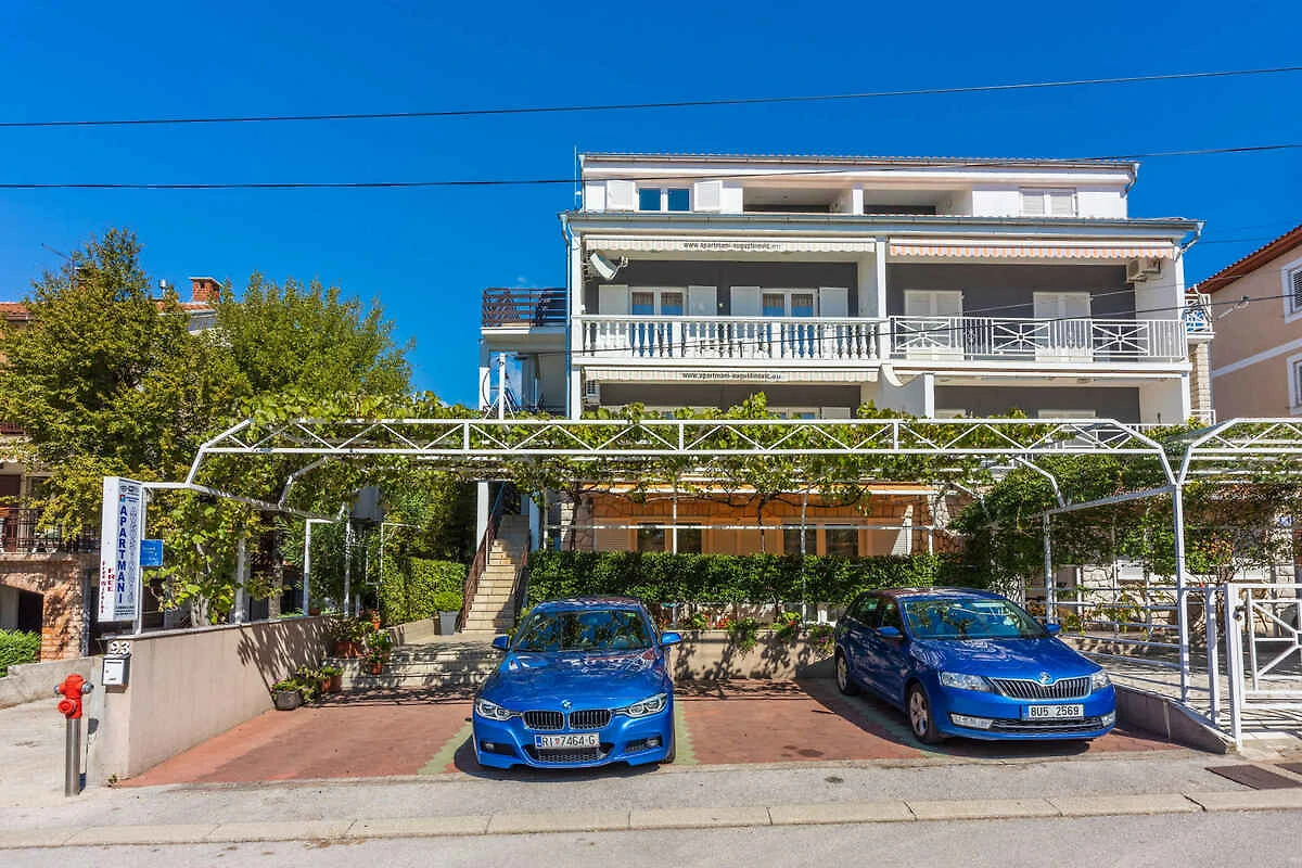 Selce. Die Ferienwohnung befindet sich auf einem offenen Grundstück. Der Vermieter wohnt im Haus. Die Zufahrt erfolgt über eine Nebenstrasse. Parkplatz auf dem Grundstück.