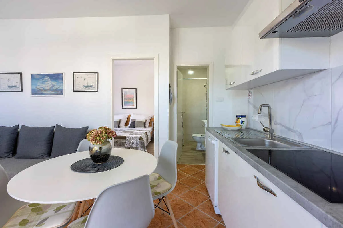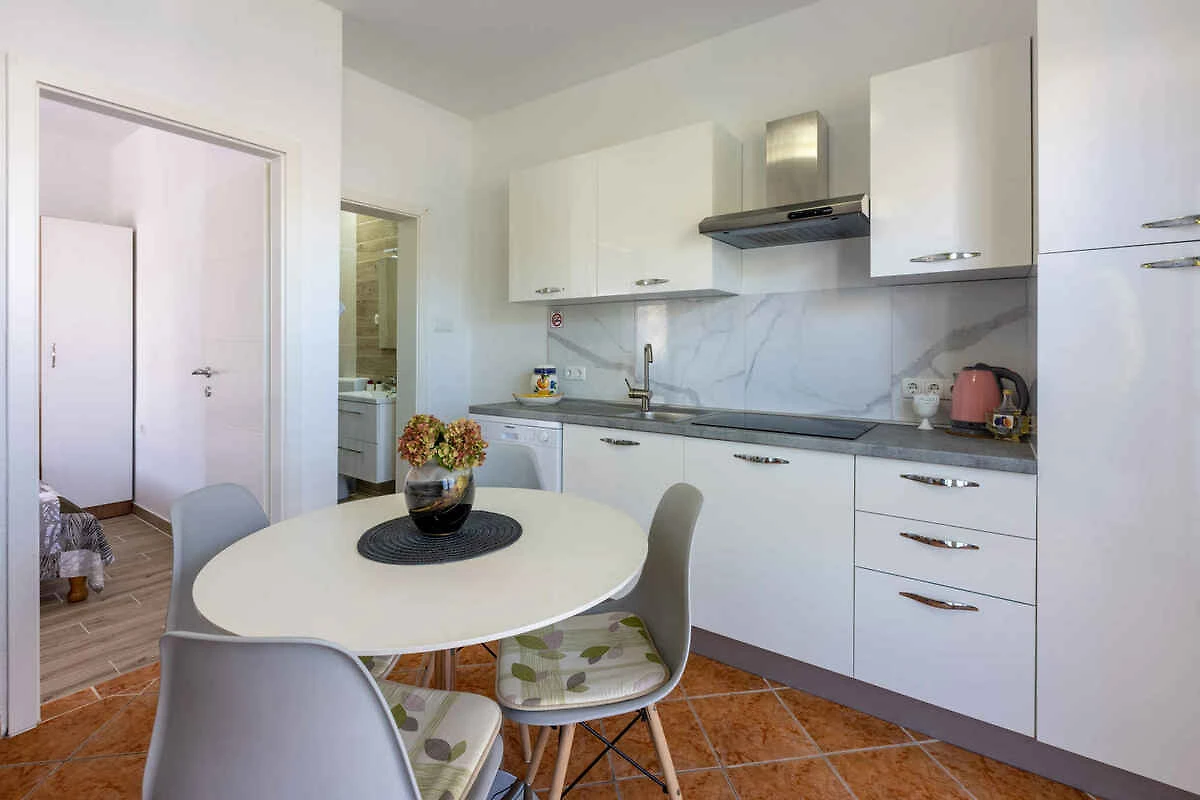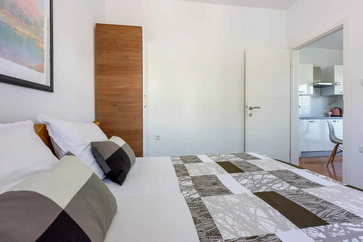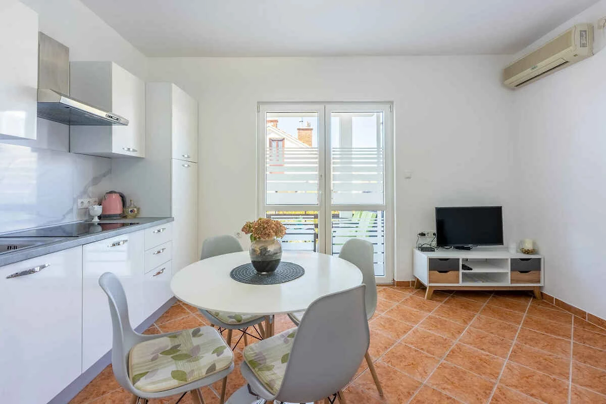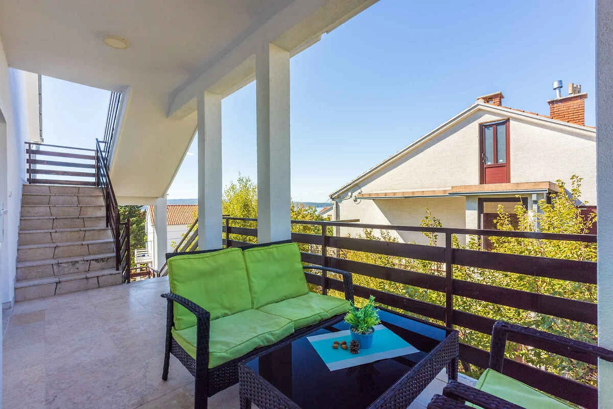 Selce. Die Ferienwohnung befindet sich auf einem offenen Grundstück. Der Vermieter wohnt im Haus. Die Zufahrt erfolgt über eine Nebenstrasse. Parkplatz auf dem Grundstück.