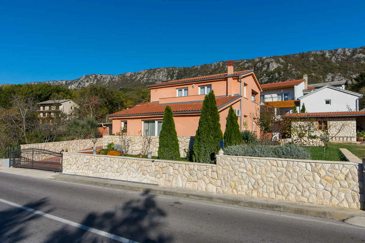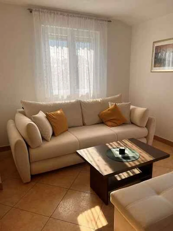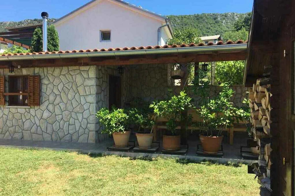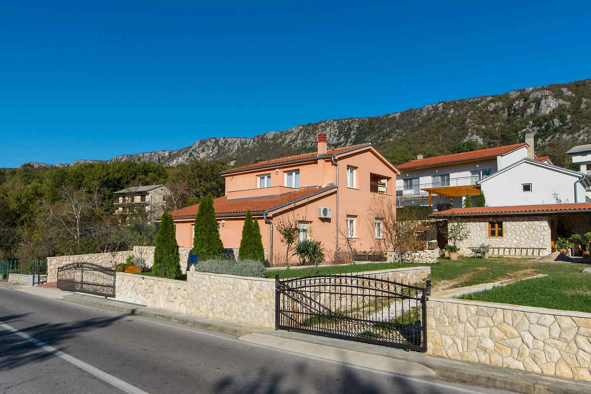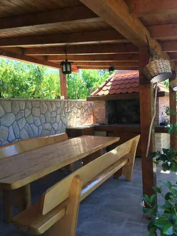 Bribir. Die Ferienwohnung befindet sich auf einem geschlossenen Gartengrundstück mit Wiese und Bäumen, von einem Zaun begrenzt. Der Vermieter wohnt ständig im Haus, nutzt jedoch einen separaten Eingang. Die Zufahrt erfolgt direkt von der Hauptstrasse (asphaltiert). Parkplatz auf dem Grundstück.