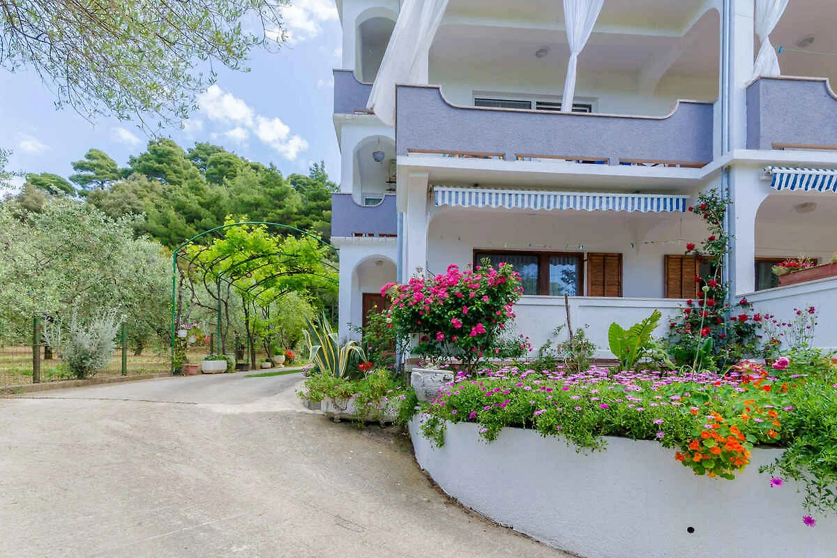 Palit. Die Ferienwohnung befindet sich auf einem Bauernhof, auf einem geschlossenen Gartengrundstück mit Blumen, Sträuchern und Bäumen, von einem Zaun begrenzt. Die Zufahrt erfolgt über eine Nebenstrasse (asphaltiert). Parkplatz auf dem Grundstück.