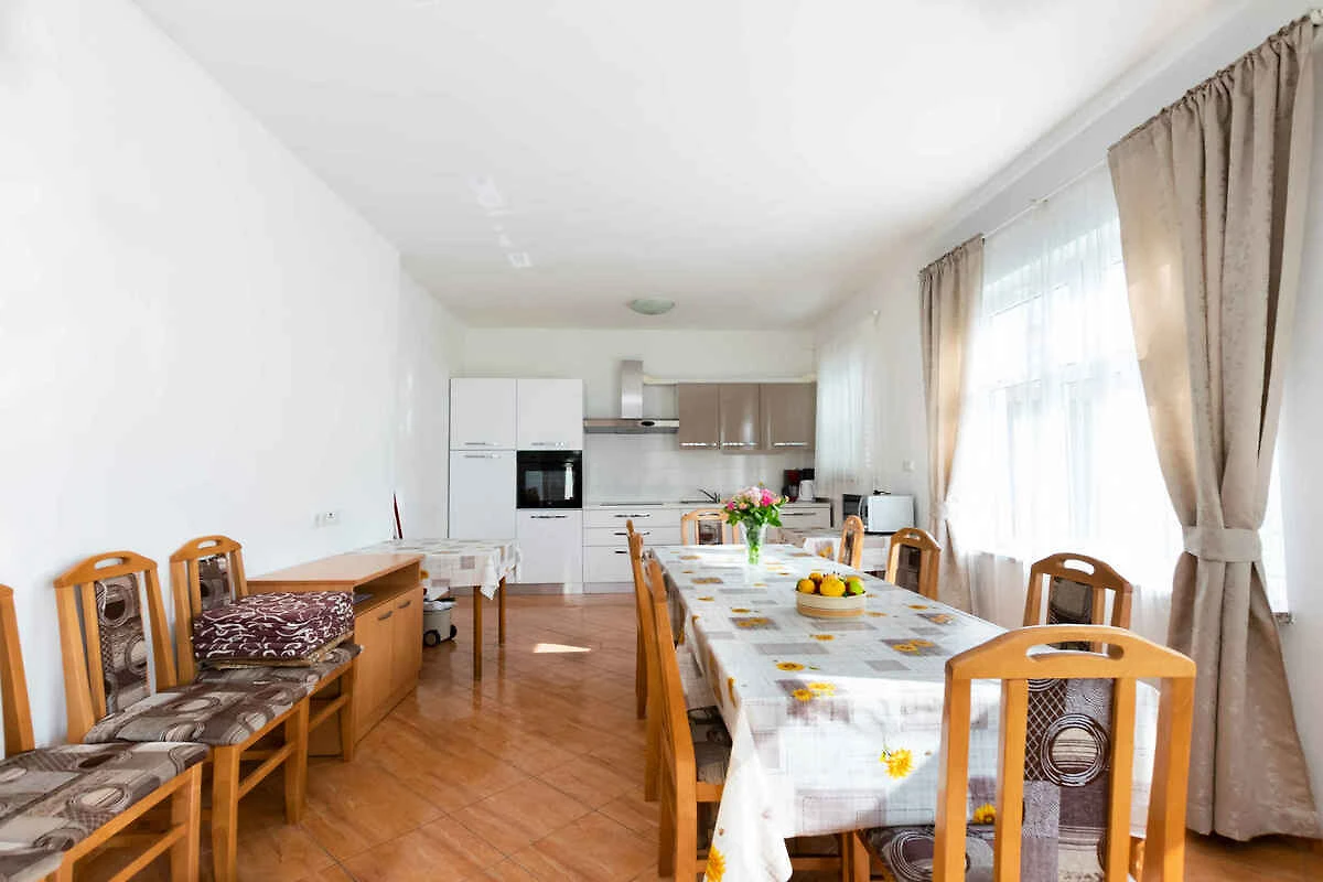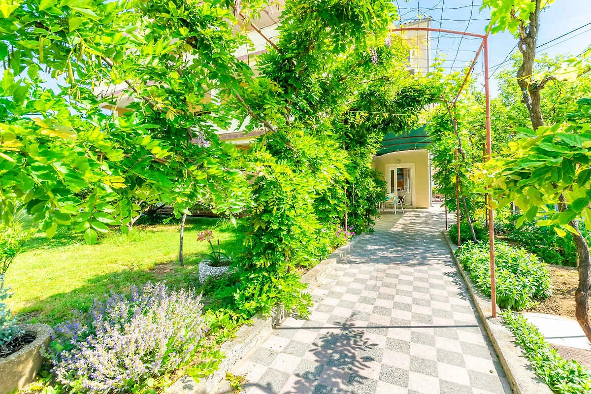Lopar. Die Ferienwohnung befindet sich auf einem geschlossenen Gartengrundstück mit Wiese und Bäumen, von einem Zaun begrenzt. Der Vermieter wohnt im Haus, nutzt jedoch einen separaten Eingang. Die Zufahrt erfolgt über eine Nebenstrasse (asphaltiert).