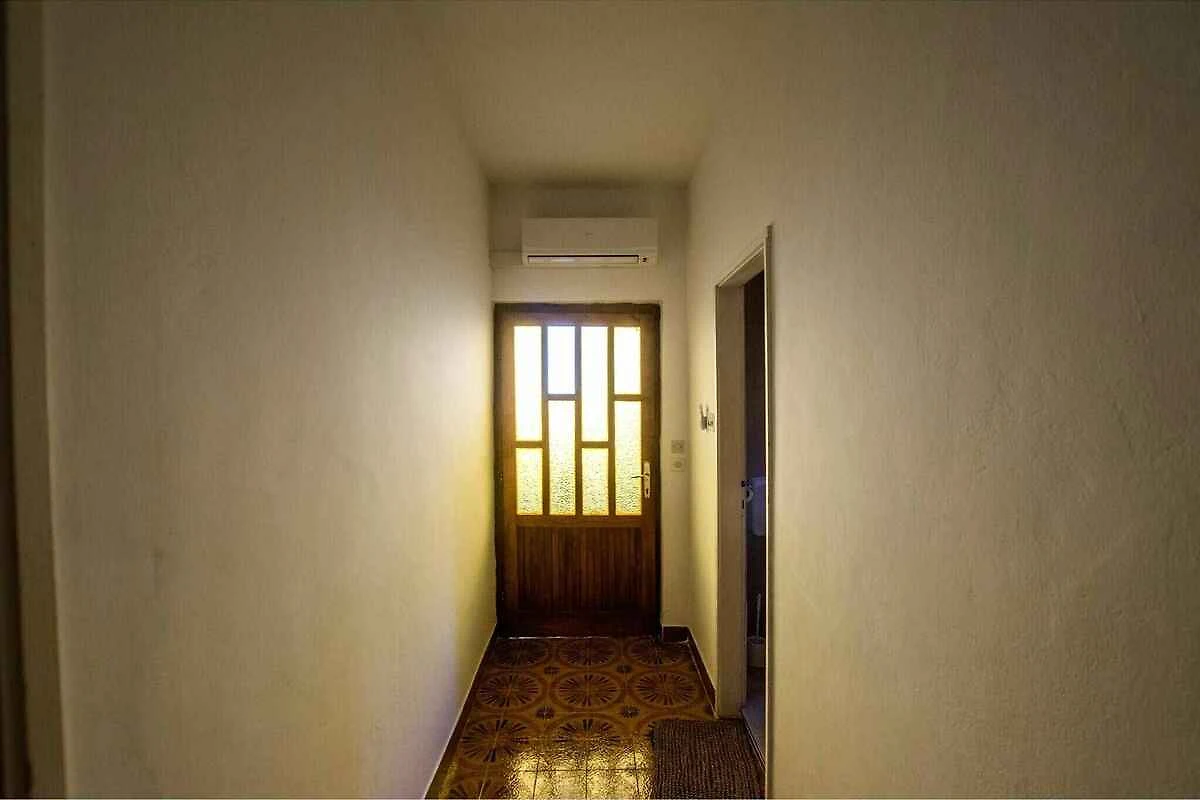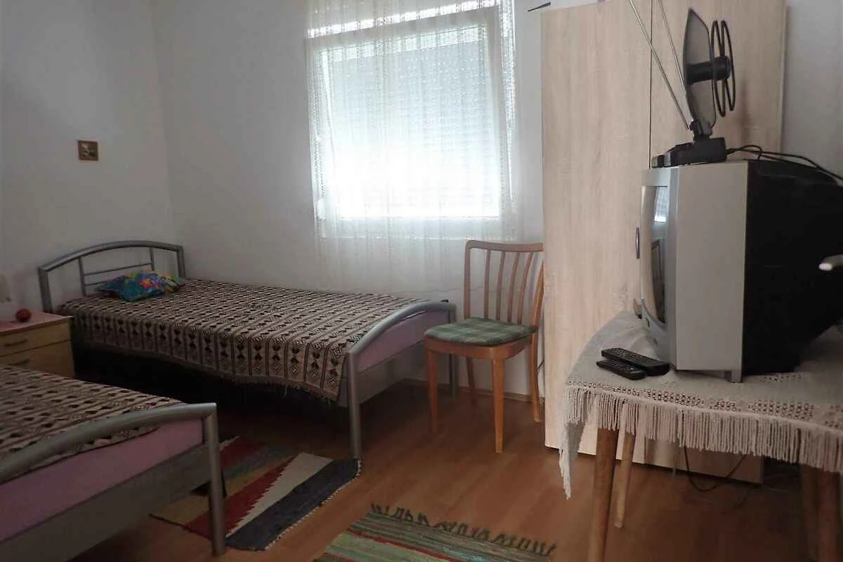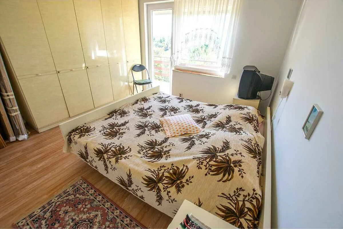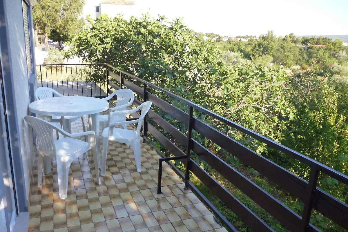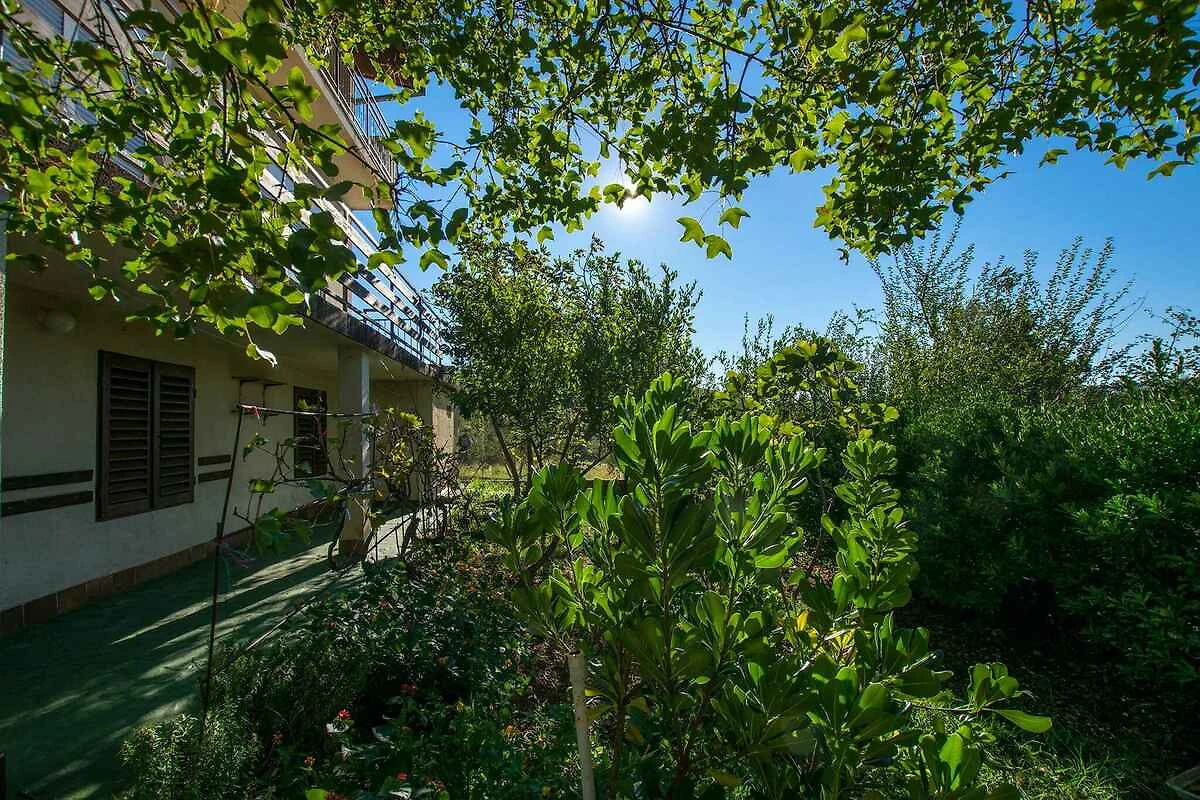 Starigrad-Paklenica. Die Ferienwohnung befindet sich auf einem geschlossenen Gartengrundstück mit Sträuchern und Bäumen, von einem Zaun begrenzt. Der Vermieter wohnt im Haus. Parkplatz auf der Strasse vor dem Haus.