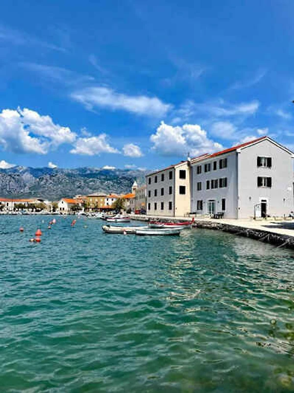 Vinjerac. Der Vermieter wohnt ständig im Haus, nutzt jedoch einen separaten Eingang. Die Zufahrt erfolgt direkt von der Hauptstrasse (asphaltiert). Parkplatz auf der Strasse vor dem Haus.
