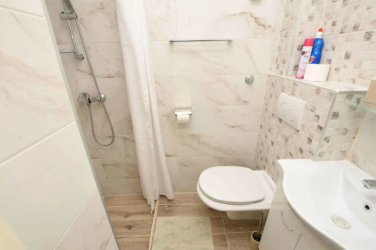 Einkauf 50 m, Restaurant 300 m, Ortszentrum 500 m. Die nächste Haltestelle für den öffentlichen Nahverkehr ist 200 m entfernt. Biograd: Apotheke 300 m, Bank 3,5 km und Arzt 500 m. Flughafen in Zadar 20 km. Im Sommer: Adriatisches Meer 150 m in Biograd (Strand 170 m in Biograd). Bootsverleih in Biograd 10 km.