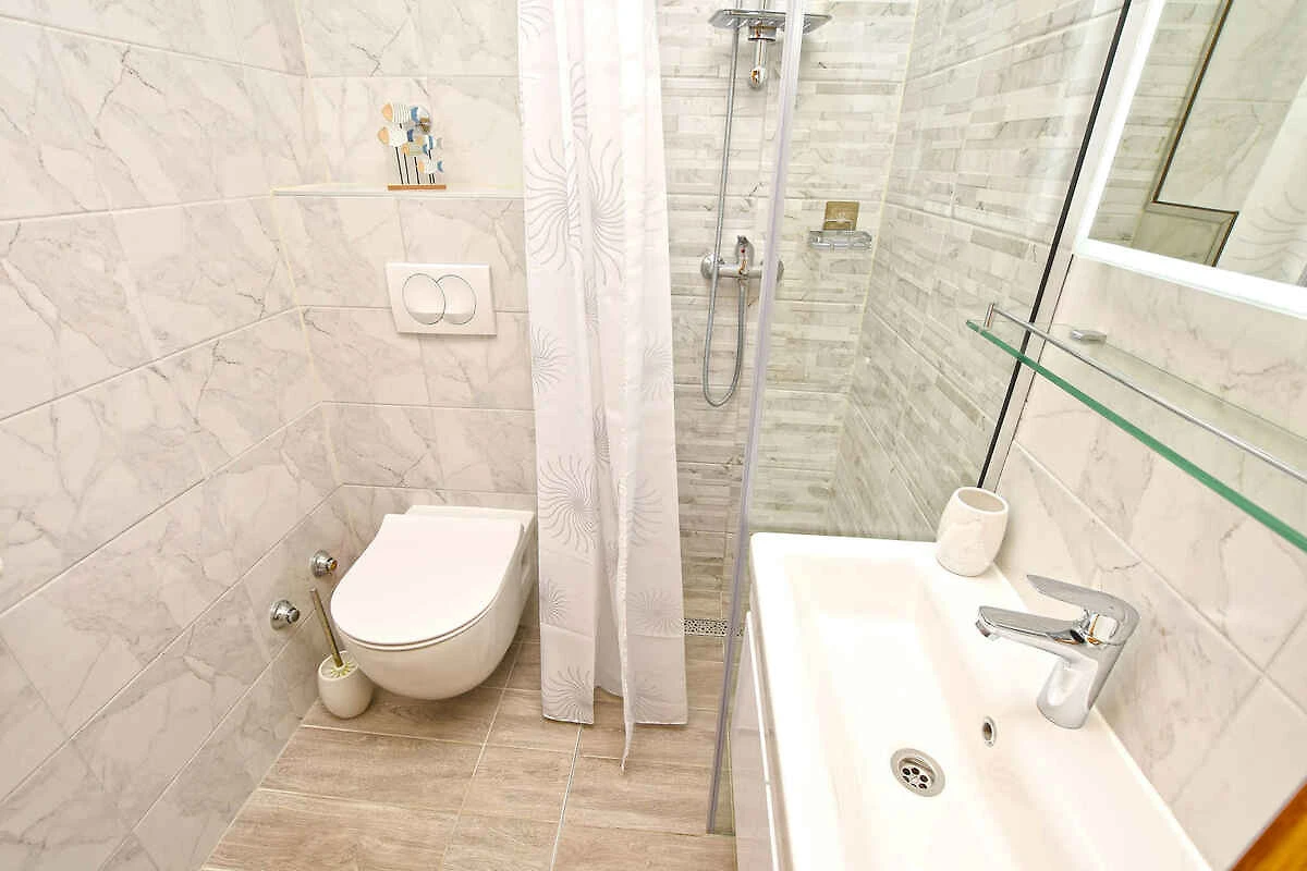 Einkauf 50 m, Restaurant 300 m, Ortszentrum 500 m. Die nächste Haltestelle für den öffentlichen Nahverkehr ist 200 m entfernt. Biograd: Apotheke 300 m, Bank 3,5 km und Arzt 500 m. Flughafen in Zadar 20 km. Im Sommer: Adriatisches Meer 150 m in Biograd (Strand 170 m in Biograd). Bootsverleih in Biograd 10 km.