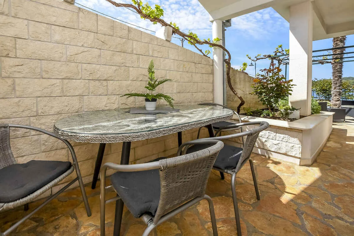 Die Ferienwohnung befindet sich in einem Apartementhaus und ist zweckmässig eingerichtet. Das Grundstück liegt in einem Wohngebiet, am Ortsrand. Auch wegen des Ausblicks vom Grundstück auf das Meer ist das Domizil beliebt. Zur alleinigen Nutzung stehen zur Verfügung: Gartendusche, Grillmöglichkeit und Terrasse.