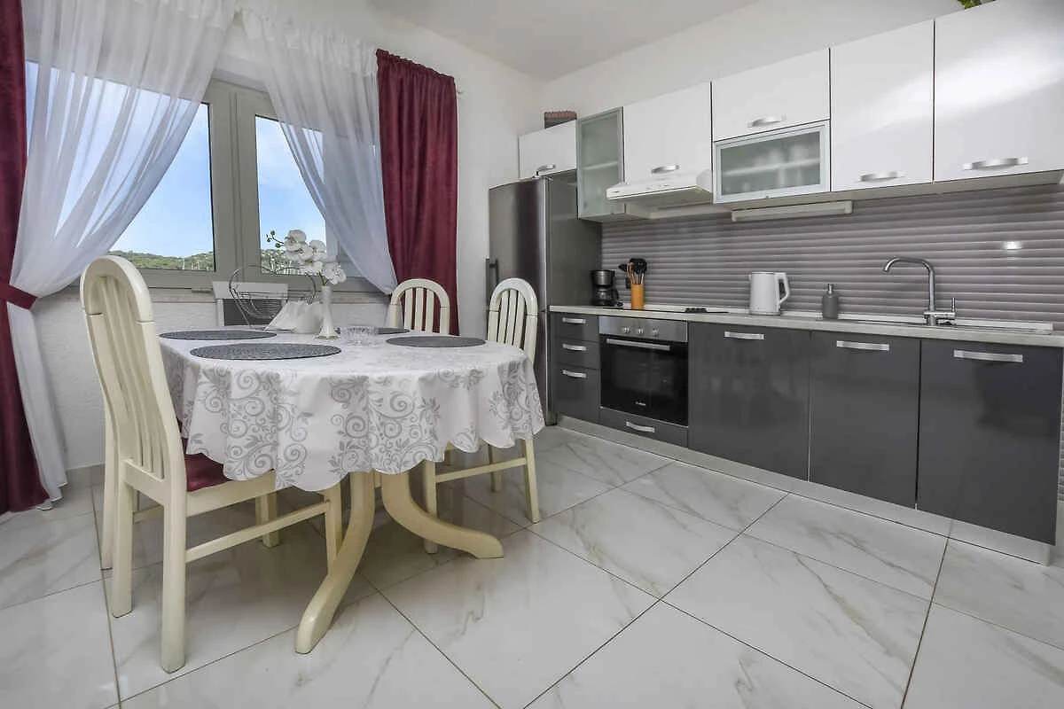 Einkauf 100 m, Restaurant 50 m, Ortszentrum 50 m. Die nächste Haltestelle für den öffentlichen Nahverkehr ist 2 km entfernt. Rogoznica: Apotheke 1500 m, Arzt 300 m und Bank 500 m. Flughafen in Splitska 25 km. Markt 100 m in Roznica, Bar 50 m in Roznica. Im Sommer: Adriatischen Meer 10 m in Rogoznica (Strand 10 m in Rogoznica mit Steinen und Felsen). Fahrradverleih 100m in Roznica.