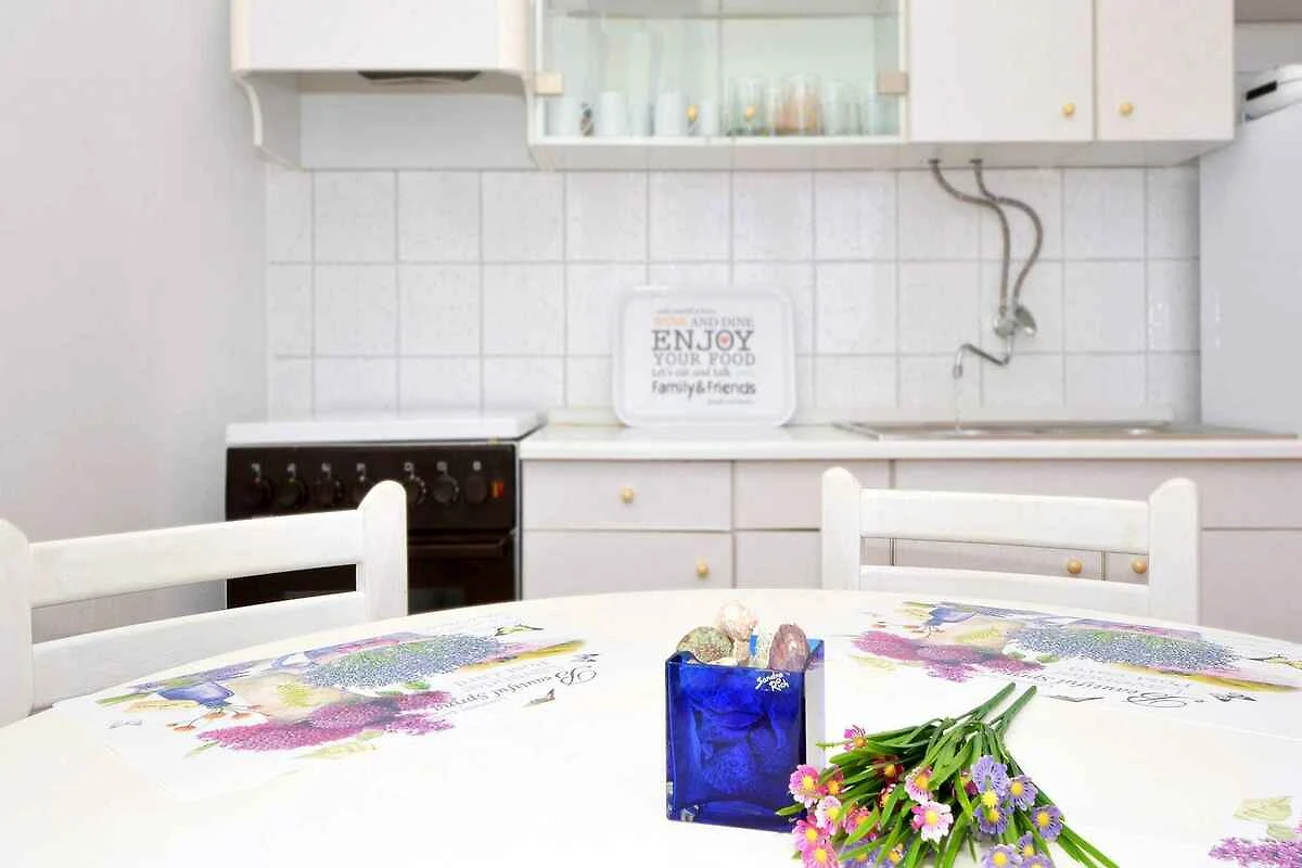 Die Ferienwohnung befindet sich in einem Apartementhaus und ist zweckmässig eingerichtet. Das Grundstück liegt in einem Wohngebiet. Auch wegen des Ausblicks vom Grundstück auf das Meer ist das Domizil beliebt. Zur Nutzung stehen zur Verfügung: Gartendusche und Grillmöglichkeit.