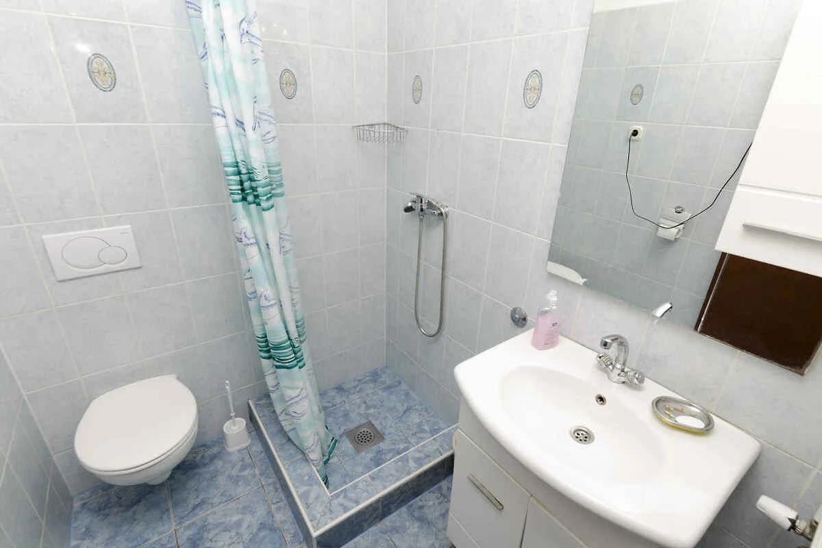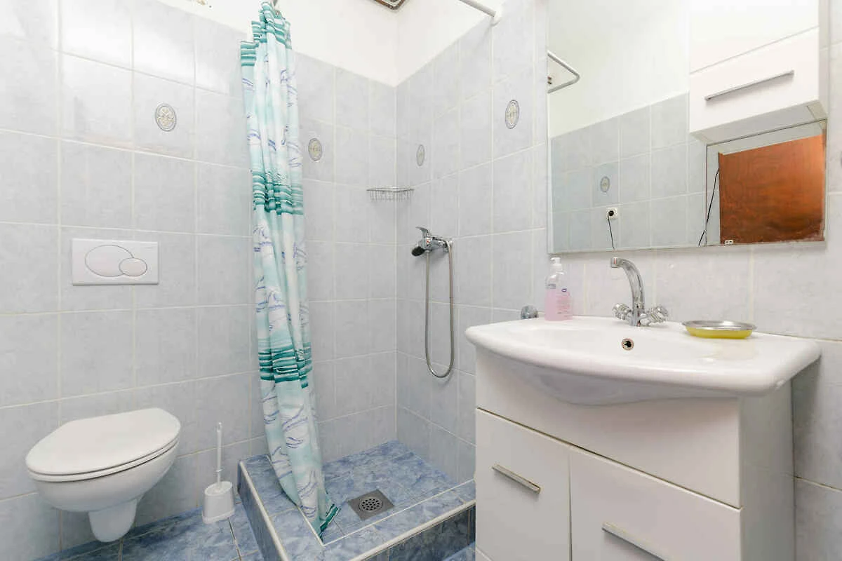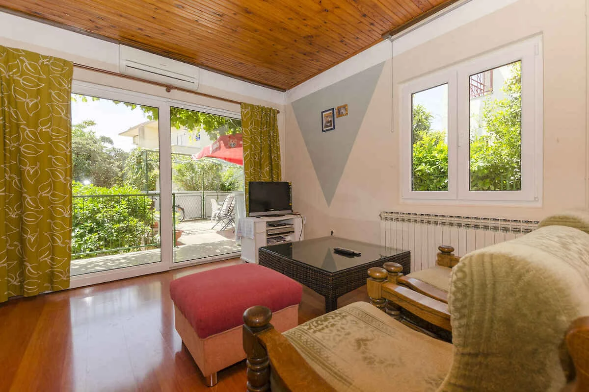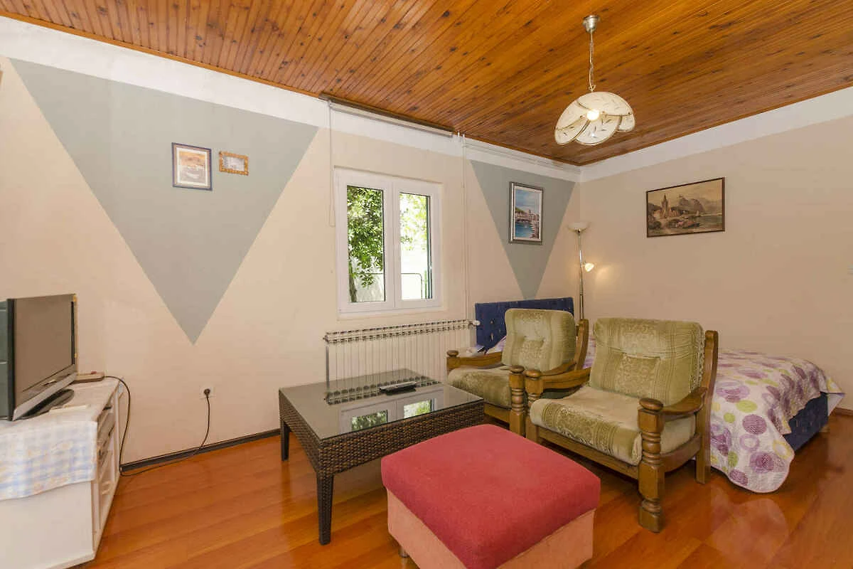 Rogoznica. Die Ferienwohnung befindet sich auf einem Gartengrundstück mit Bäumen. Der Vermieter wohnt ständig im Haus, nutzt jedoch einen separaten Eingang. Die Zufahrt erfolgt über einen Weg (asphaltiert). Parkplatz auf der Strasse vor dem Haus.