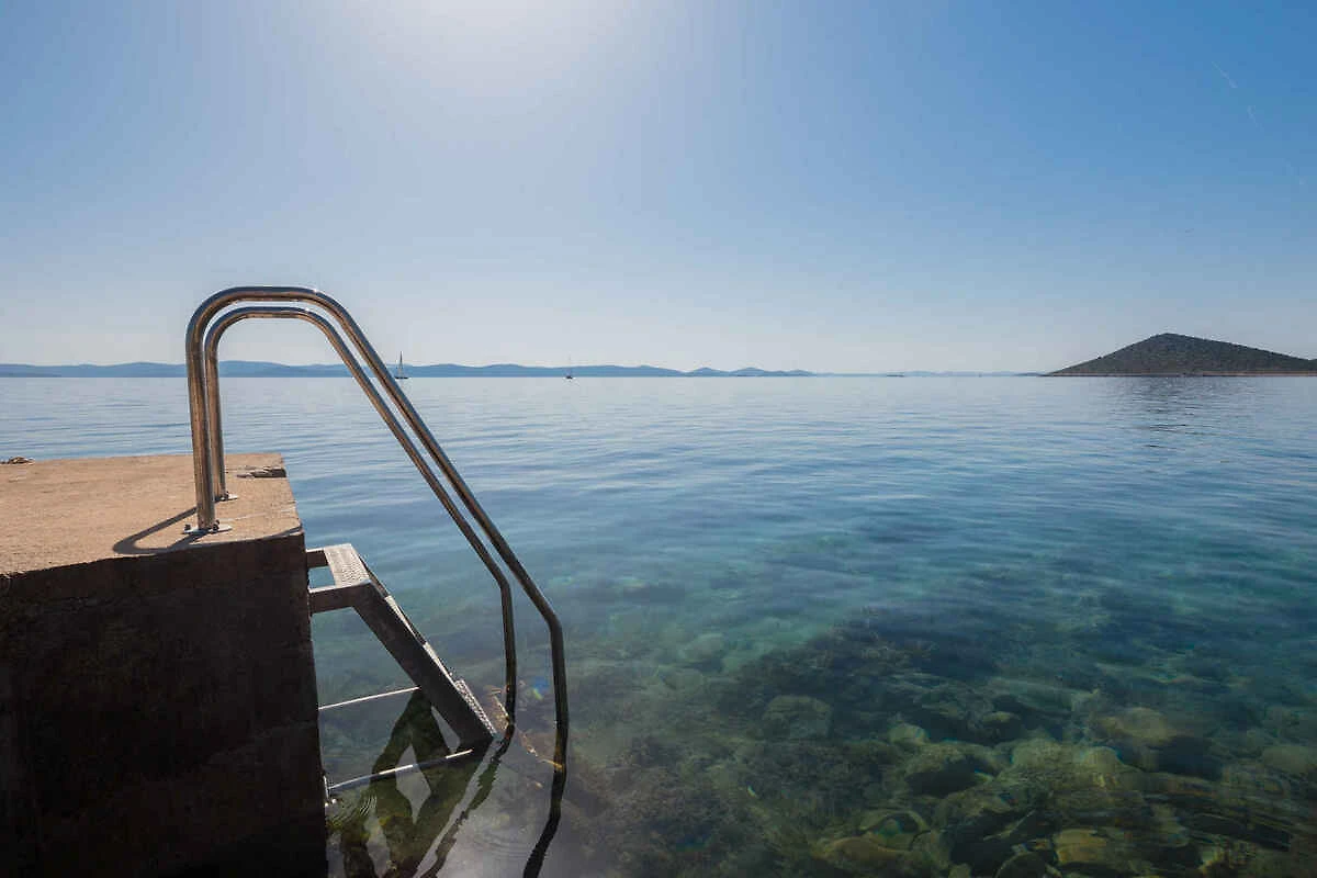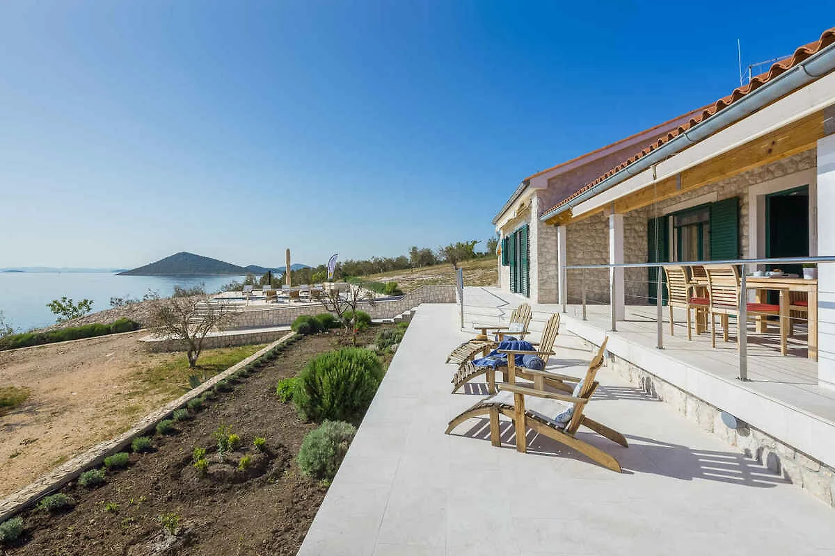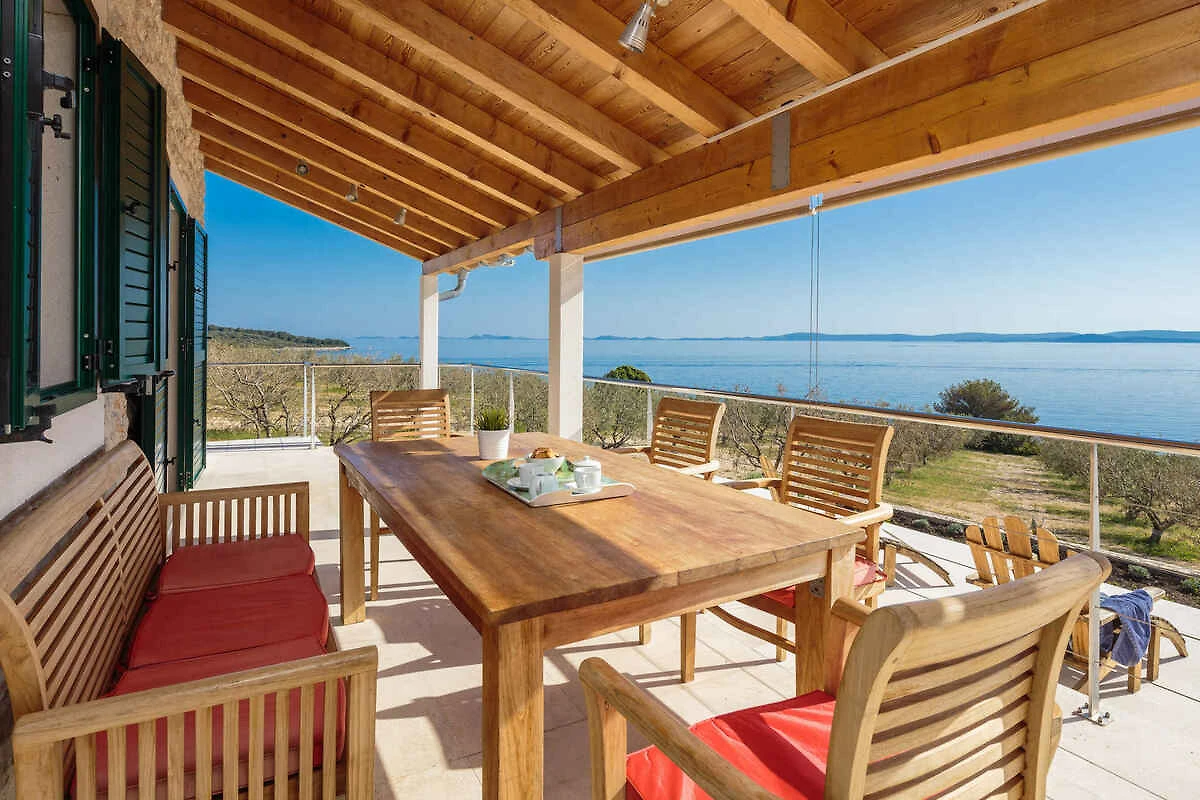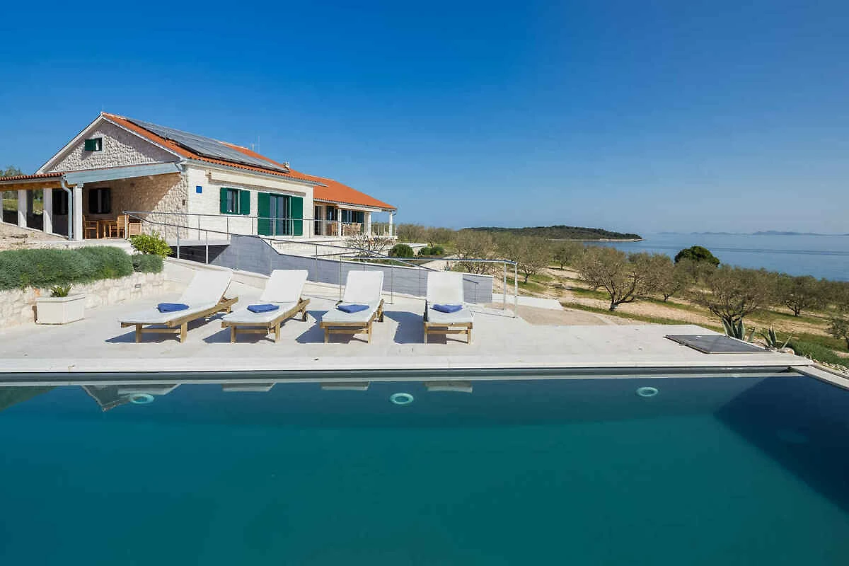 Zizanj - island Zizanj, 140 mNN. Die Villa befindet sich in einer Residenz, auf einem 47500 qm grossen, offenen Gartengrundstück mit Wiese und Bäumen. Die Villa befindet sich auf einem 47.500 m grossen privaten Olivenhain am äussersten Kap der Insel Žižanj. Einer Villa für bis zu 8 Personen auf der Insel Žižanj. Die Insel Žižanj hat keine Fährverbindung zum Festland. Die Zufahrt erfolgt über eine Nebenstrasse (asphaltiert). Parkplatz auf dem Grundstück.