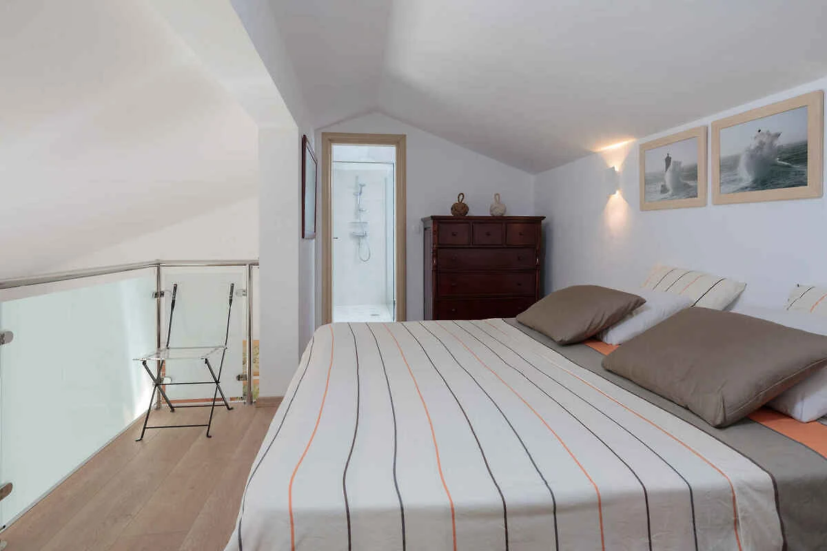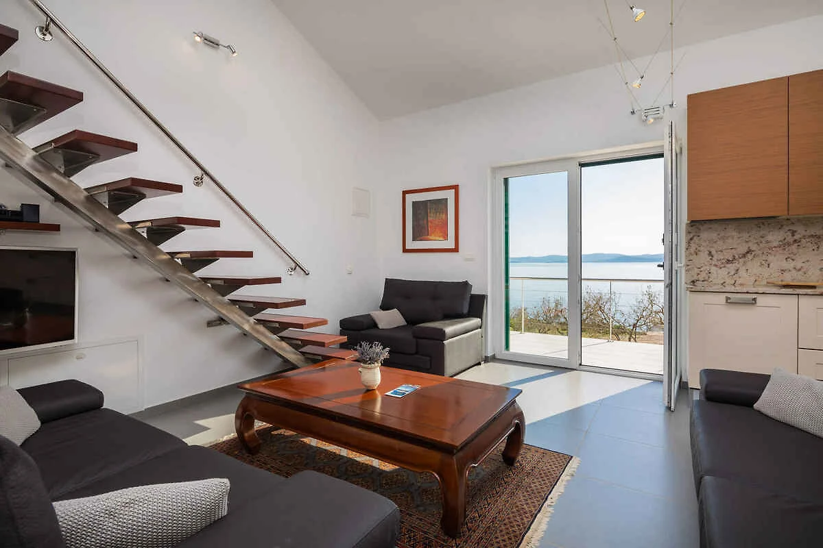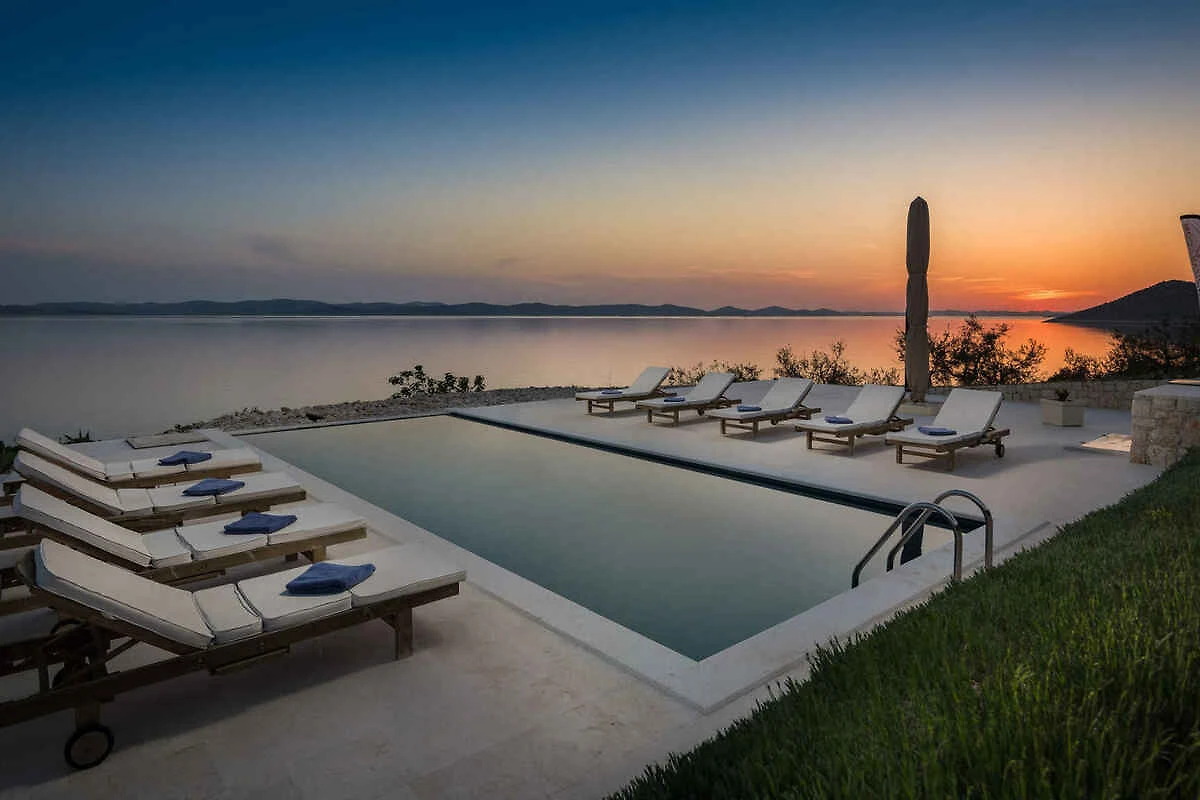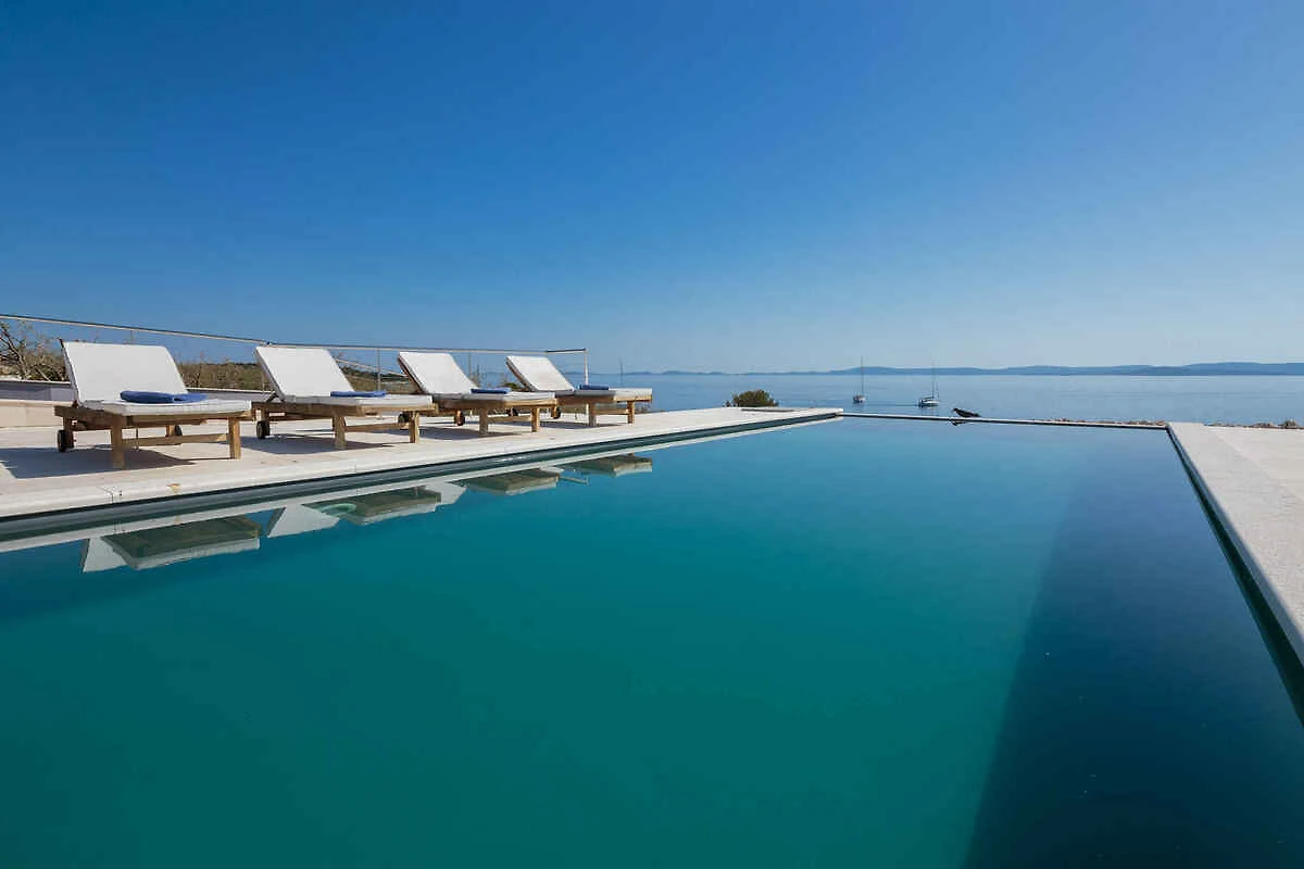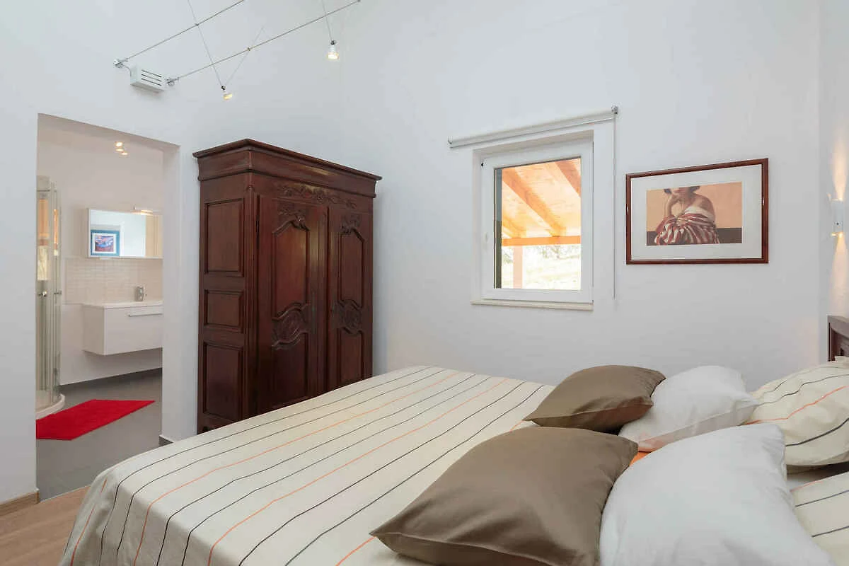 Zizanj - island Zizanj, 140 mNN. Die Villa befindet sich in einer Residenz, auf einem 47500 qm grossen, offenen Gartengrundstück mit Wiese und Bäumen. Die Villa befindet sich auf einem 47.500 m grossen privaten Olivenhain am äussersten Kap der Insel Žižanj. Einer Villa für bis zu 8 Personen auf der Insel Žižanj. Die Insel Žižanj hat keine Fährverbindung zum Festland. Die Zufahrt erfolgt über eine Nebenstrasse (asphaltiert). Parkplatz auf dem Grundstück.