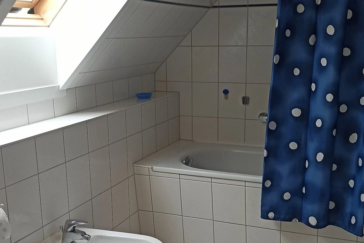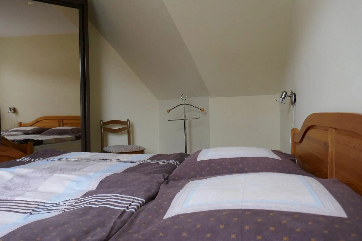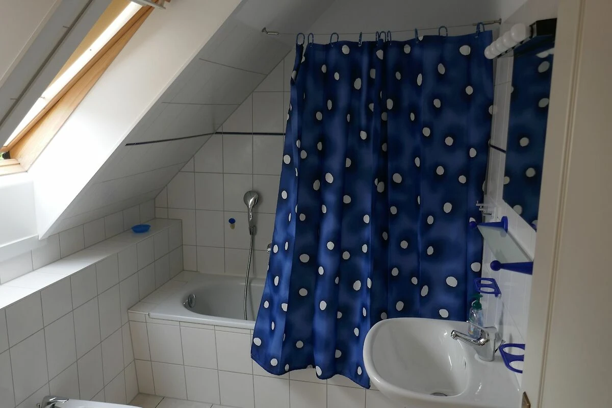 Im Obergeschoss des Hauses befinden sich die beiden Schlafzimmer. Diese verfügen einmal über ein Doppelbett (1,80 m x 2,00 m) und zum anderen über zwei Einzelbetten (je 0,90 m x 2,00 m) sowie je einen Kleiderschrank. Von hier haben Sie Zugang zum Balkon. Das vorhandene Kinderbett stellen Sie je nach Wunsch auf. Auf dieser Etage steht Ihnen darüber hinaus ein grosses Duschbad mit Badewanne, Waschbecken, Bidet und WC zur Verfügung. Wünschen Sie Handtücher und Bettwäsche für Ihren Aufenthalt, so können Sie diese zusätzlich buchen.