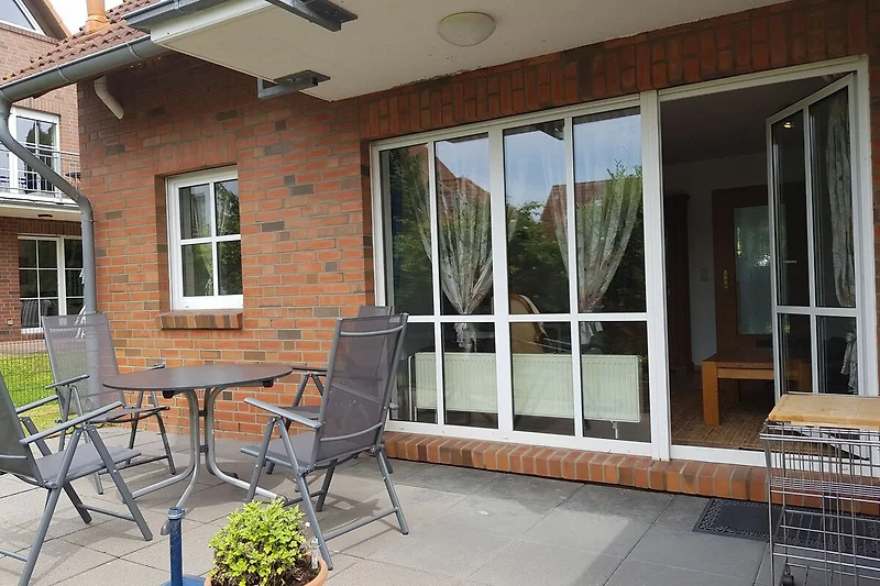 Komfortwohnung mit Terrasse, Rasenfläche, Gartenmöbel