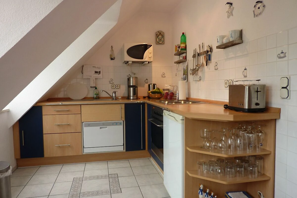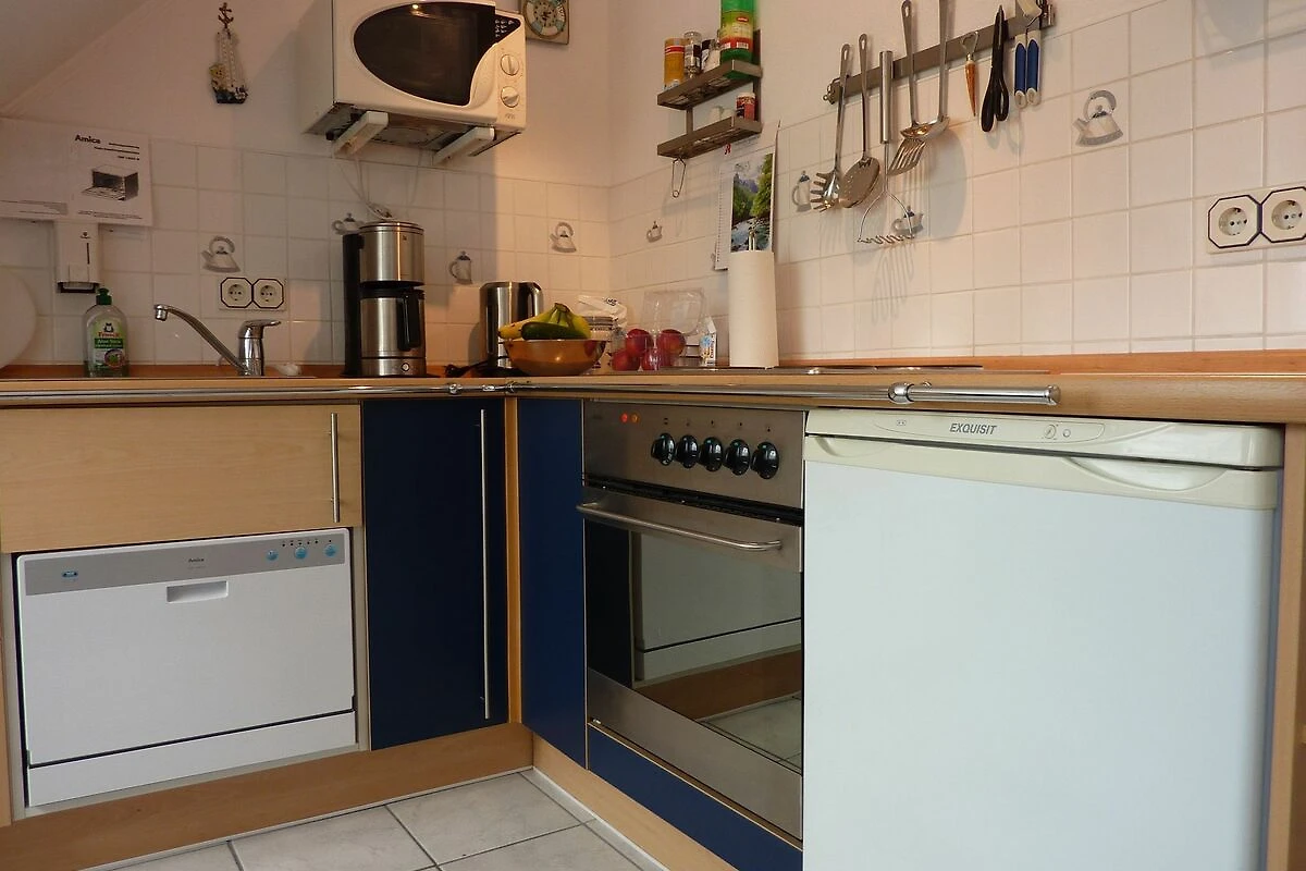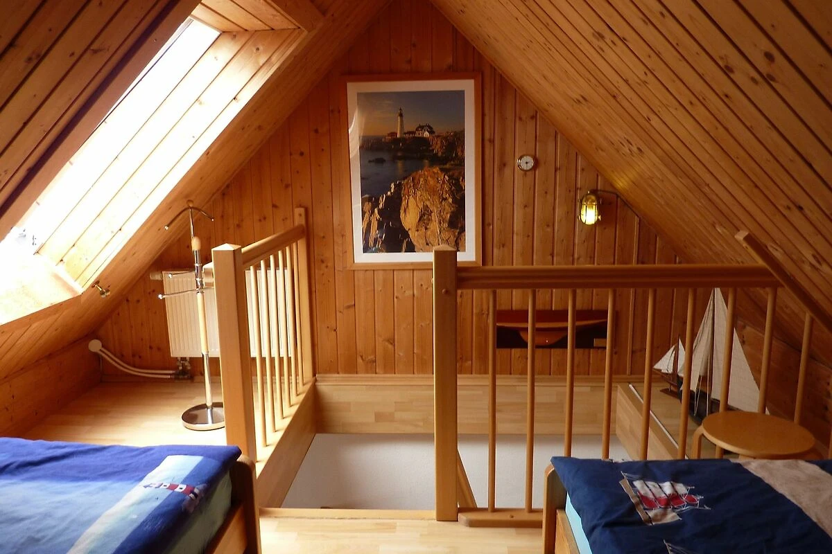 Die Ferienwohnung verfügt über eine Schlafgalerie mit 2 Betten im DG, offen zum Wohnraum, das Sofa im Wohnbereich ist als Schlafcouch jederzeit nutzbar. Des Weiteren finden Sie eine komplett ausgestattete Küchenzeile integriert im Wohnraum, einen Essplatz für 4 Personen und ein Kinderbett und einen Hochstuhl. Ihr Auto parken Sie bequem auf dem Stellplatz des Grundstückes.