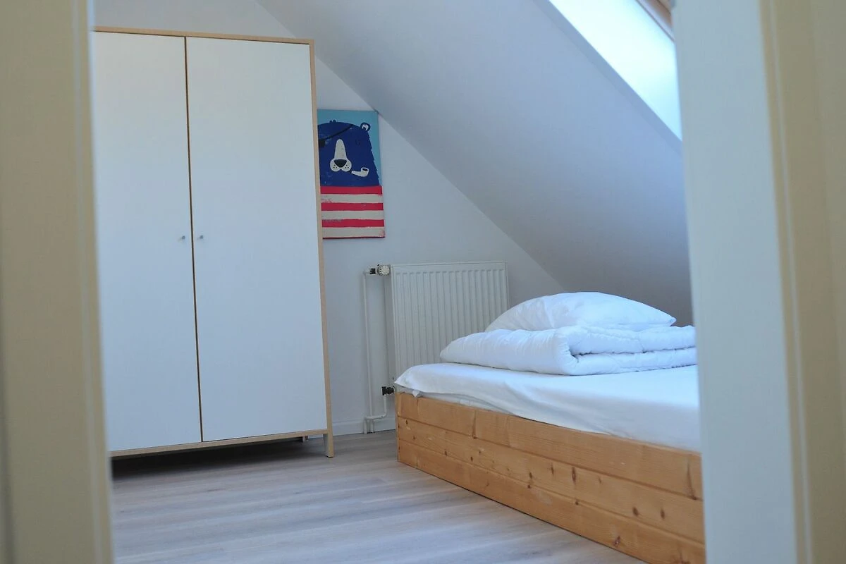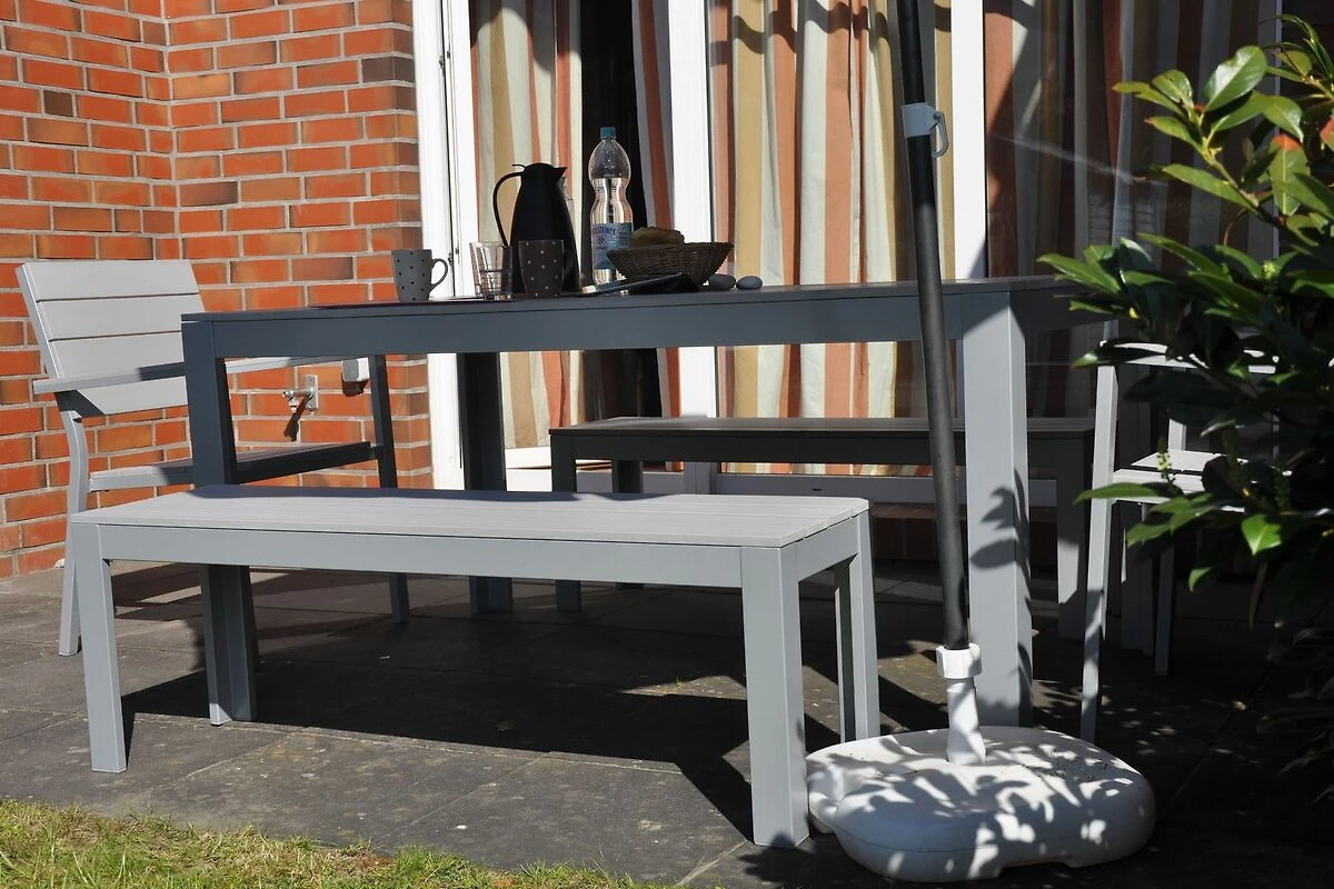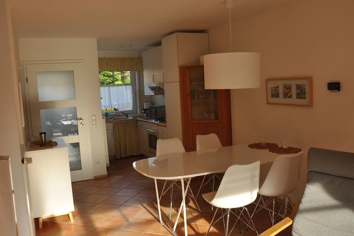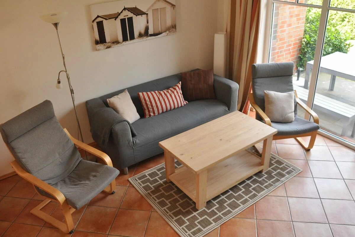 Unser hell und familienfreundlich eingerichtetes Mittelreihenhaus (Baujahr 1998) befindet sich im Sanddornweg und damit in unmittelbarer Strandnähe. Sie müssen auf die Annehmlichkeiten, die Sie von zu Hause gewohnt sind, nicht verzichten, da das Haus sehr gut ausgestattet ist (Waschmaschine, Spülmaschine, Herd/Backofen, Kühlschrank, Sat-TV, CD-,DVD-Player, Kinderbett). Im Erdgeschoss finden Sie neben Küche und Wohn-/Esszimmer ein Gäste-WC. Der Esstisch bietet Platz für 6 Personen; ein Kinderstuhl ist ebenfalls vorhanden. Im oberen Geschoss befinden sich zwei Schlafzimmer, beide jeweils mit einem Doppelbett (180 x 200 und 140 x 200) ausgestattet, sowie ein Badezimmer mit Dusche und WC. Ein Kinderbett steht ebenfalls zur Verfügung. Im Dachgeschoss ist ein drittes separates Schlafzimmer (2 Betten), das über ein Schlafzimmer im 1.OG zu erreichen ist.Wir bitten zu beachten, dass eine Belegung mit 6 Erwachsenen uns ungeeignet erscheint was die Schlafgelegenheiten angeht, so dass wir gern nur maximal 4 Erwachsene ansprechen möchten, unser Haus zu buchen. Fragen Sie gern nach. Vielen Dank. Die Terrasse bietet viel Platz zum Entspannen und das Gartenhäuschen können Sie z. B. als Unterstellmöglichkeit für Ihre mitgebrachten Fahrräder nutzen.