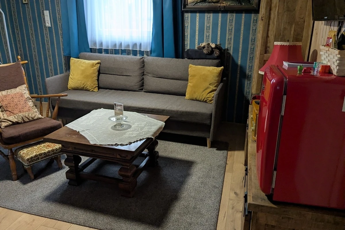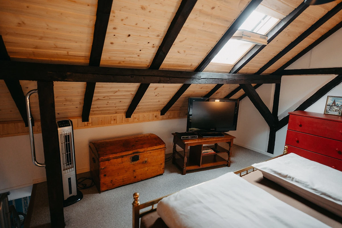 Schon beim Eintreten in die Wohnung-Weinstock spürt man Wärme und Gemütlichkeit. Der offene Wohnraum mit Küche bietet viel Platz zum kochen und Wohlfühlen. Der Wohnzimmerbereich mit gemütlicher Couch und Kamin für kalte Tage und Klimaanlage für die heisse Zeit lädt zum Verweilen ein. Über eine schmale Raumspartreppe gelangt man in den Schlafraum, welcher sich im rustikalen Dachgeschoss befindet.