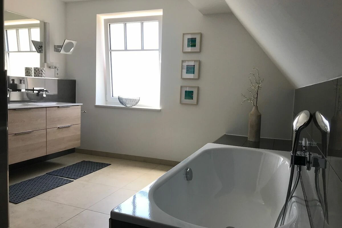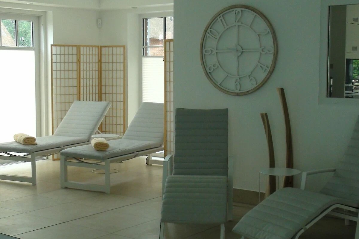 Die Villa liegt in Rerik im ruhigen Ostseeferienpark. Der eigene Wellnessbereich mit Sauna und Indoor-Pool (7,3 x 3,5m und 26°C Wassertemperatur) ermöglicht bei jedem Wetter rund um die Uhr Spass und Entspannung. Geniessen Sie an kühlen Tagen die wohlige Wärme des Gaskamins im grosszügigen 60 qm Wohn-Essbereich. Die grossen Schlafzimmer im Obergeschoss verfügen alle über Klimaanlagen, Smart-TVs und Bluetooth Soundbars. Die beiden grossen Badezimmer bieten einen aussergewöhnlichen Bad-Standard (Dusch-WC, grosse Badewanne, Handtuchwärmer etc.). Das fast 1000 qm grosse, mit einer Feldsteinmauer eingefriedete Grundstück lädt zum Spielen und Faulenzen ein. Durch das Glasdach können Sie die Terrasse auch bei schlechterem Wetter nutzen.