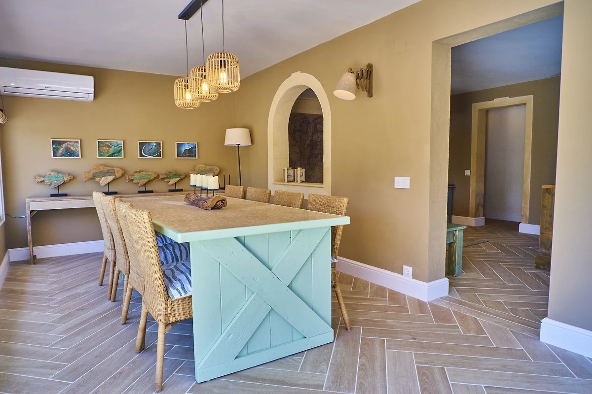 Alle drei Bereiche verfügen über eine eigene, gut ausgestattete Küche, eine Lounge mit Smart-TV, Essbereiche im Innen- und Aussenbereich und direkten Zugang zu den Aussenterrassen. Alle Schlafzimmer und Lounges verfügen über Klimaanlagen, die auf einem Pay-as-you-go-System basieren. Die Schlafzimmer können je nach Ihren Anforderungen in Kingsize-Schlafzimmer oder Zweibettzimmer konfiguriert werden.