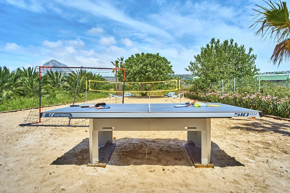 Draussen gibt es Aktivitäten für jeden Geschmack, darunter Volleyball, Fussball, Tischtennis, Tischfussball, Billardtisch, elektrische Dartscheibe und Boule-Platz. Hängematten hängen von den alten Olivenbäumen im Strandbereich und bequeme Sonnenliegen mit Badetüchern stehen rund um den grossen Salzpool zur Verfügung, der auch über eine Poolheizung für Wochen in der Zwischen- und Nebensaison verfügt.