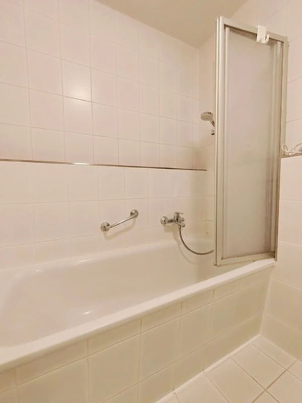 Das Badezimmer verfügt über eine Badewanne, WC sowie einem Waschtisch mit beleuchteten Spiegel.