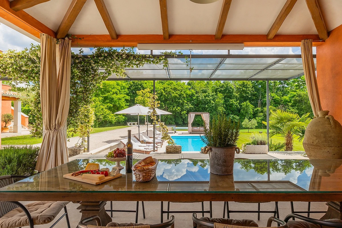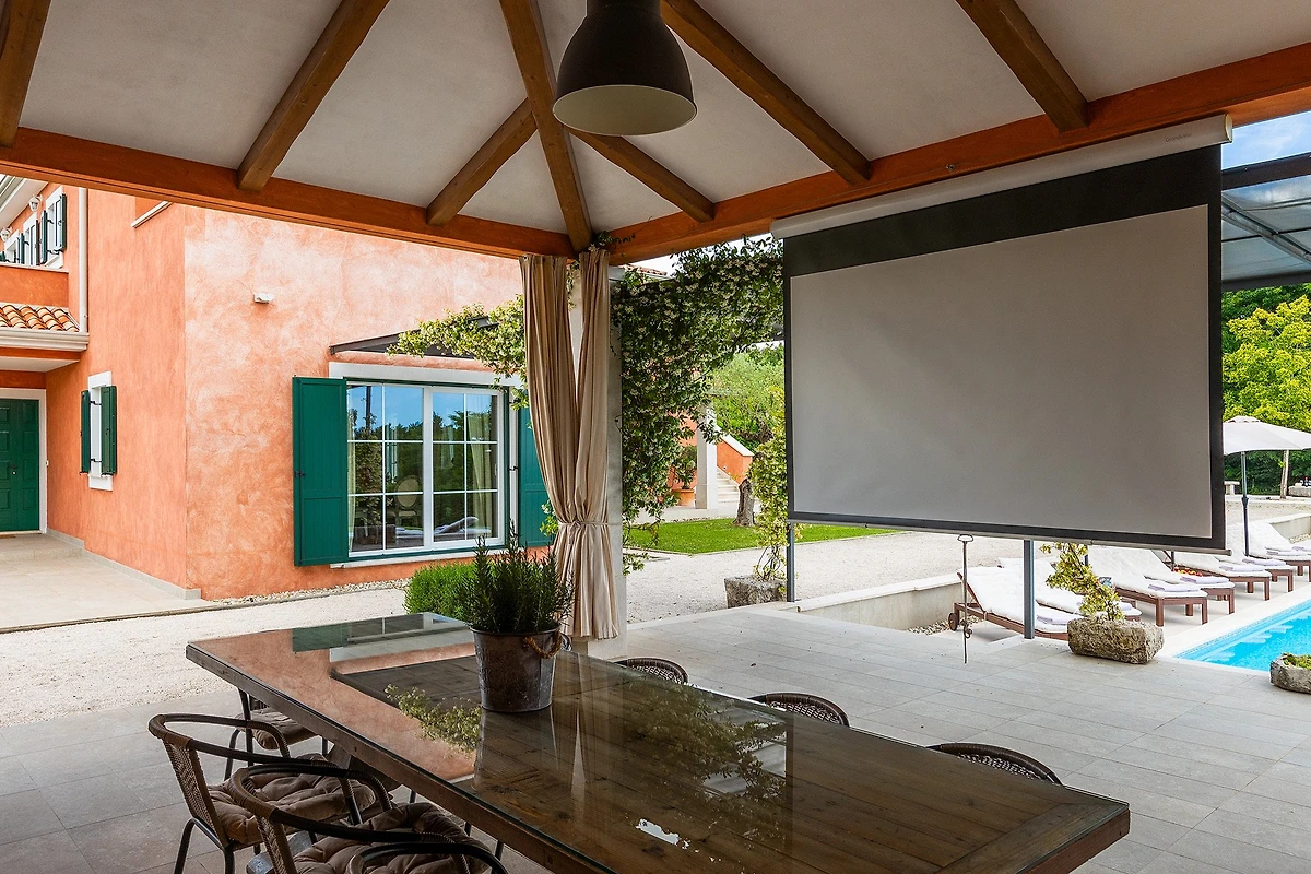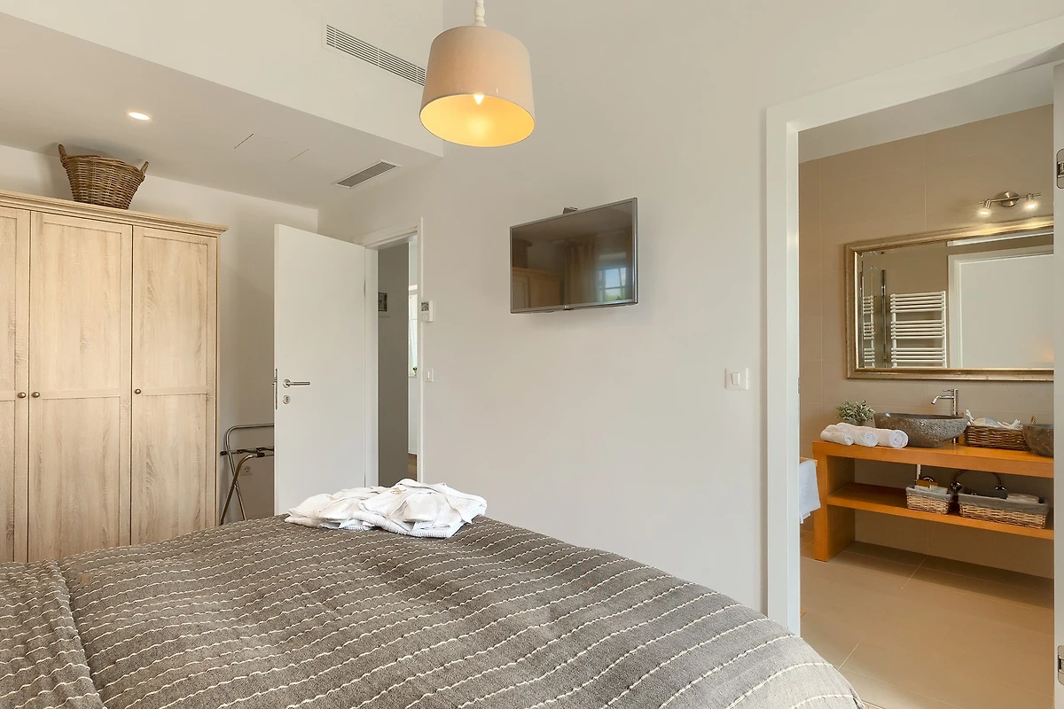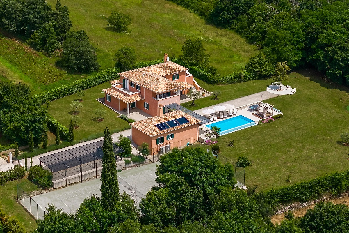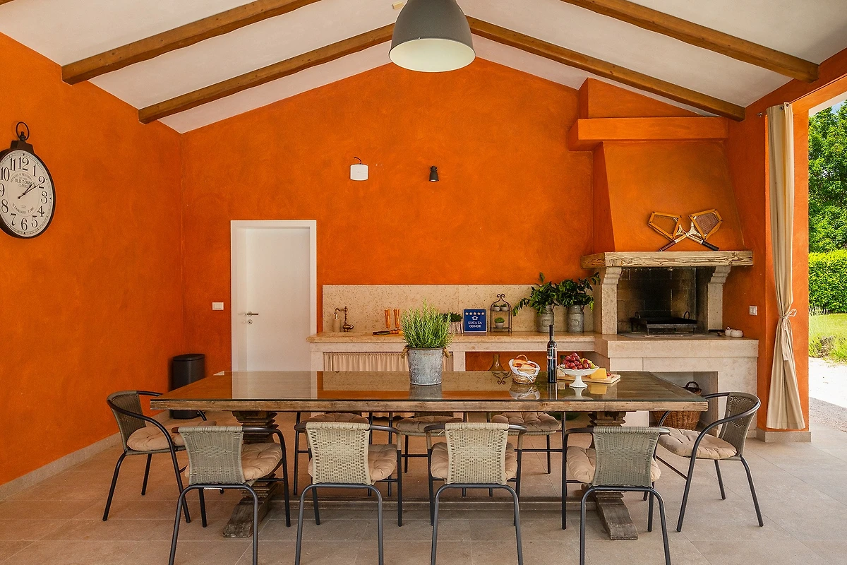Die Liegen (insgesamt 8 Stück) neben dem 45 m² grossen Aussenpool werden Ihnen alles für einen Traumurlaub bieten. Geräumige Terrasse, Aussenkamin und Pool sind die ideale Wahl für das Geniessen der langen Sommerabende. Vor Ort gibt es auch eine Grillzone für unvergessliche Sommerabende mit köstlichen und gesunden Speisen. Diese Villa ist für maximal 8 Personen geeignet und verfügt über 4 Schlafzimmer und 4 Badezimmer. Diese Villa ist eine echte Wellness-Oase - zur Verfügung stehen Ihnen Jacuzzi, Sauna.