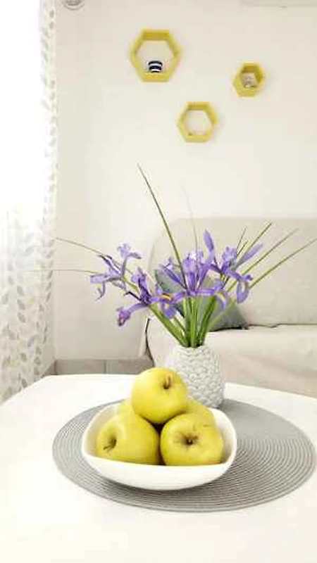 Die Ferienwohnung ist modern eingerichtet. Das Grundstück liegt in einer Ferienanlage, am Ortsrand. Auch wegen des Ausblicks vom Grundstück auf das Meer und der ruhigen und sonnigen Lage ist das Domizil beliebt. Zur Nutzung stehen zur Verfügung: Sonnenschirm, Sonnenliege, Gartendusche, Grillmöglichkeit, Terrasse und Gartenmöbel.