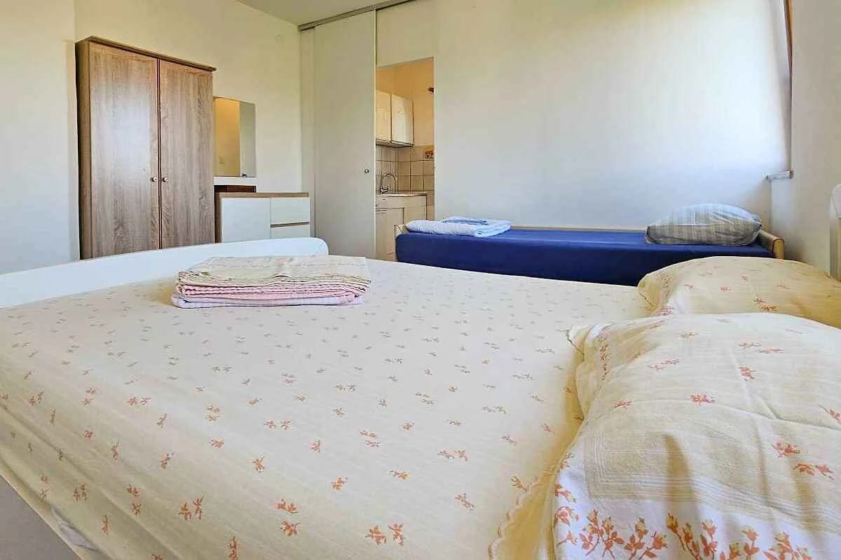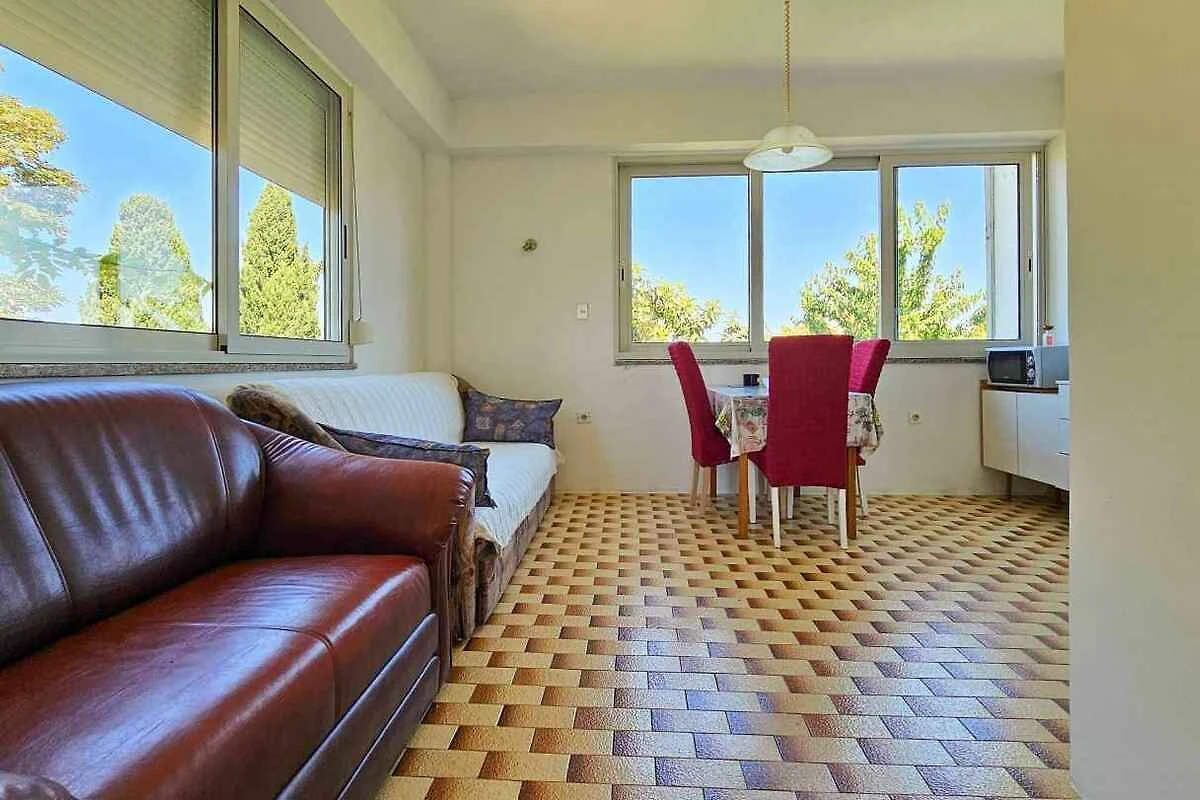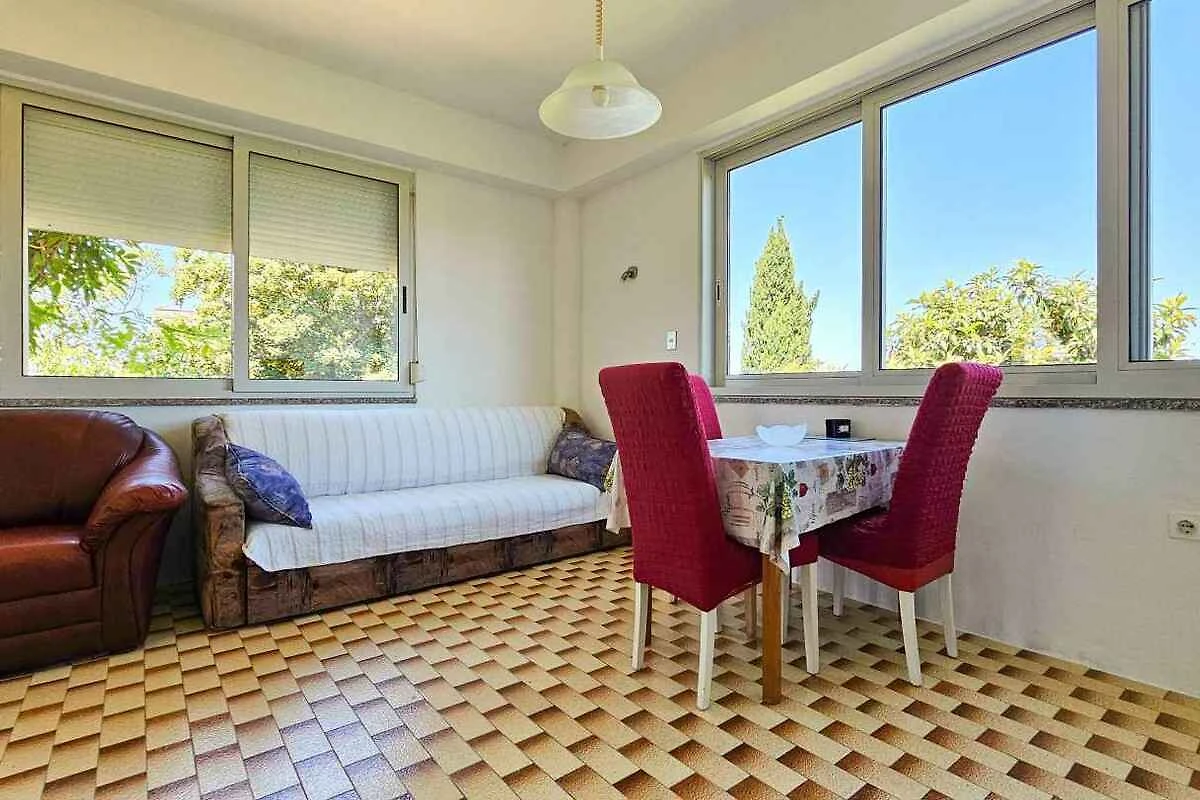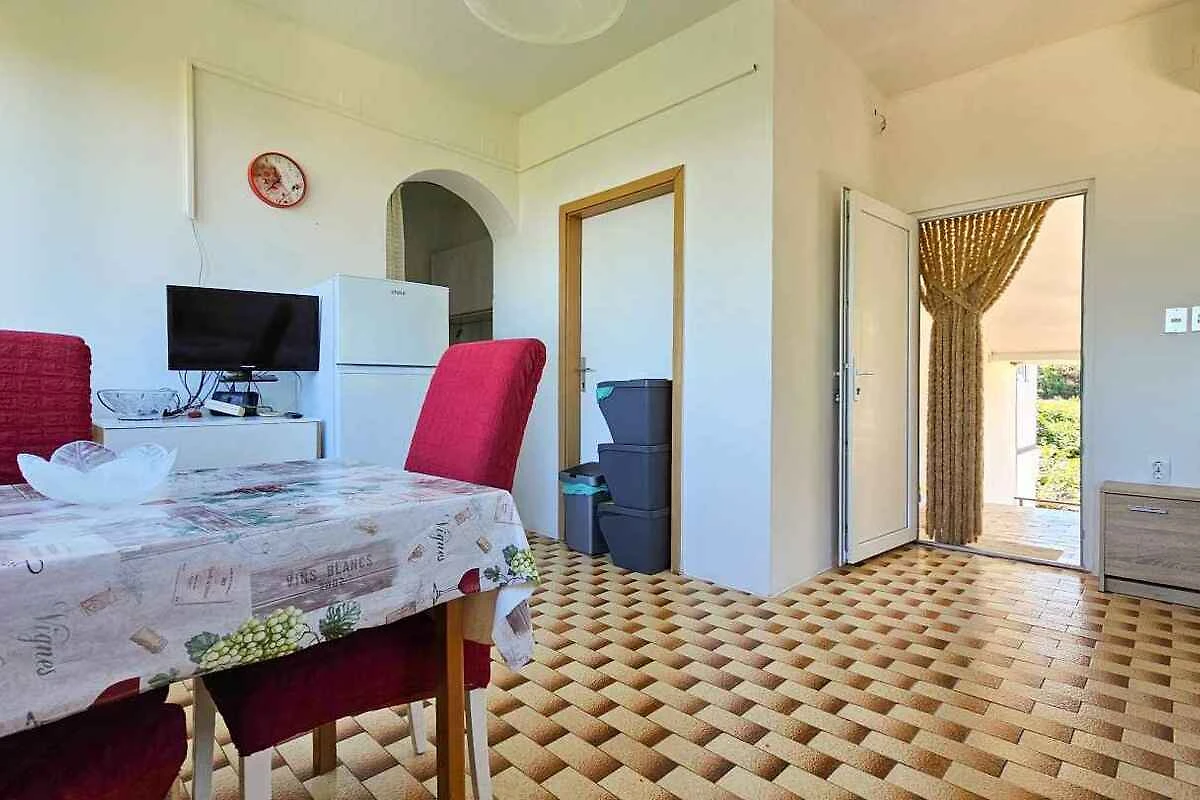 Dajla, Ortsteil Dajla. Die Ferienwohnung befindet sich auf einem Gartengrundstück mit Wiese und Bäumen. Der Vermieter wohnt ständig im Haus, nutzt jedoch einen separaten Eingang. Die Zufahrt erfolgt über eine Nebenstrasse (asphaltiert). Parkplatz (für 1 Pkw) auf dem Grundstück.
