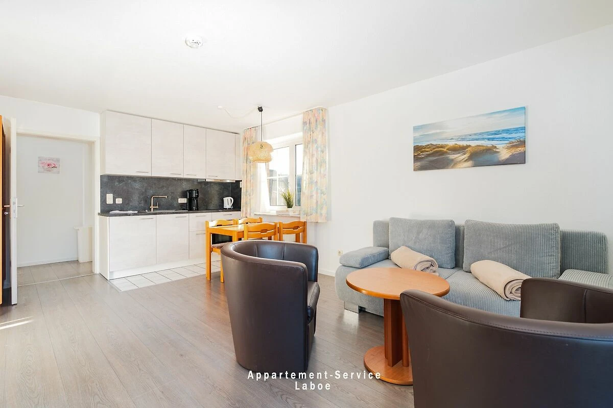 Die Ferienwohnung liegt ca 30m vom Strand entfernt, man hat eine sehr gute aussicht auf die Kieler Förde. Die Geschäfte und Bäckerei sind fußläufig innerhalb weniger Minuten zu erreichen. Das Personal ist freundlich und der Service ist sehr gut, wir sind Wiederholungstäter, diese Ferienwohnung hatten wir schon einige male und sind auch über Weihnachten/Silvester auch wieder dort. Wir haben uns immer gut aufgehoben gefühlt und werden Appartement Service Laboe auch weiterhin oft nutzen.