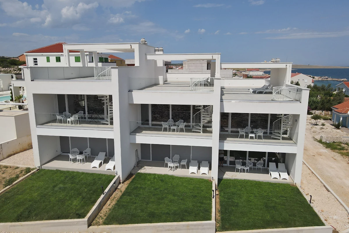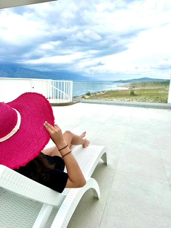 gelangt man auf die 90m² grosse Dachterrasse. Der unverbaute Rundumblick über die Adria und das Velebitgebirge