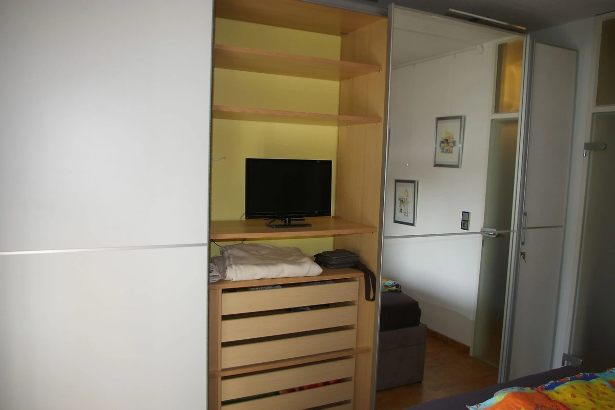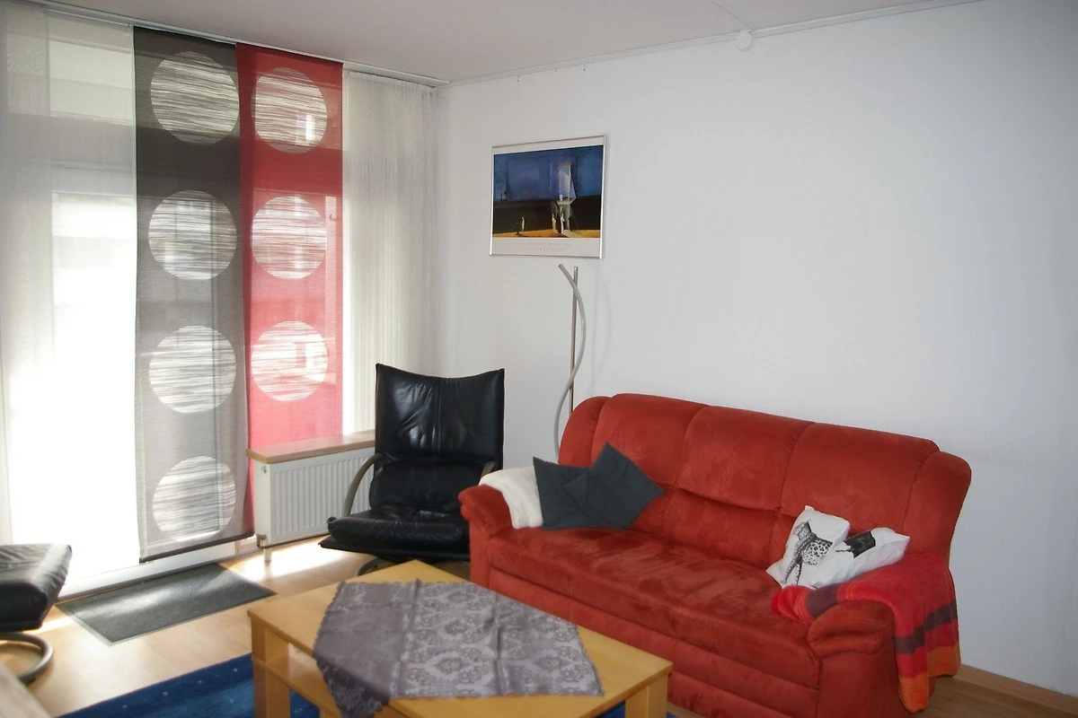 Unsere moderne Ferienwohnung mit kompletter Küche, einem bequemen Doppelbett (2m*2m) und einer Schlafcouch(1,4m*2m) im Wohnzimmer, zusätzlichen TV im Schlafzimmer und kostenfreien W-LAN, ist hell und freundlich eingerichtet.