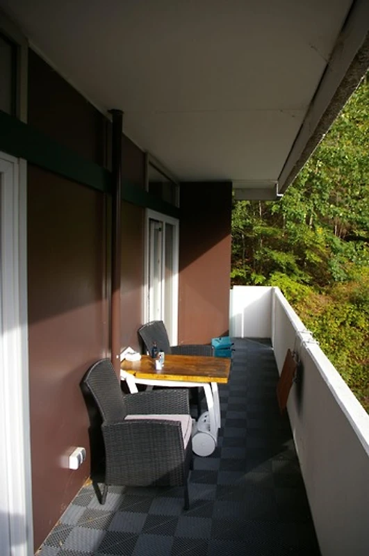 Die Ferienwohnung befindet sich in einem ehemaligen Hotel direkt am Waldrand.
